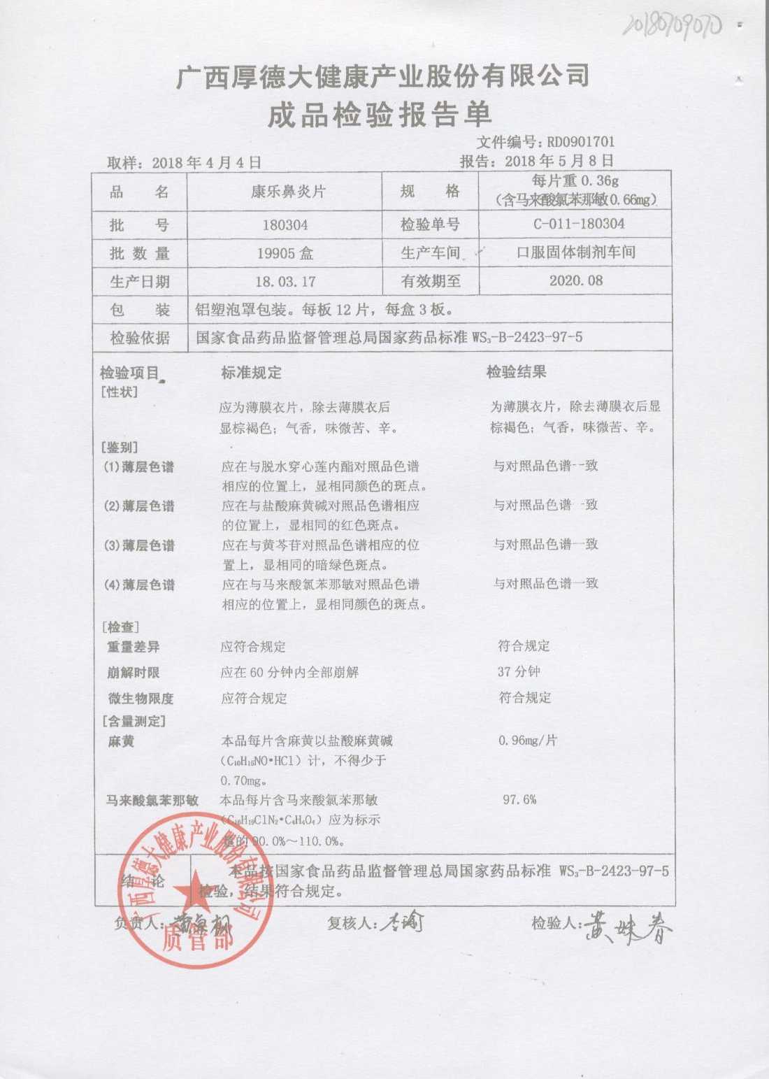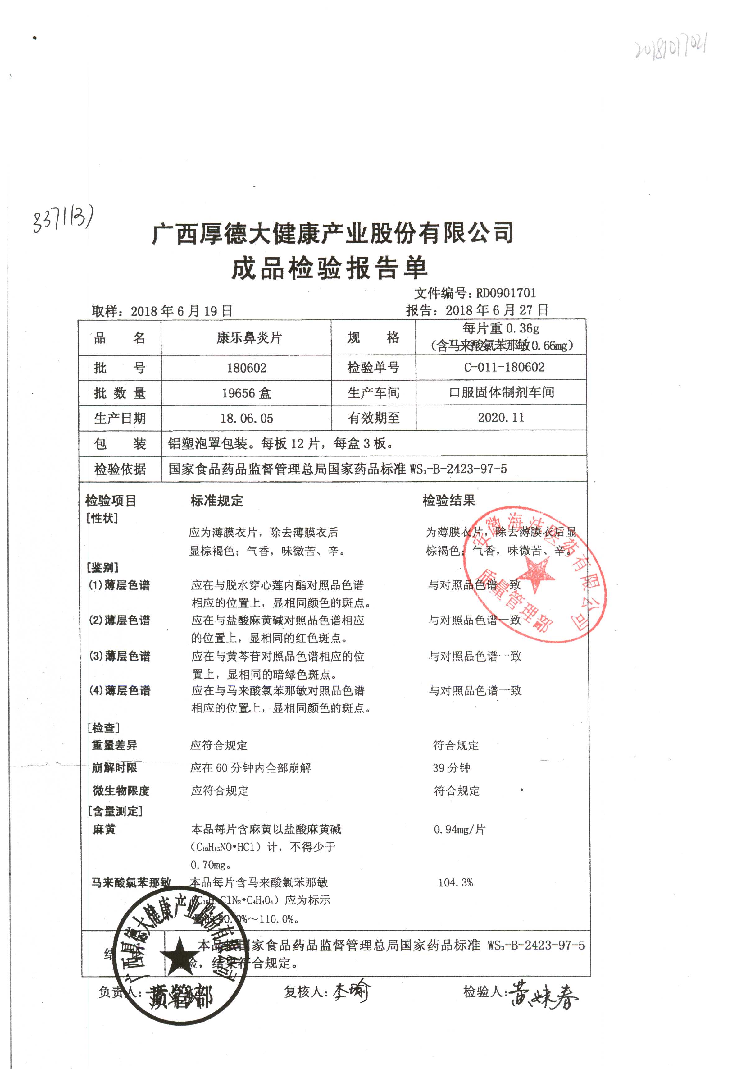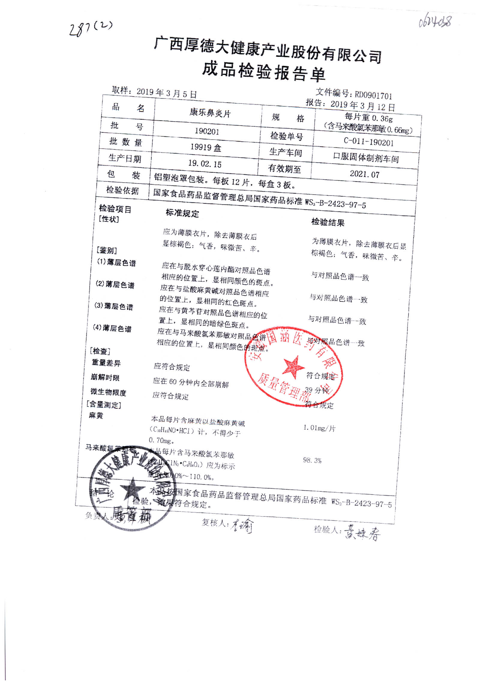 康樂(lè)鼻炎片 | 0.36g*36粒 | 190802 | 查看詳情 |