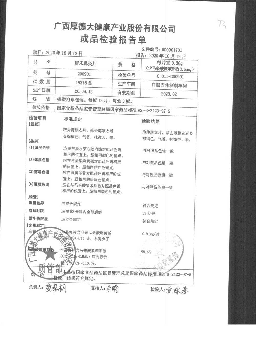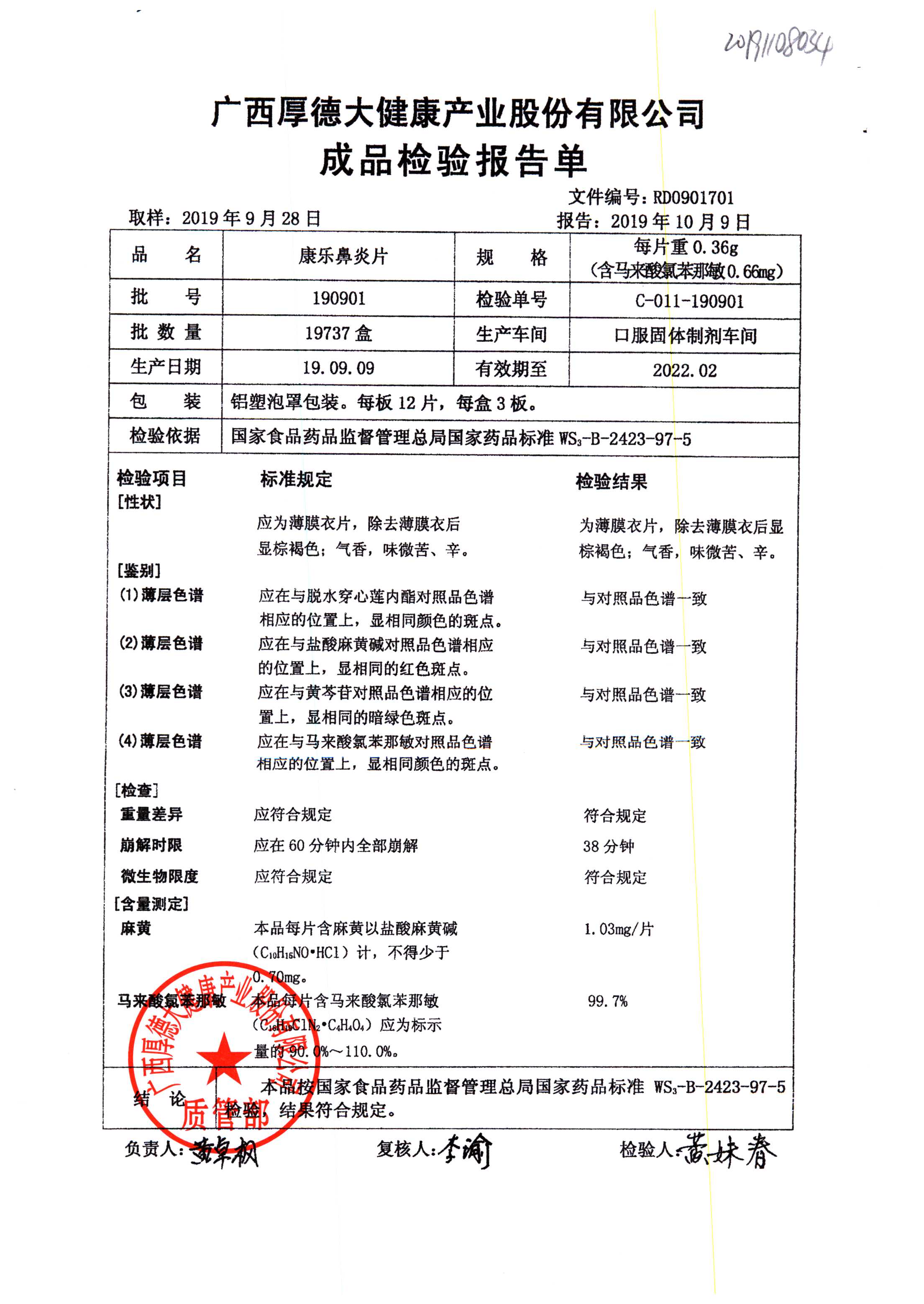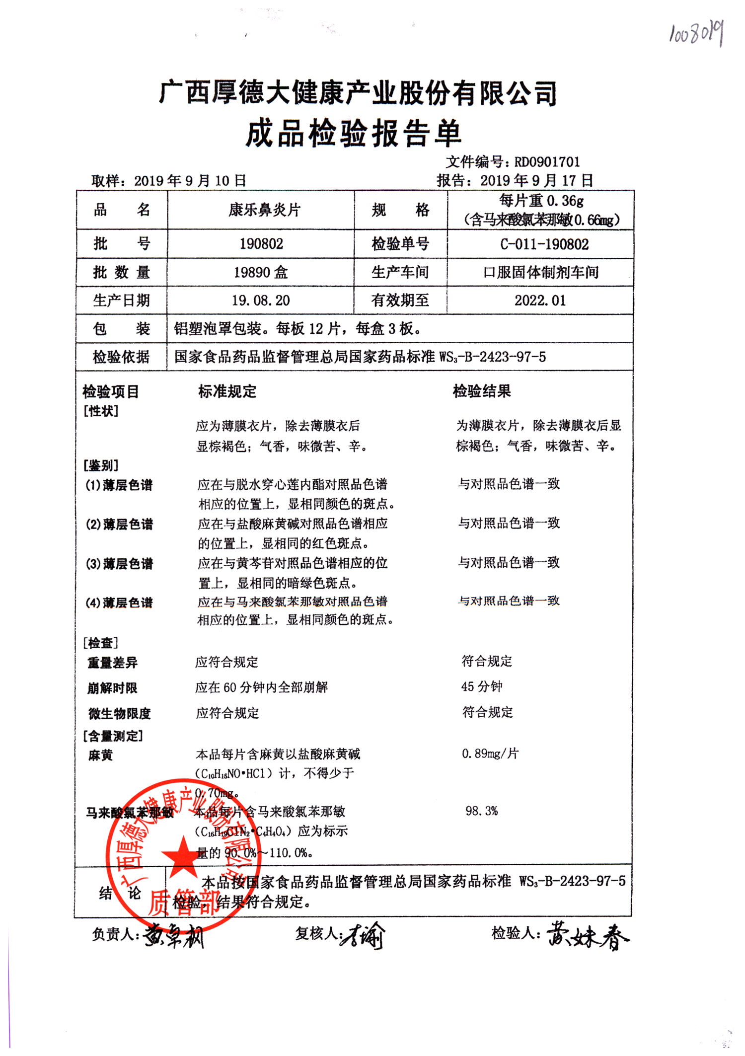 康樂(lè)鼻炎片 | 0.36g*36粒 | 190802 | 查看詳情 |