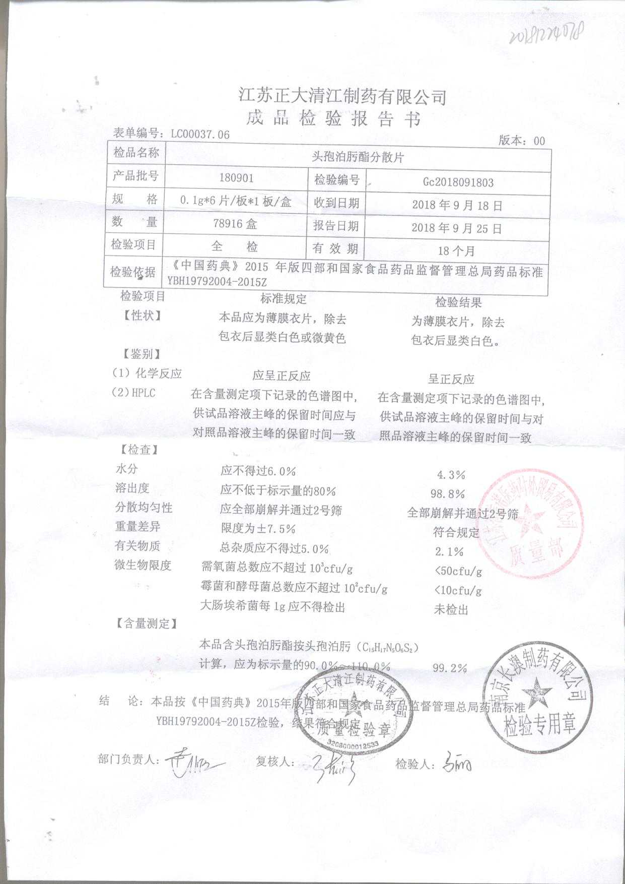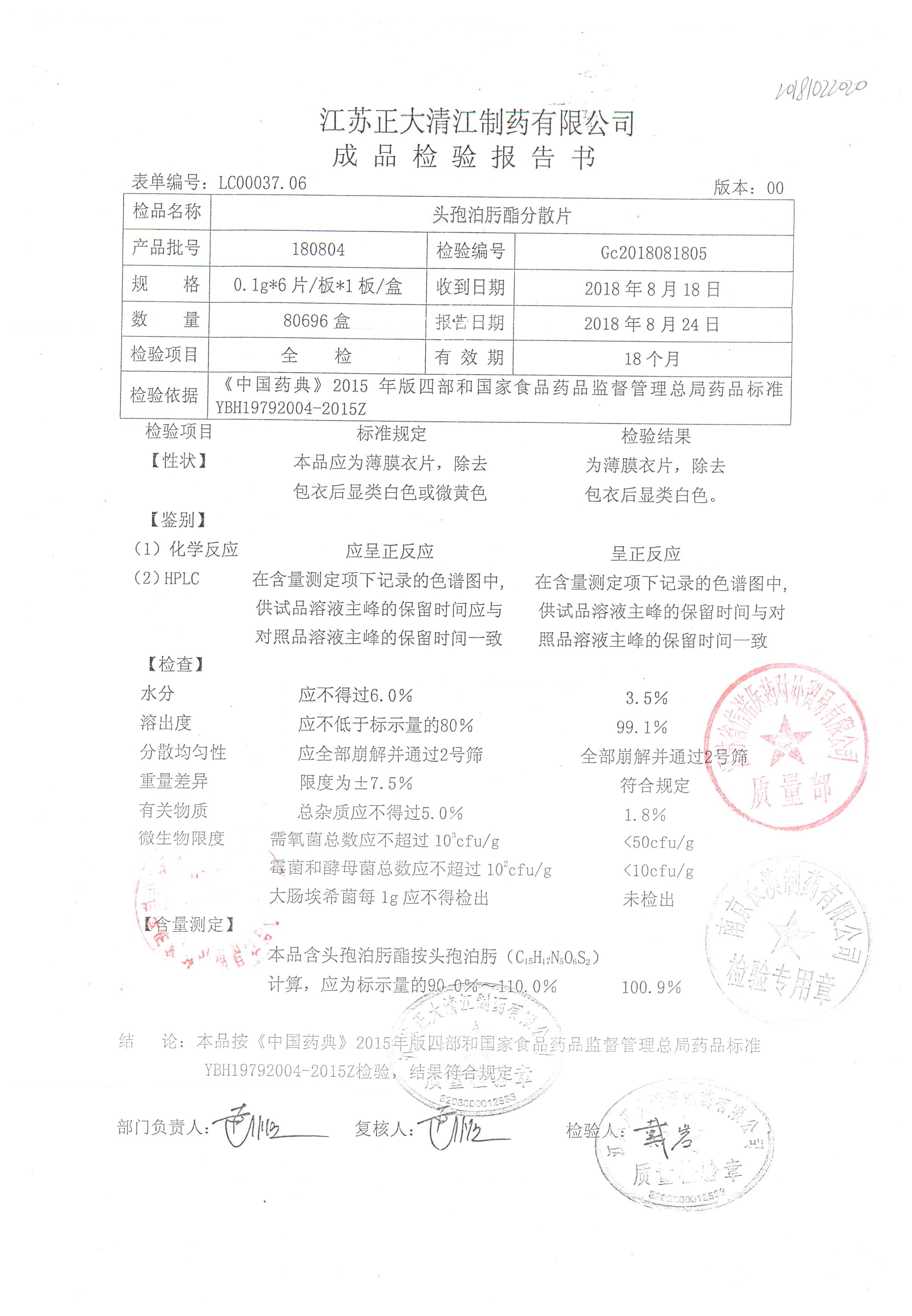 頭孢泊肟酯分散片 | 0.1g*6s | 190804 | 查看詳情 |