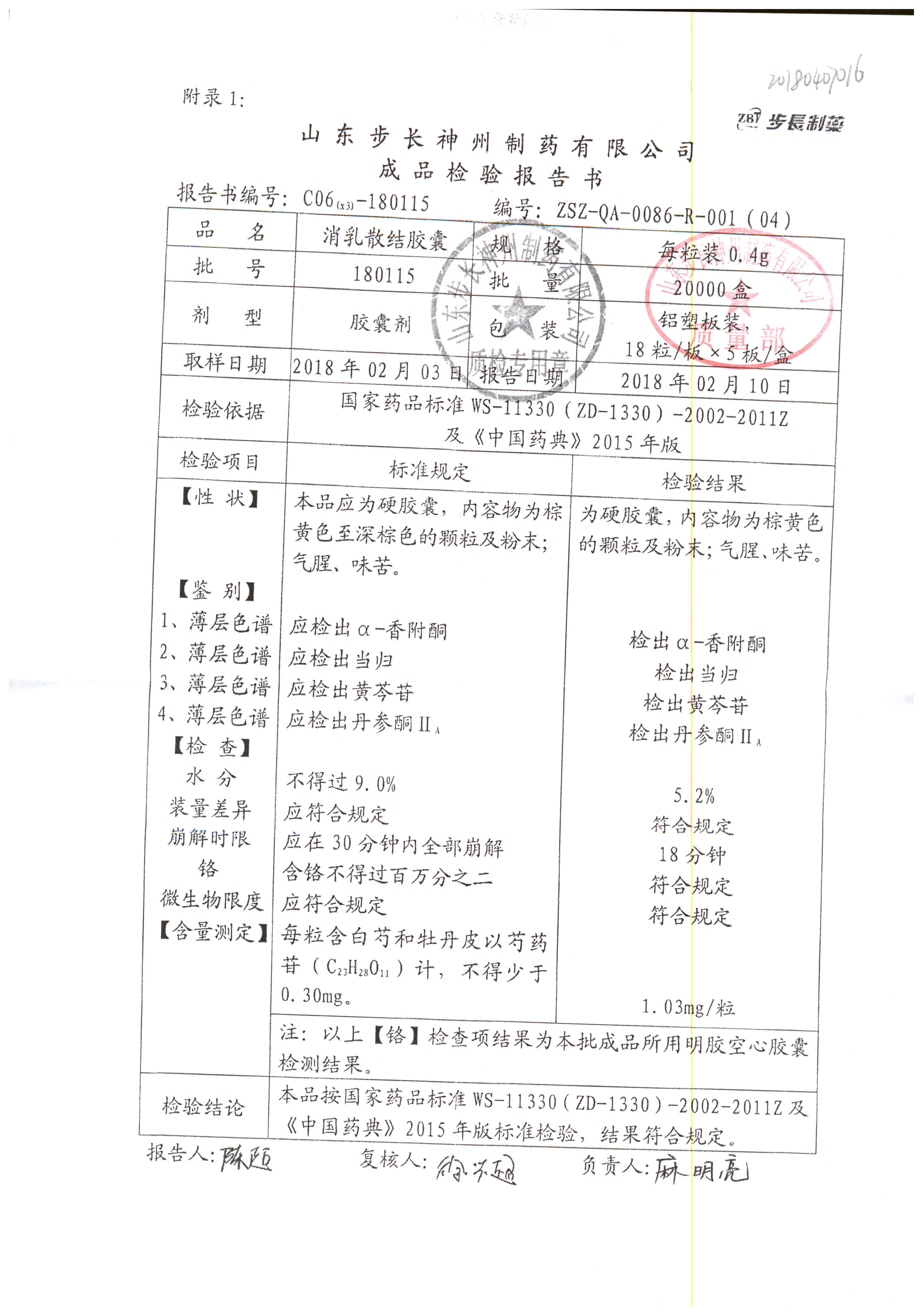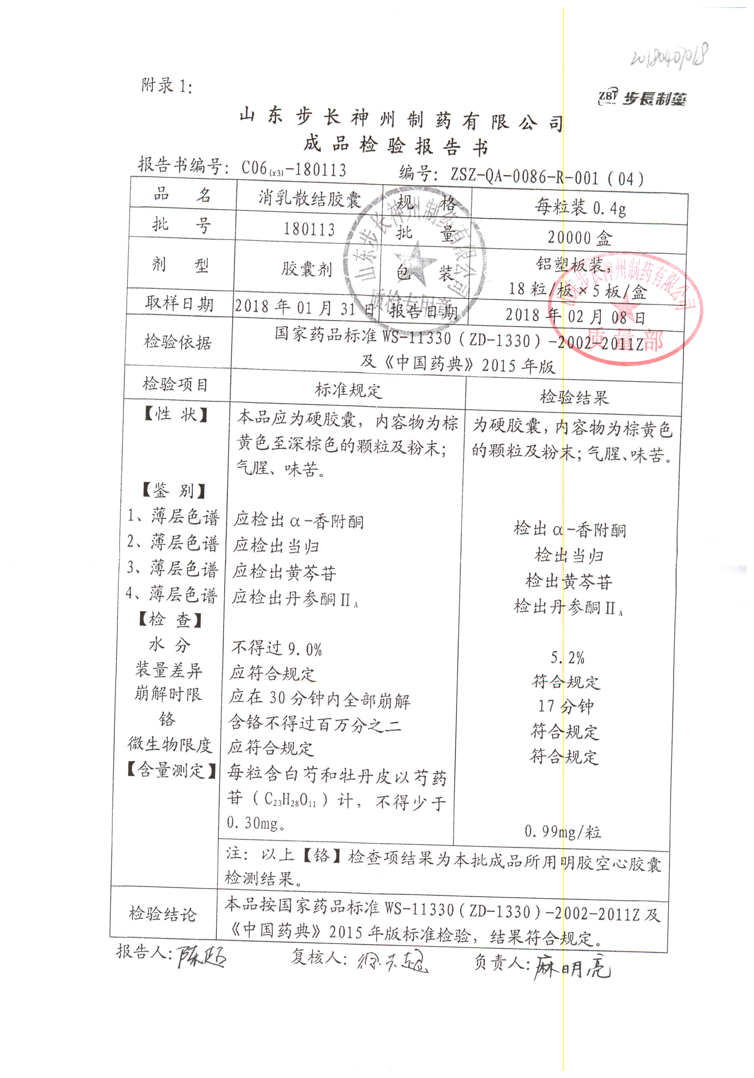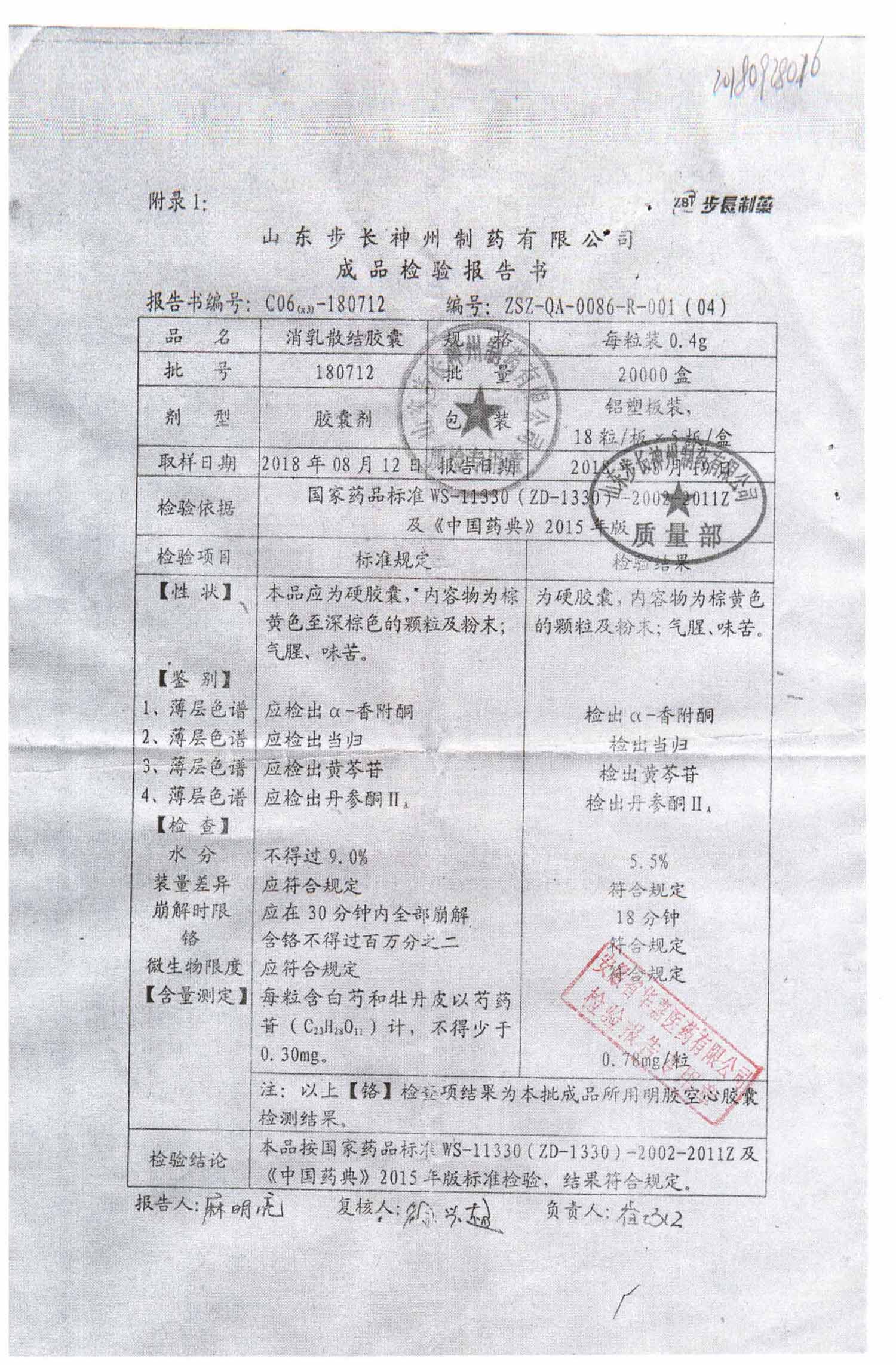 名稱 | 規(guī)格 | 批號(hào) | 藥檢報(bào)告 |