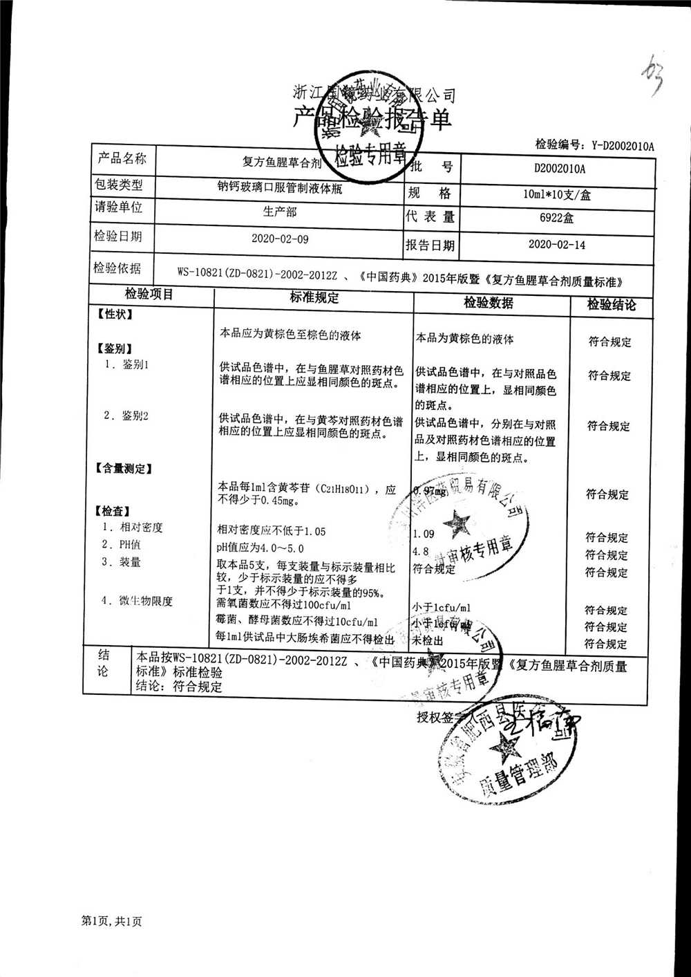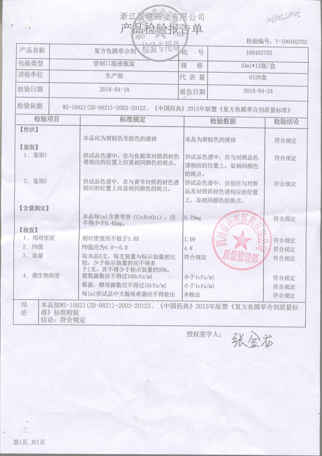 復(fù)方魚(yú)腥草合劑 | 10ml | 190200302 | 查看詳情 |
