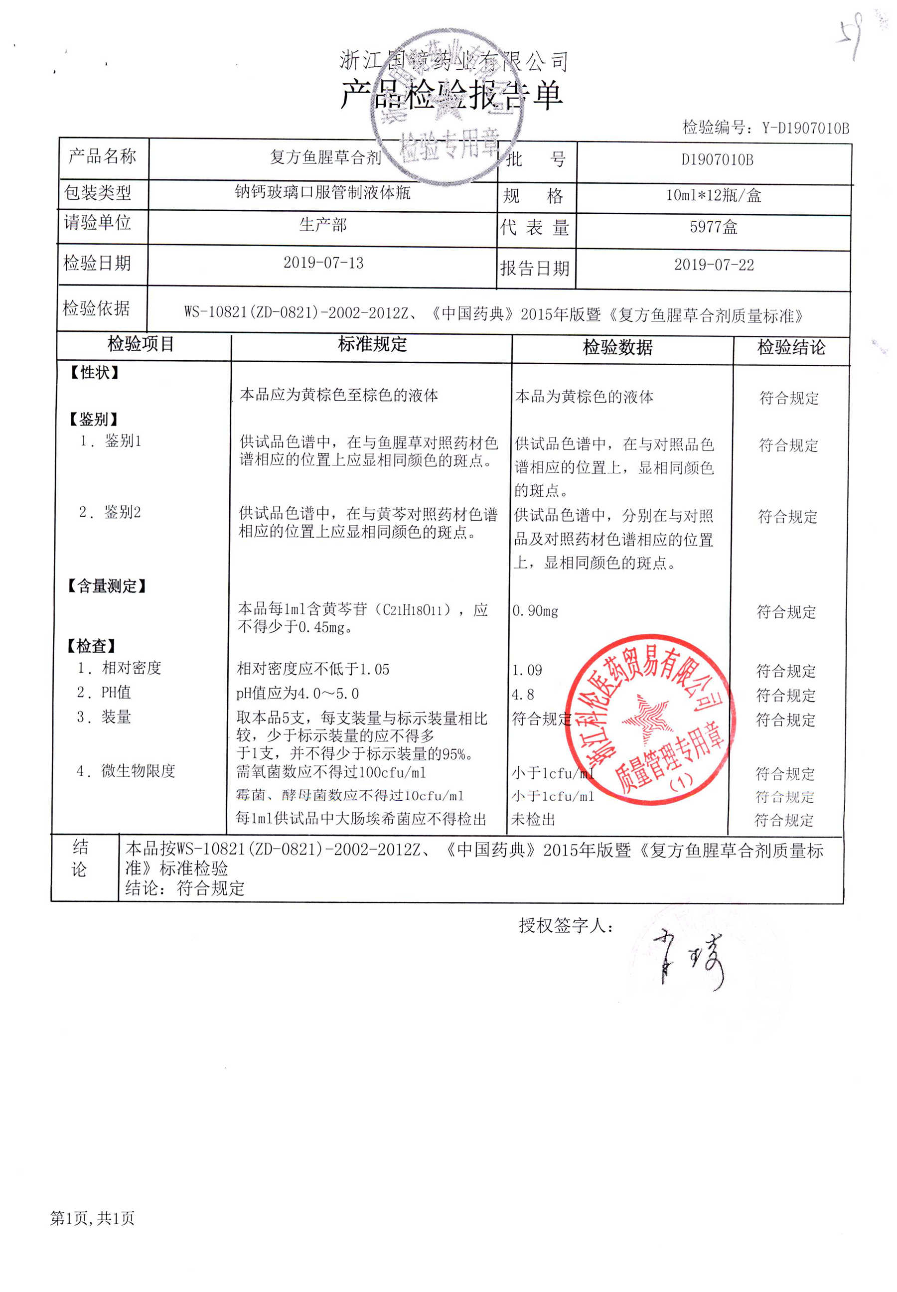 復(fù)方魚(yú)腥草合劑 | 10ml | D1907010B | 查看詳情 |