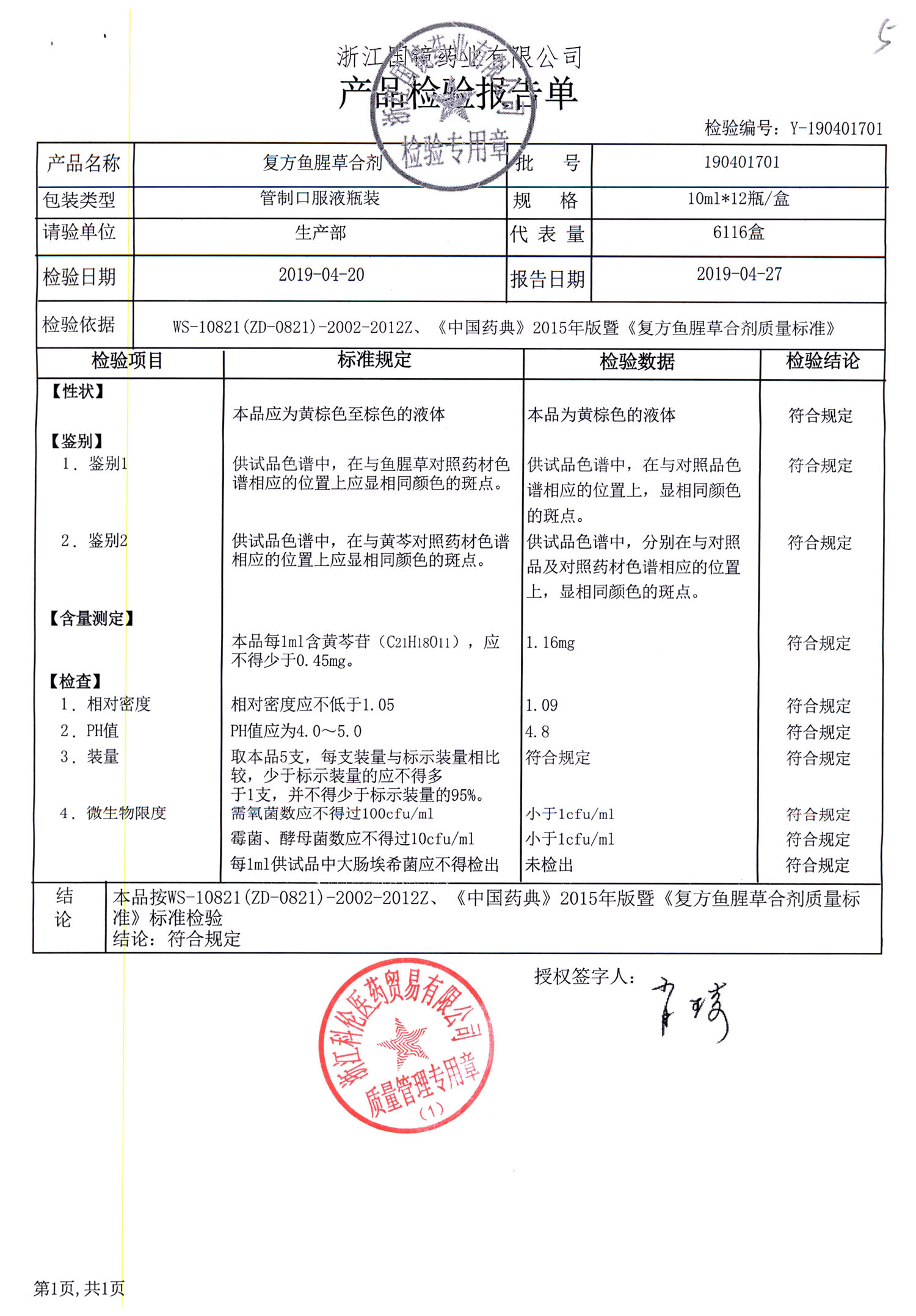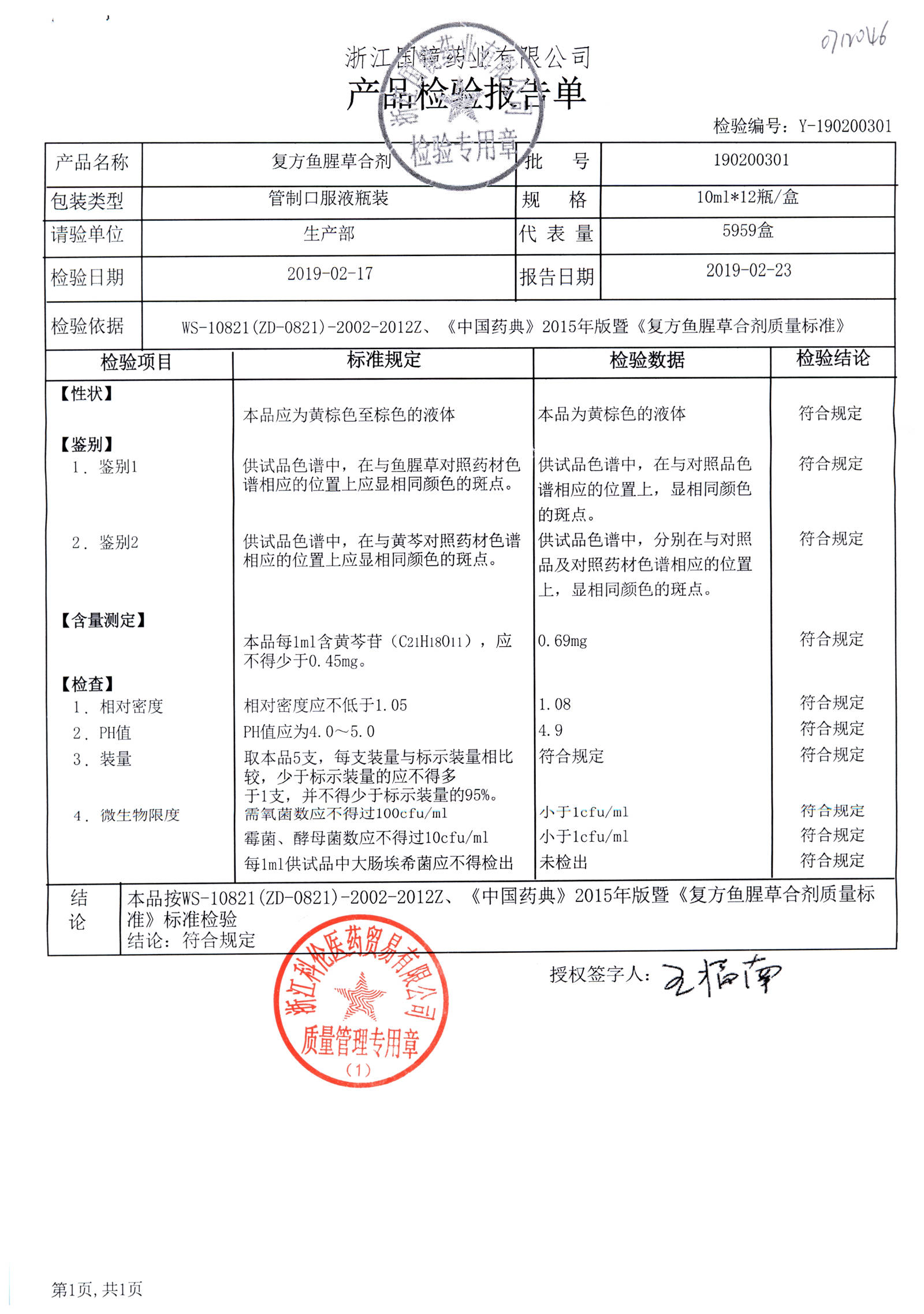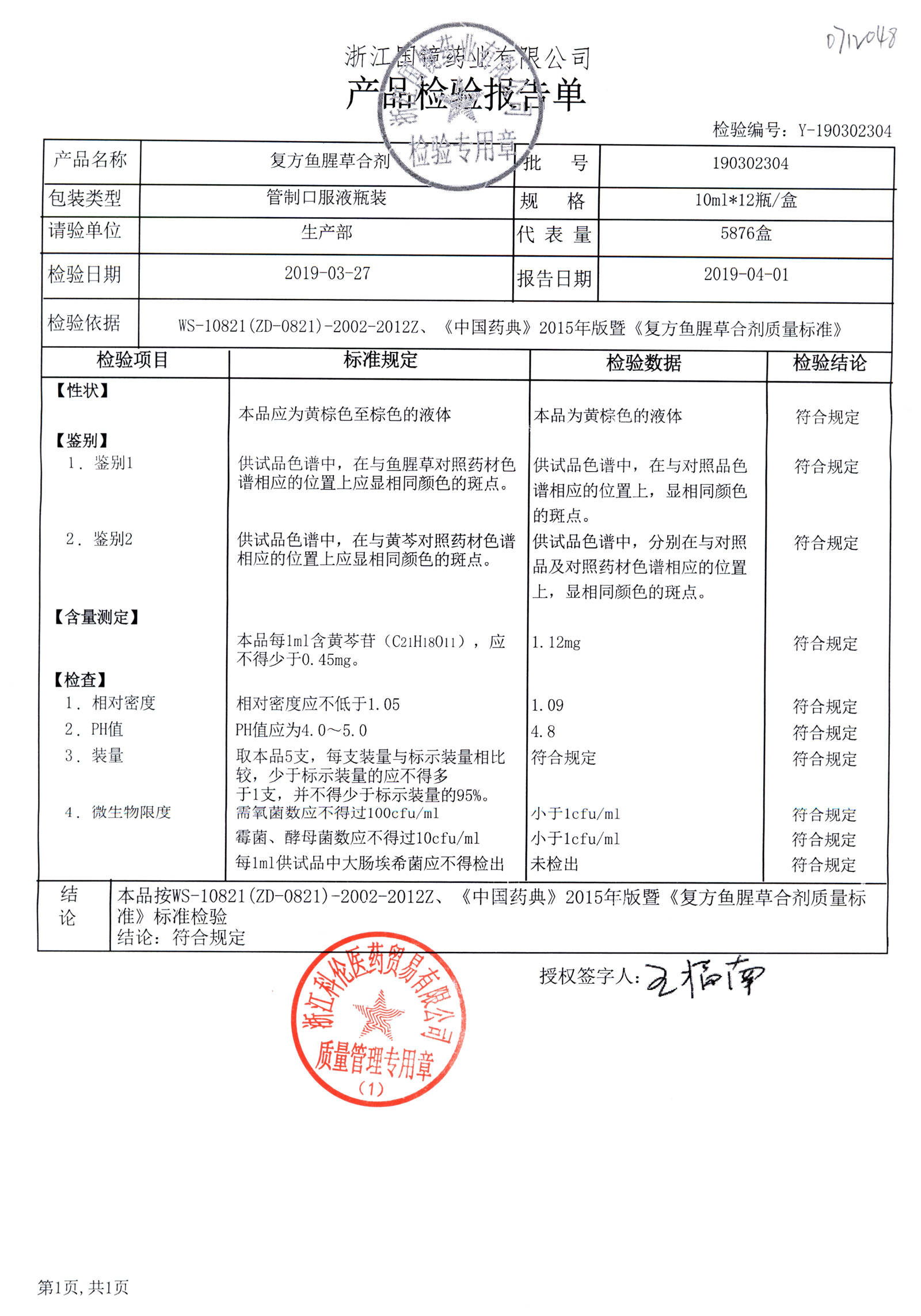 復(fù)方魚(yú)腥草合劑 | 10ml | 190200301 | 查看詳情 |