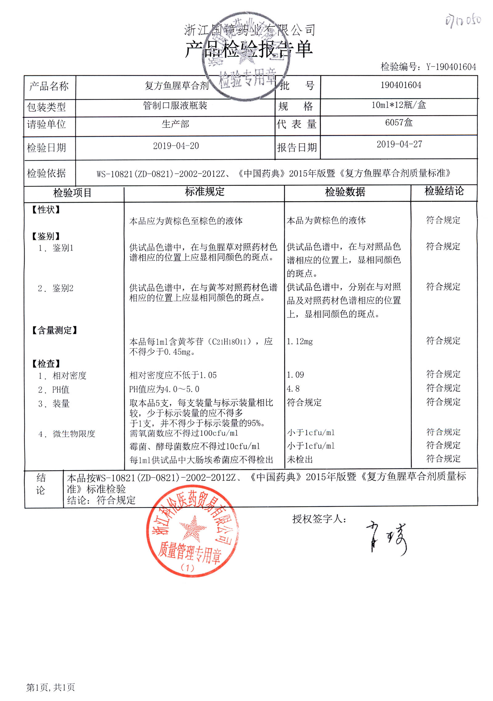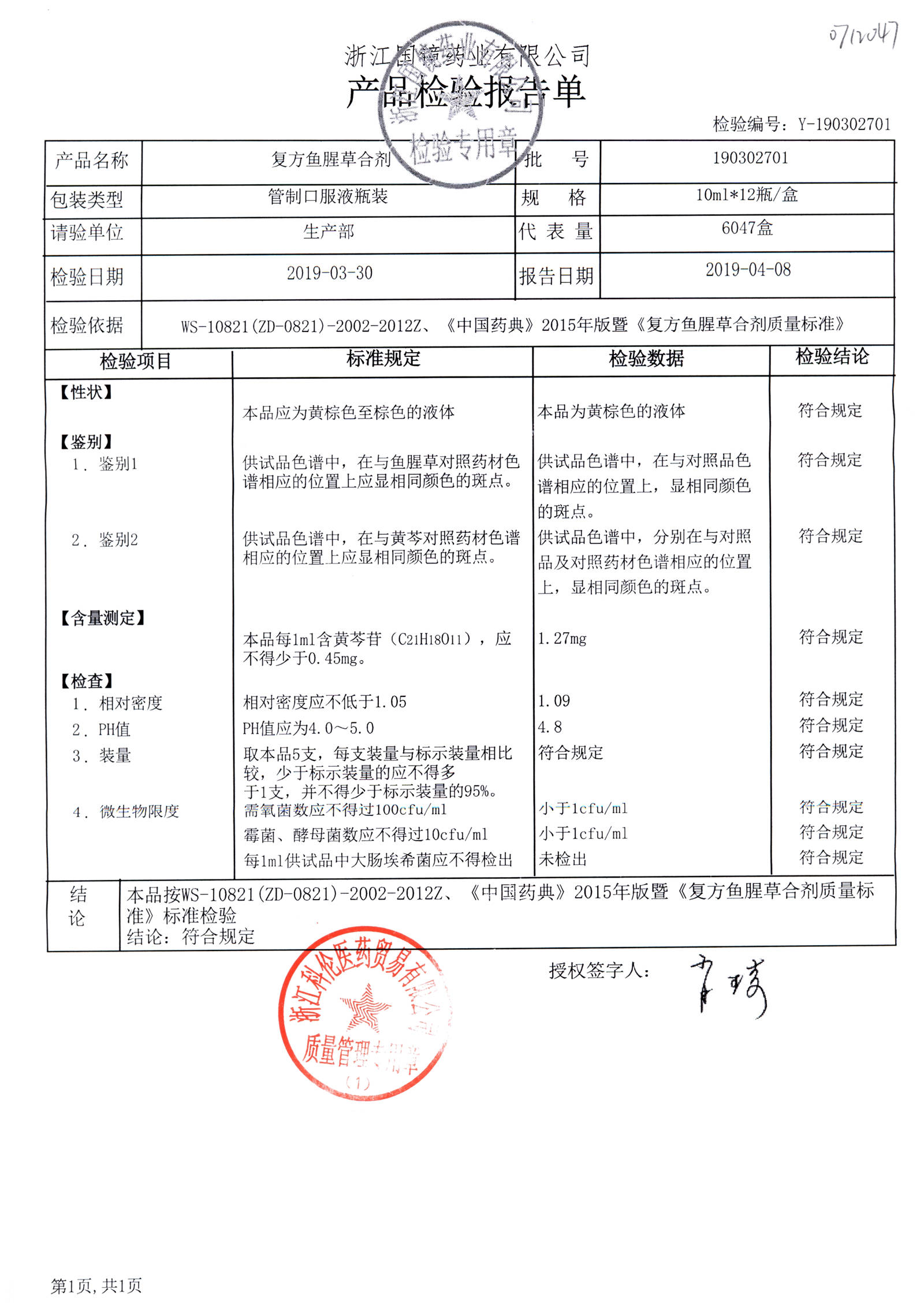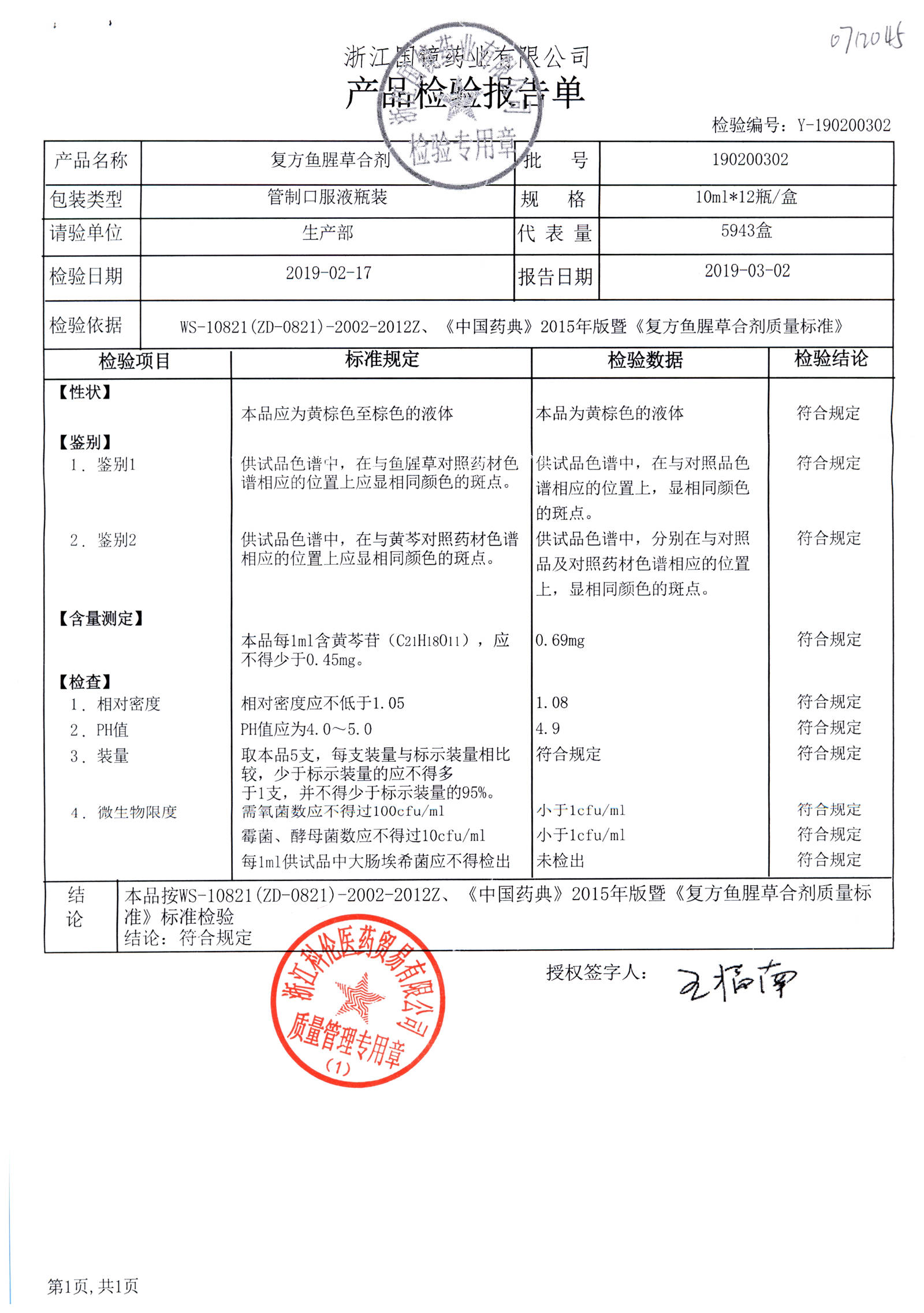 復(fù)方魚(yú)腥草合劑 | 10ml | 190200301 | 查看詳情 |