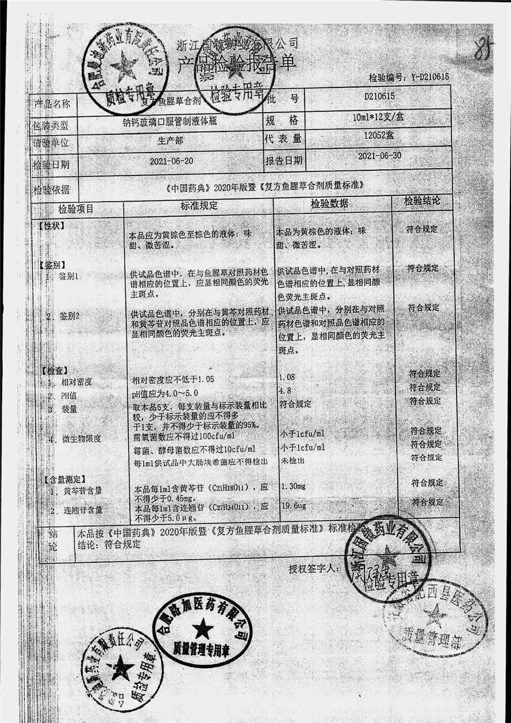 復(fù)方魚(yú)腥草合劑 | 10ml | D210615 | 查看詳情 |