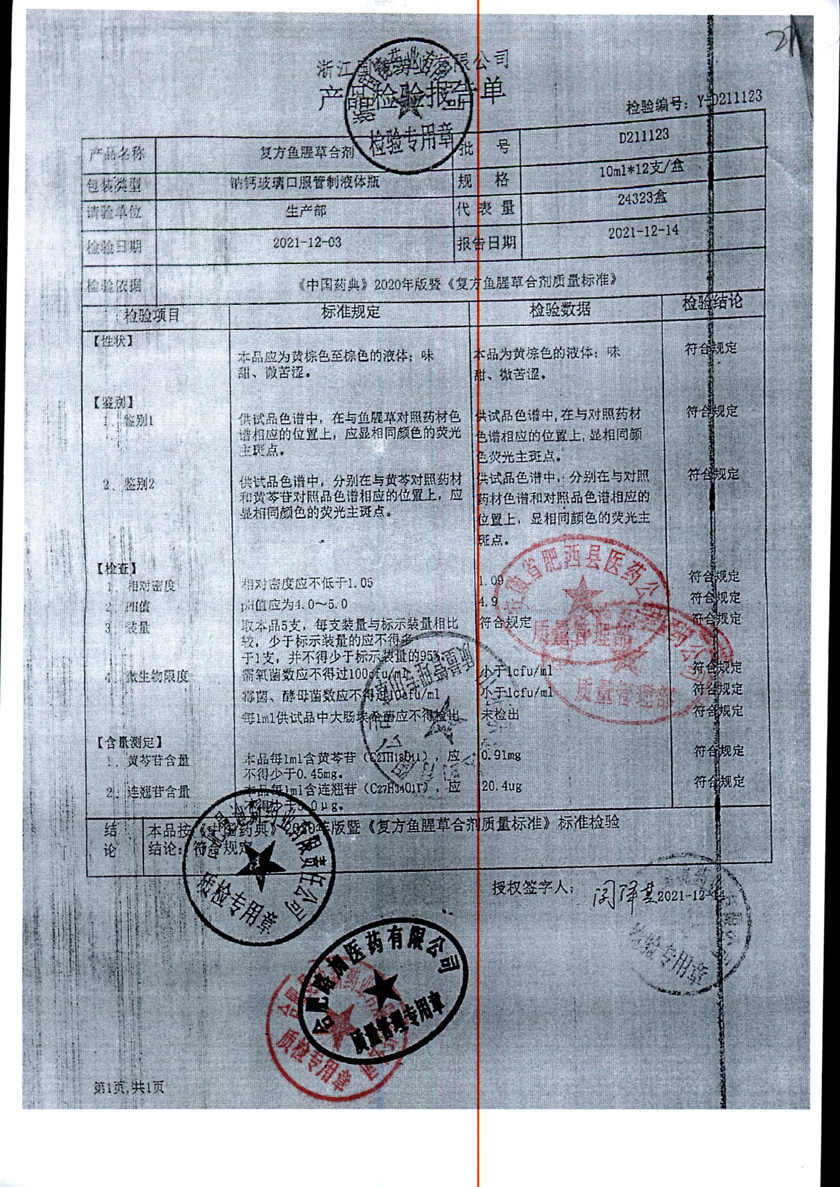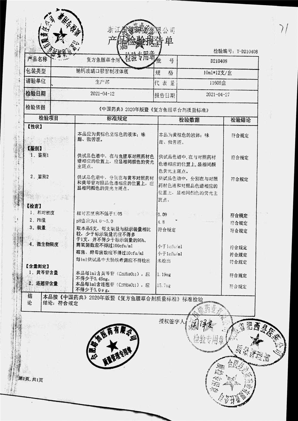 復(fù)方魚(yú)腥草合劑 | 10ml | D210408 | 查看詳情 |