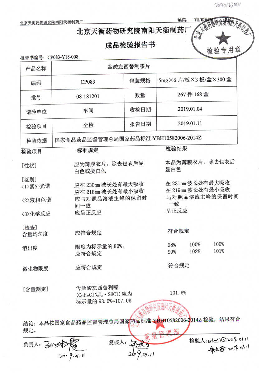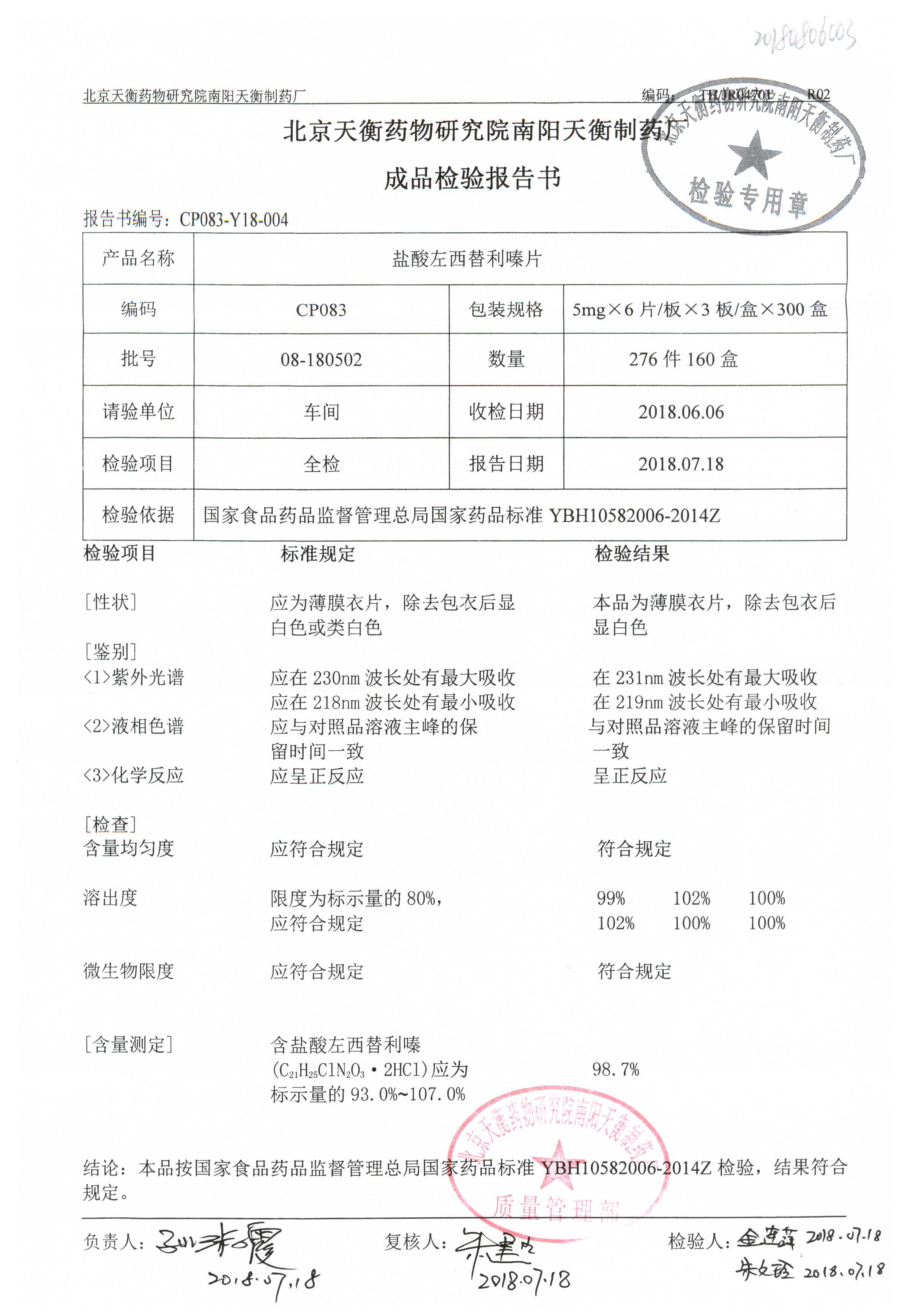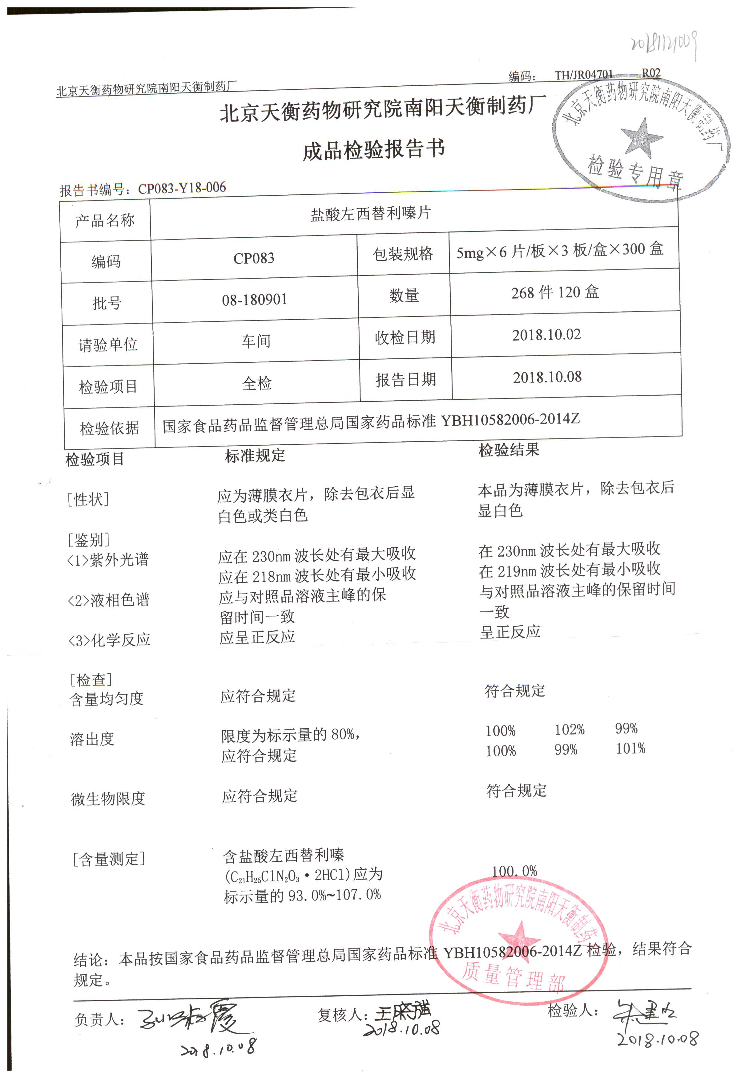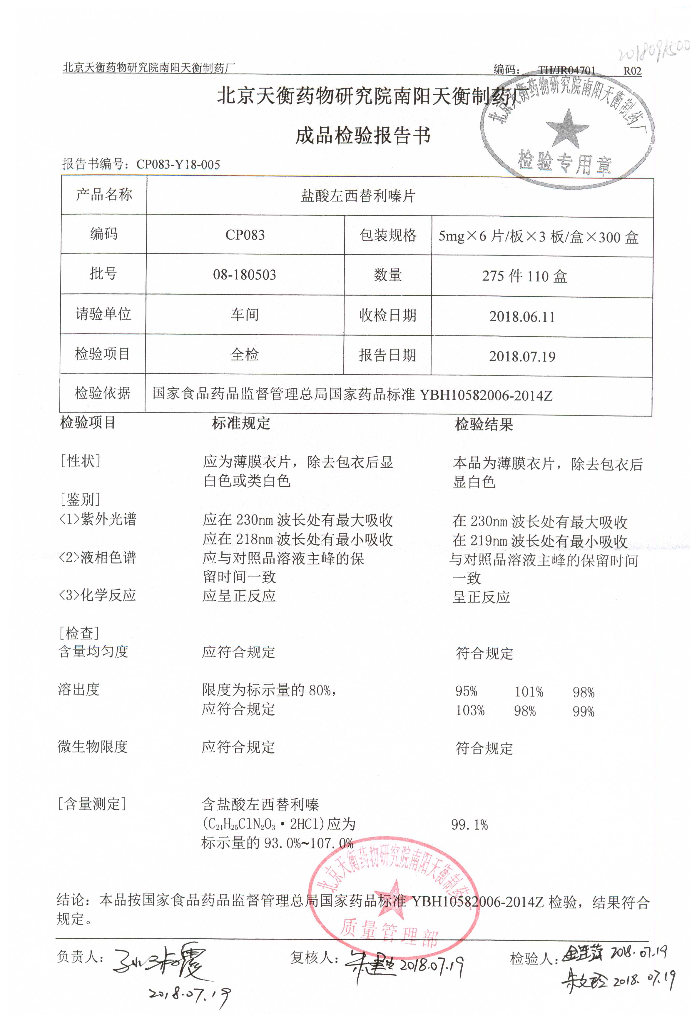 鹽酸左西替利嗪片 5mg*18s 08-180502 查看詳情