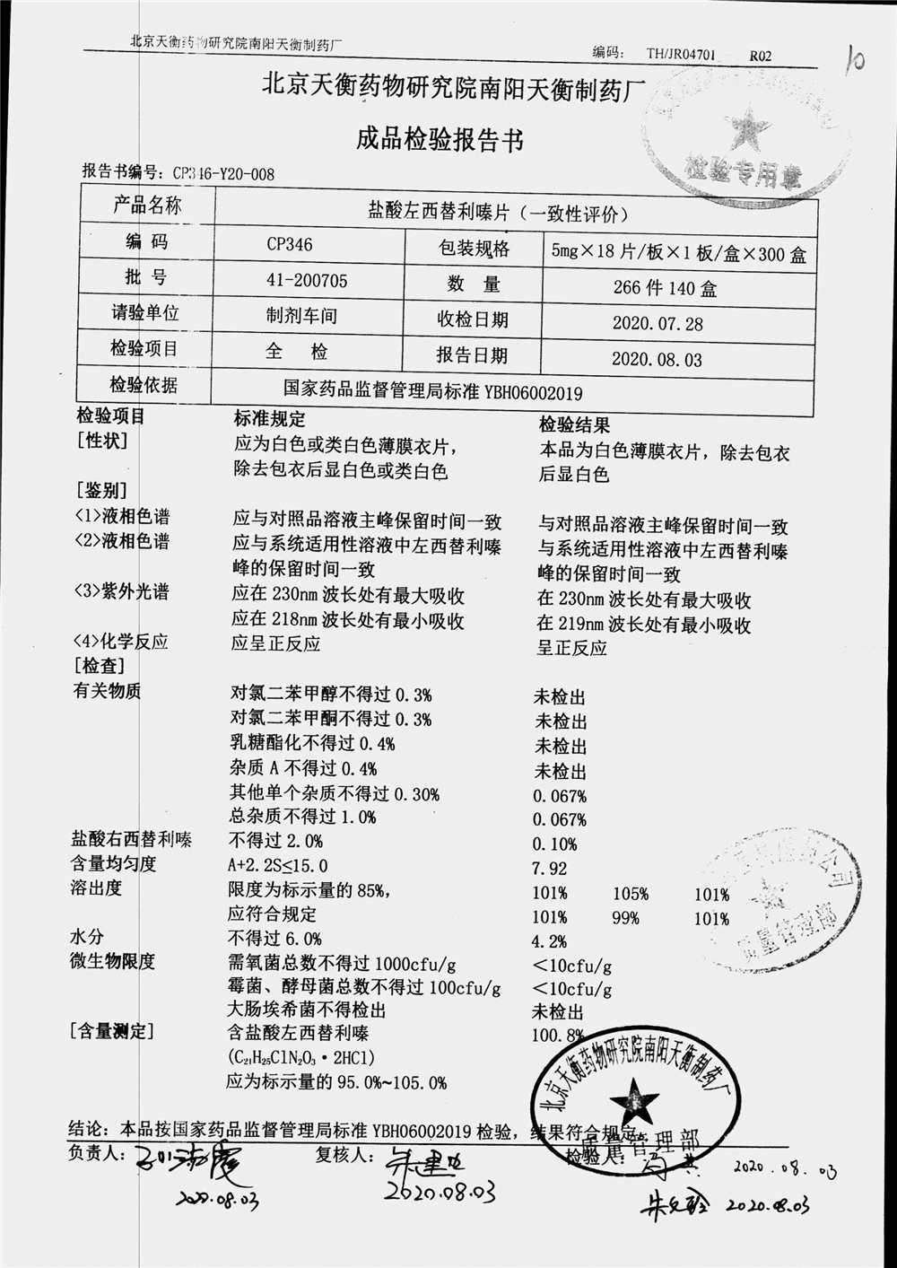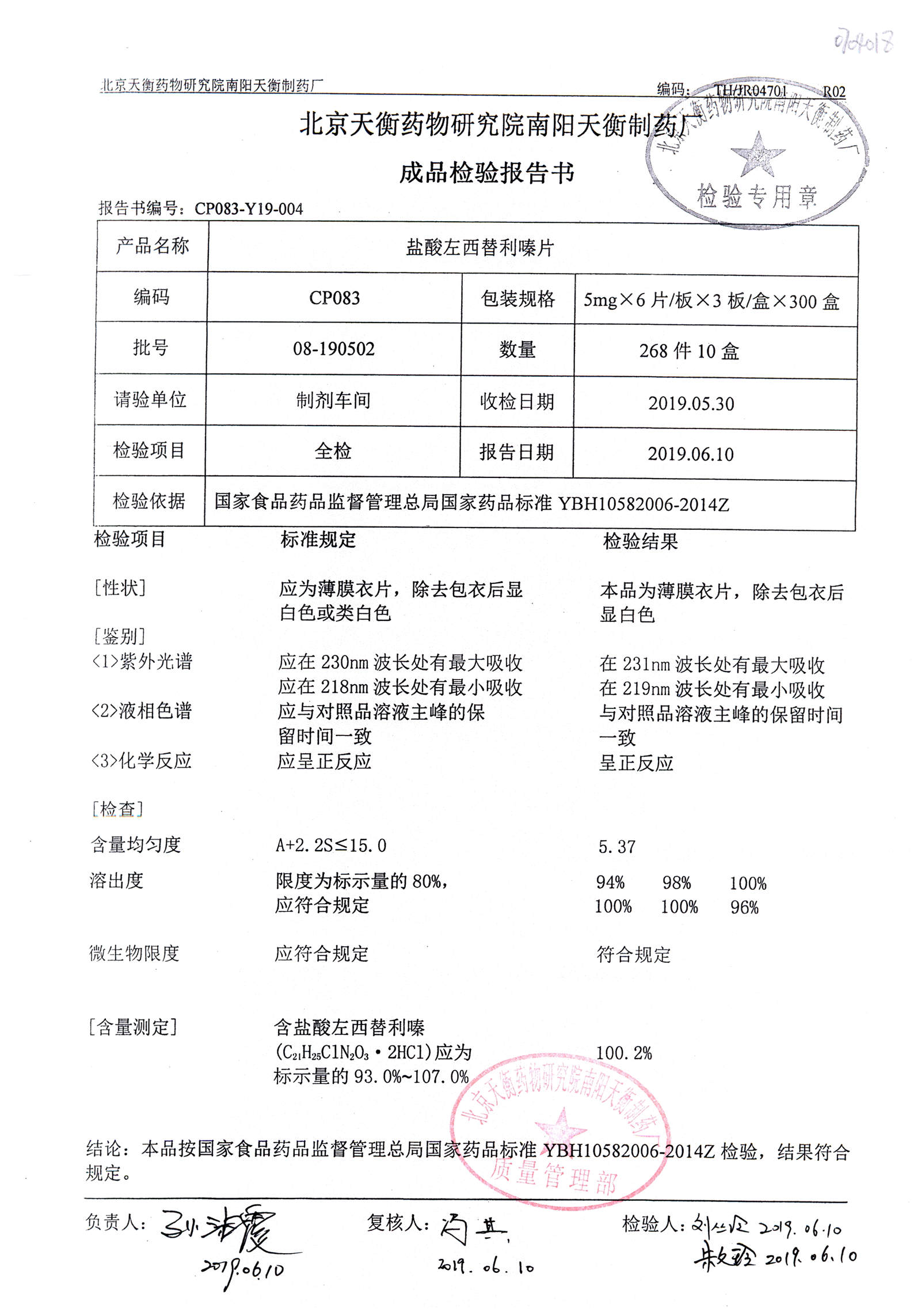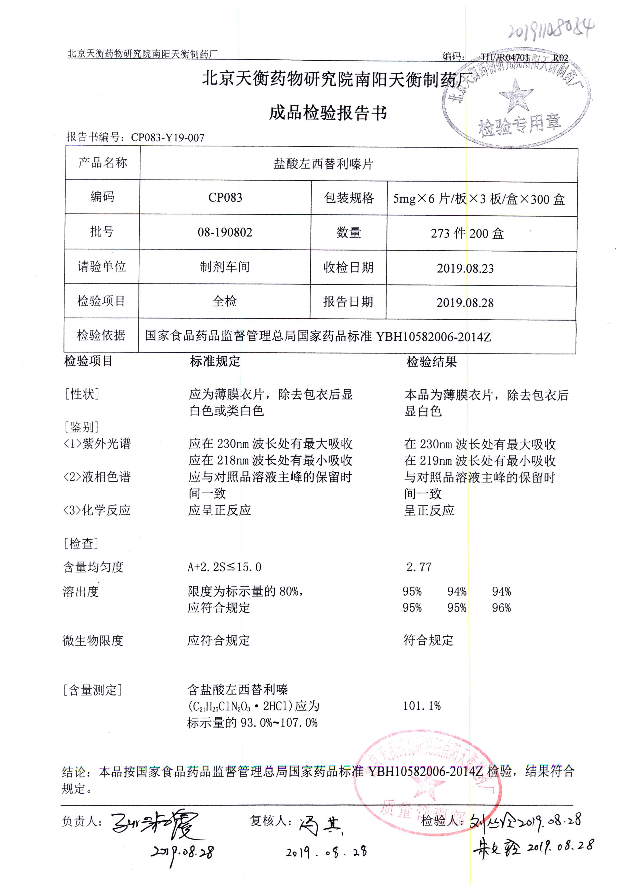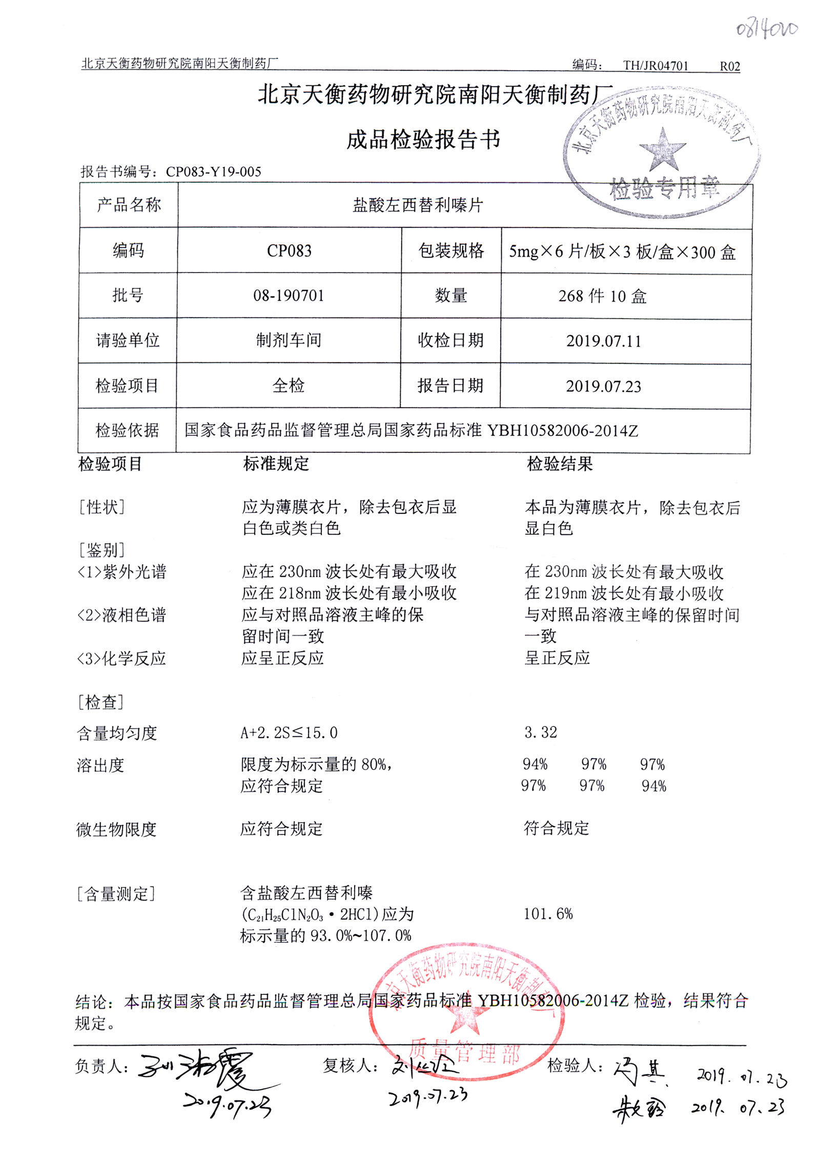 鹽酸左西替利嗪片 5mg*18s 08-180502 查看詳情