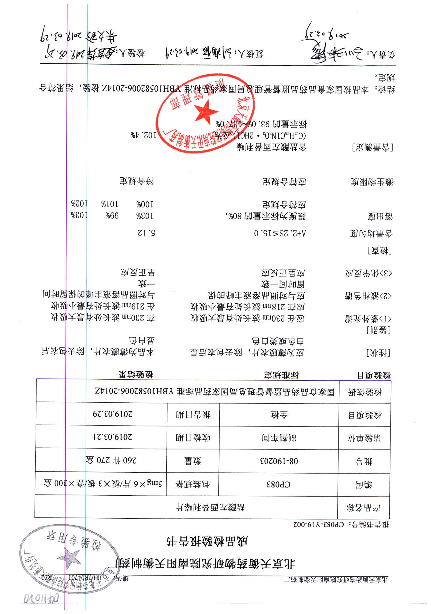 名稱 規(guī)格 批號(hào) 藥檢報(bào)告