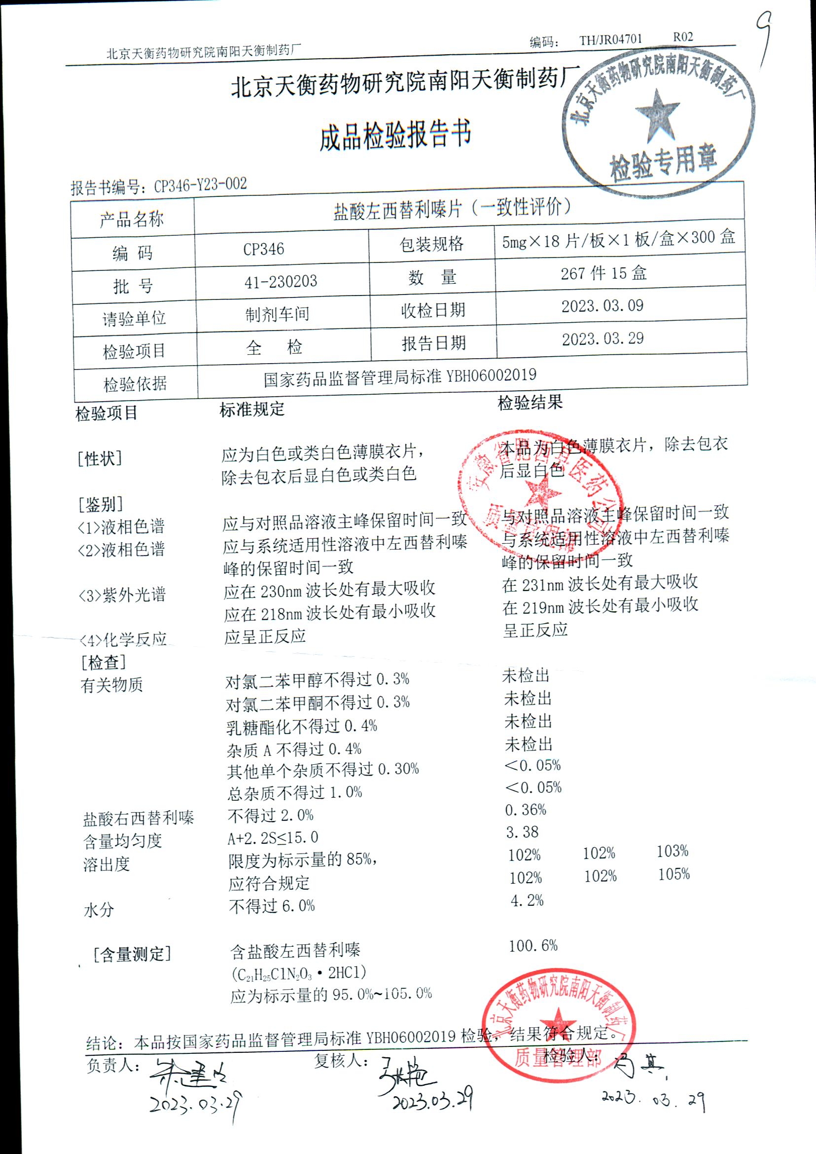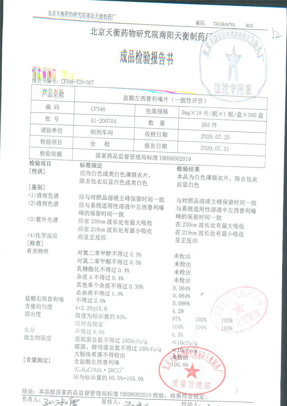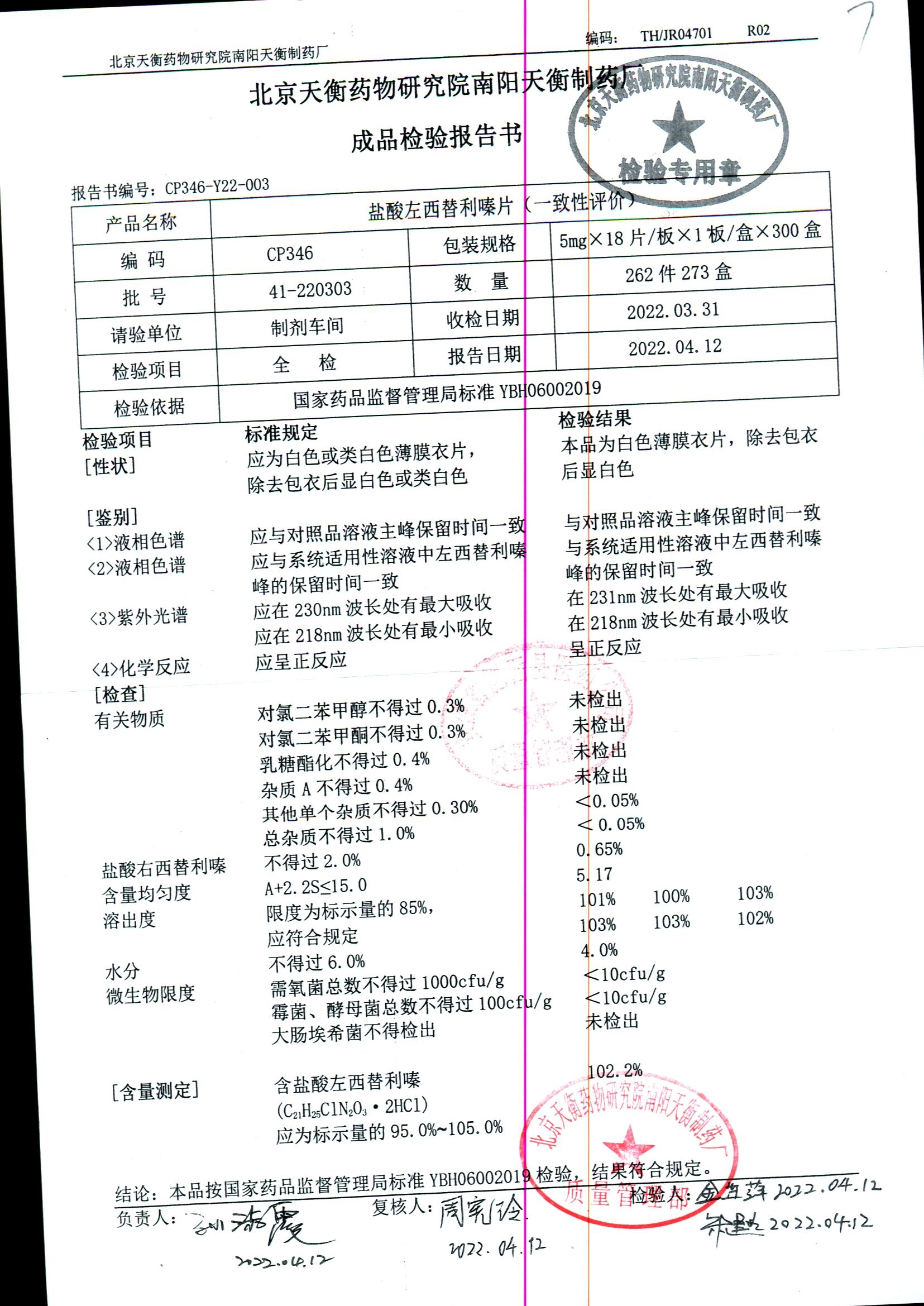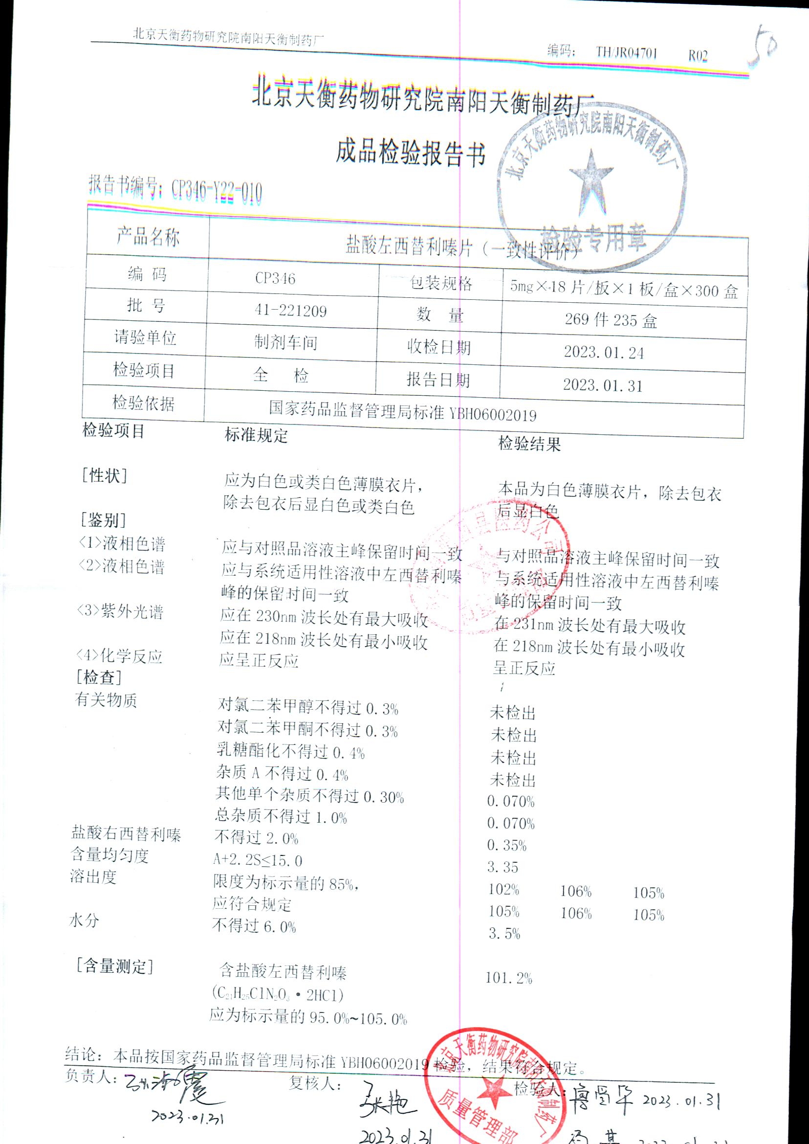 鹽酸左西替利嗪片 5mg*18s 41-191002 查看詳情