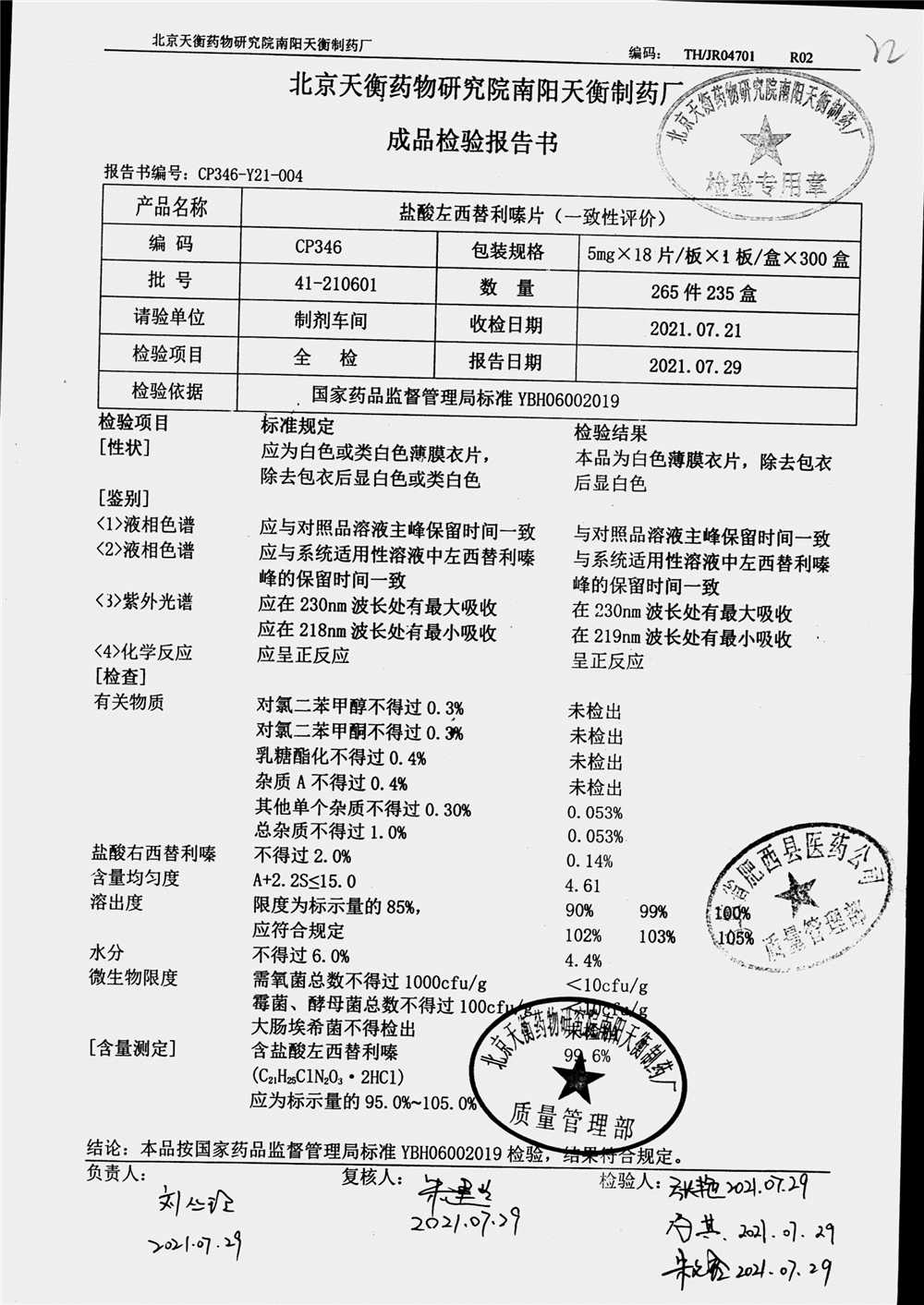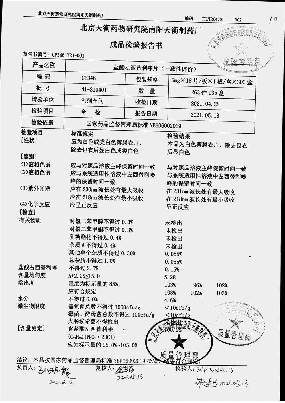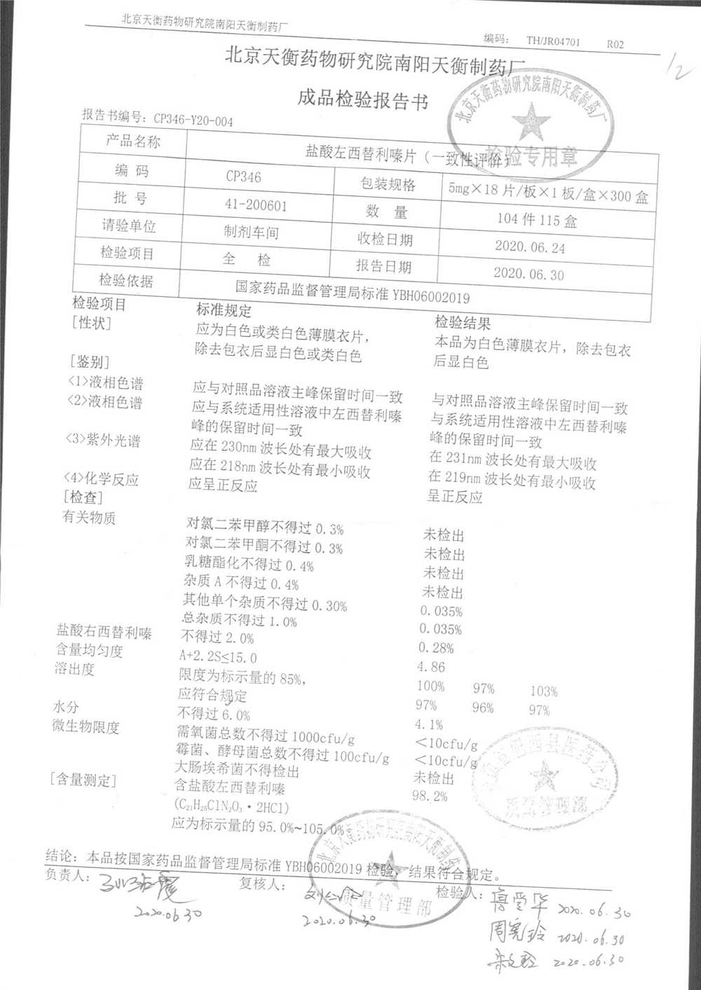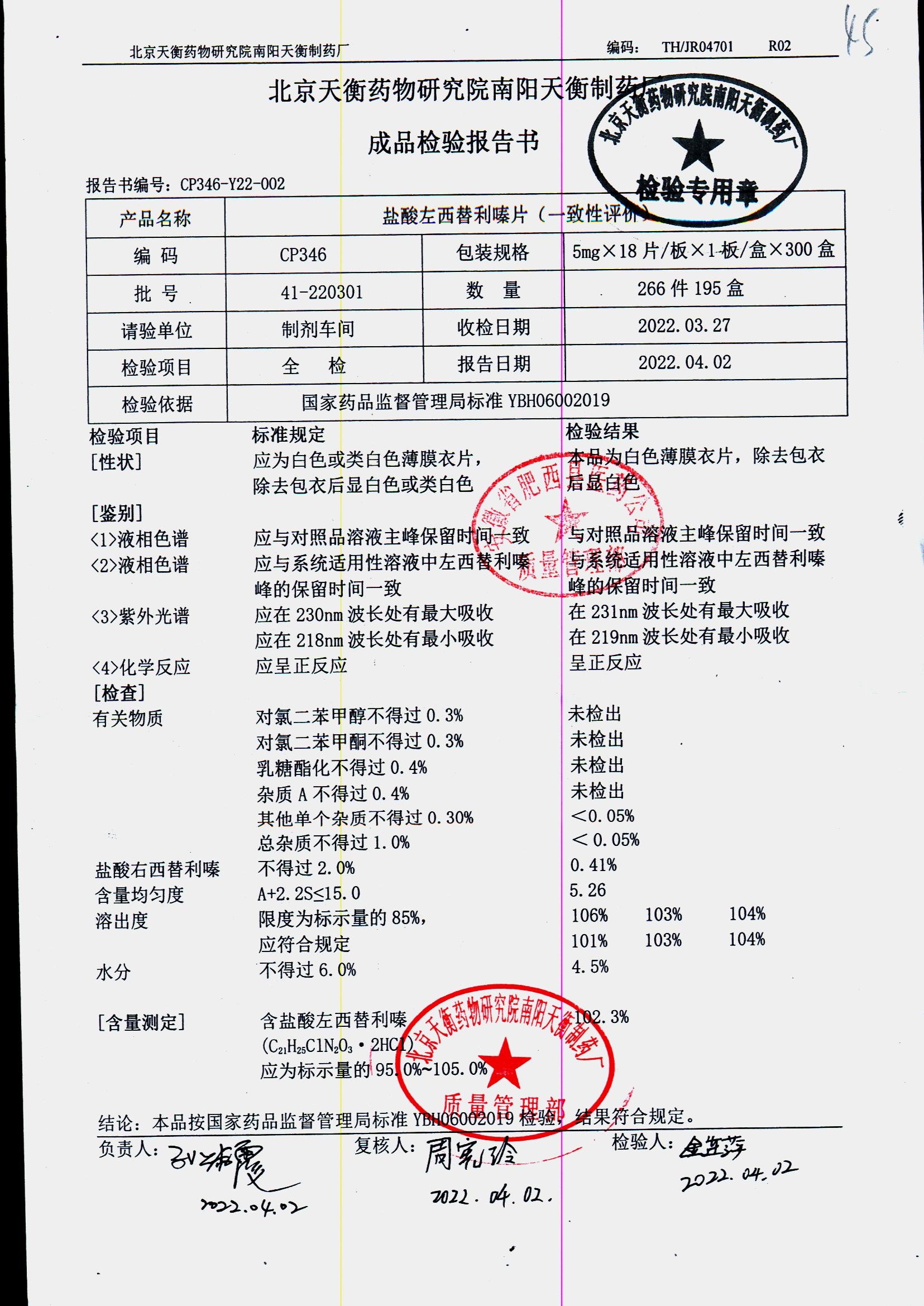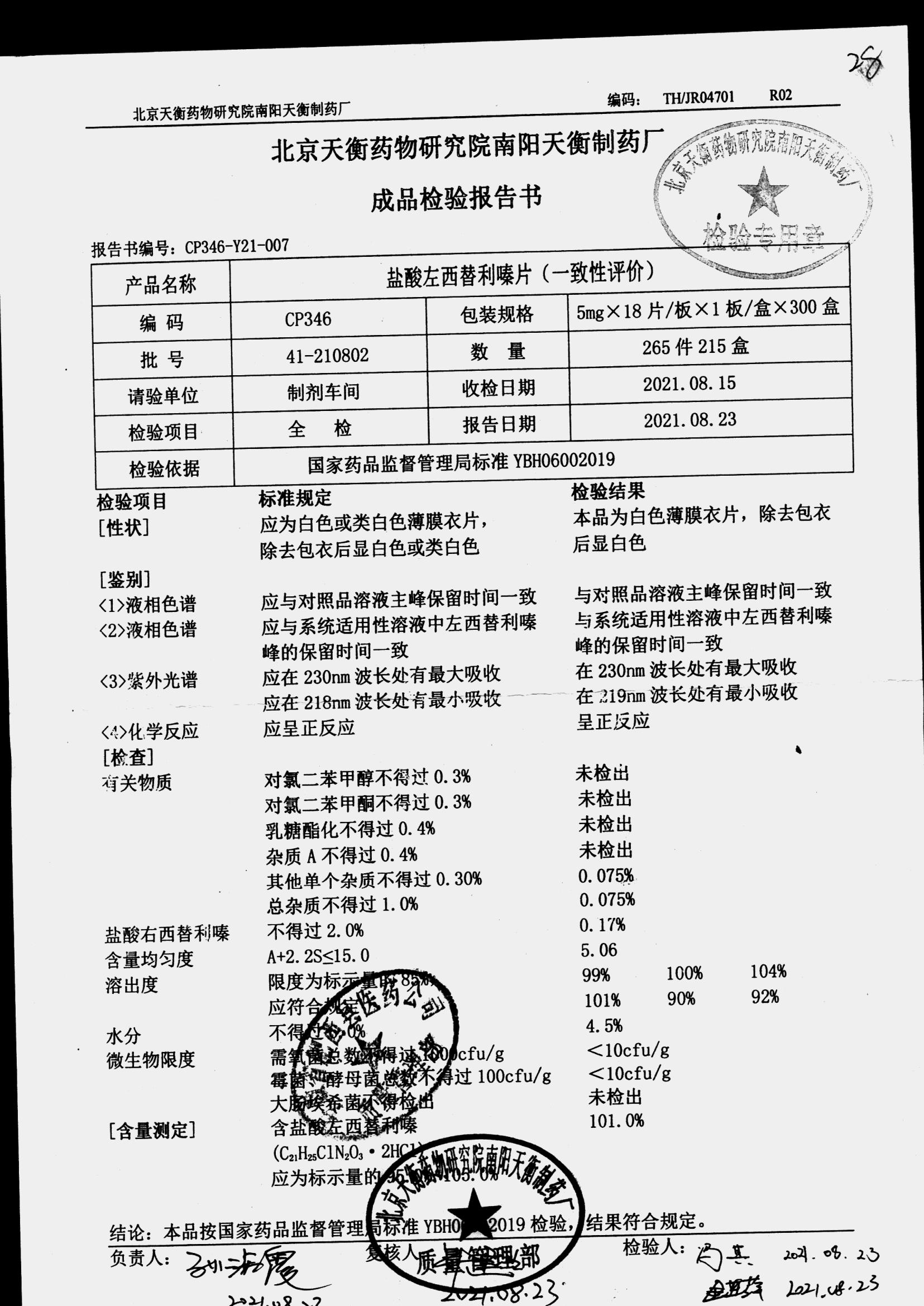 鹽酸左西替利嗪片 5mg*18s 41-191002 查看詳情