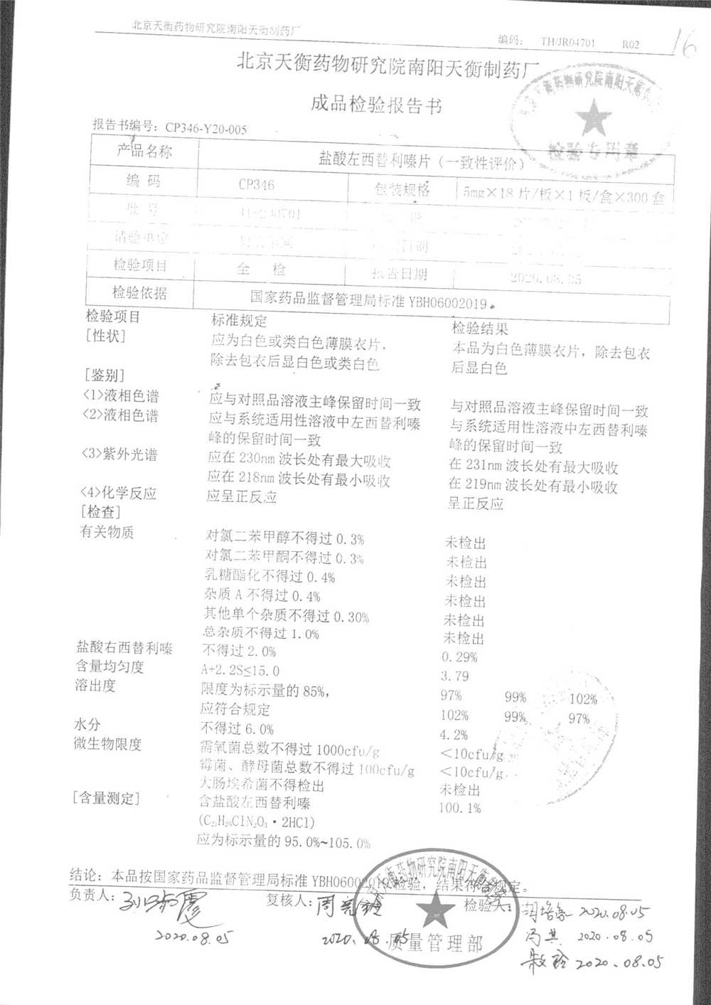 鹽酸左西替利嗪片 5mg*18s 08-180102 查看詳情