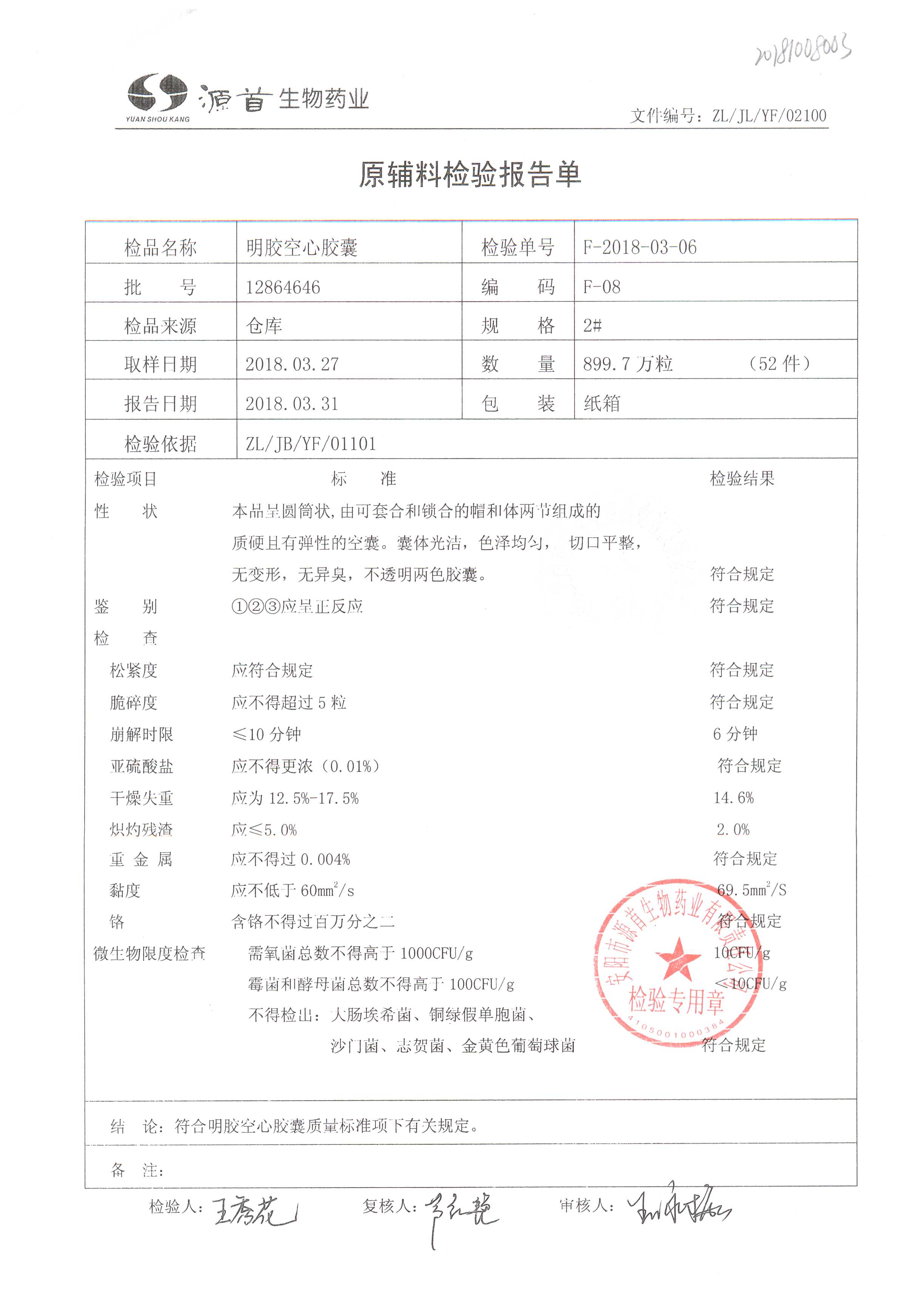 蠟樣芽孢桿菌活菌膠囊(源首) | 0.25g | 20180504(2/3) | 查看詳情 |