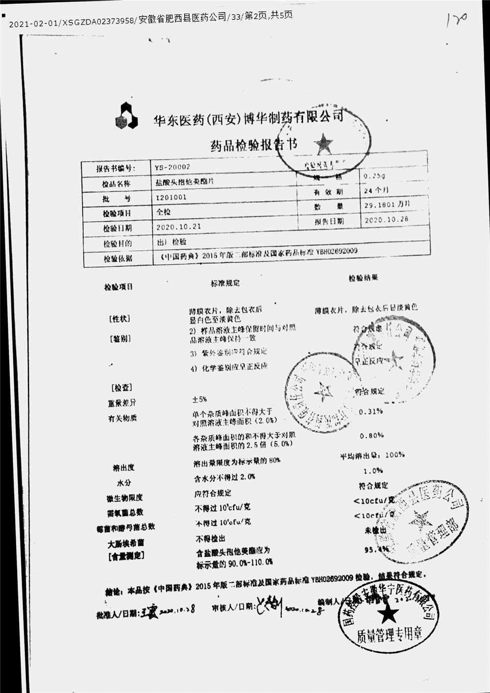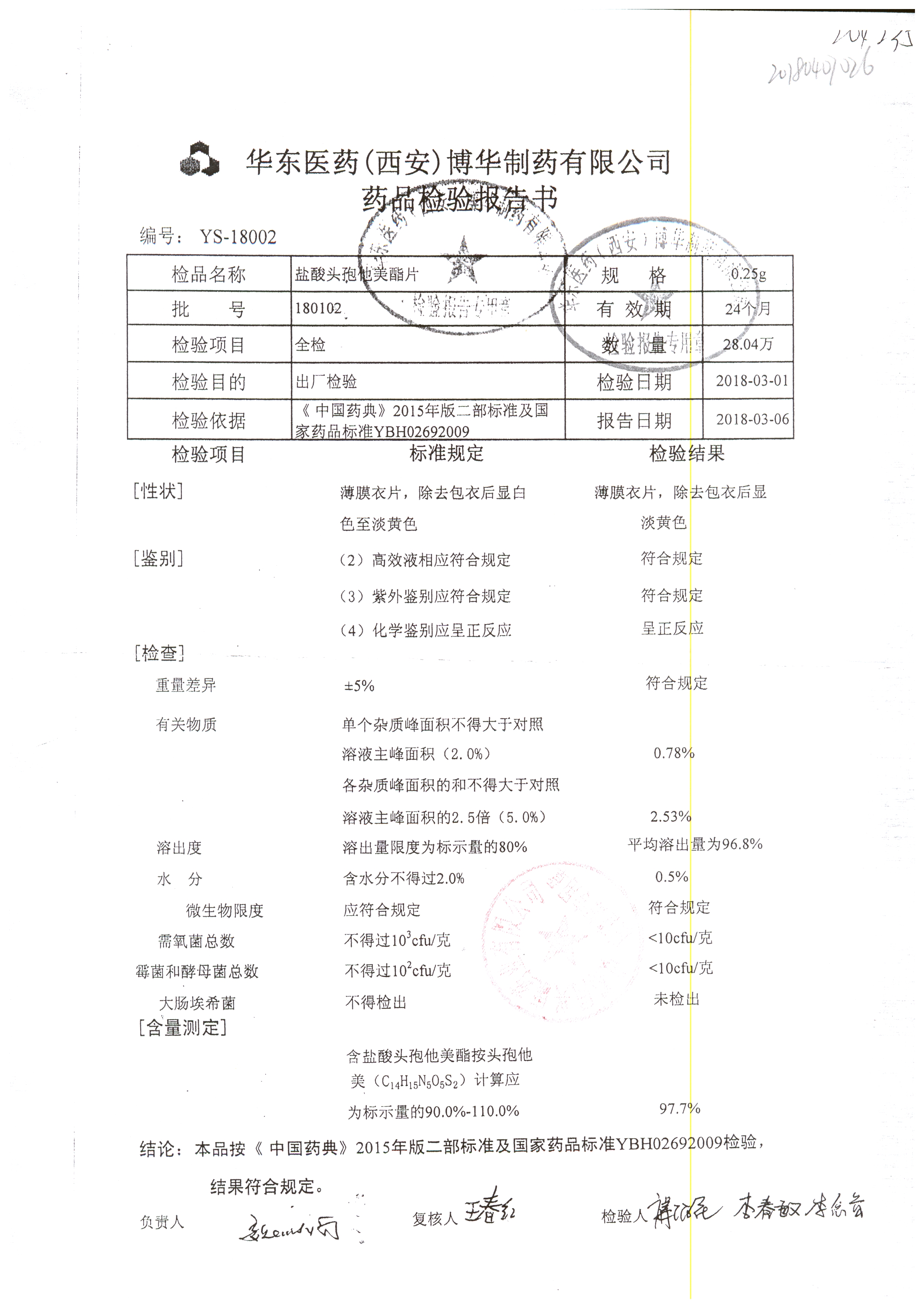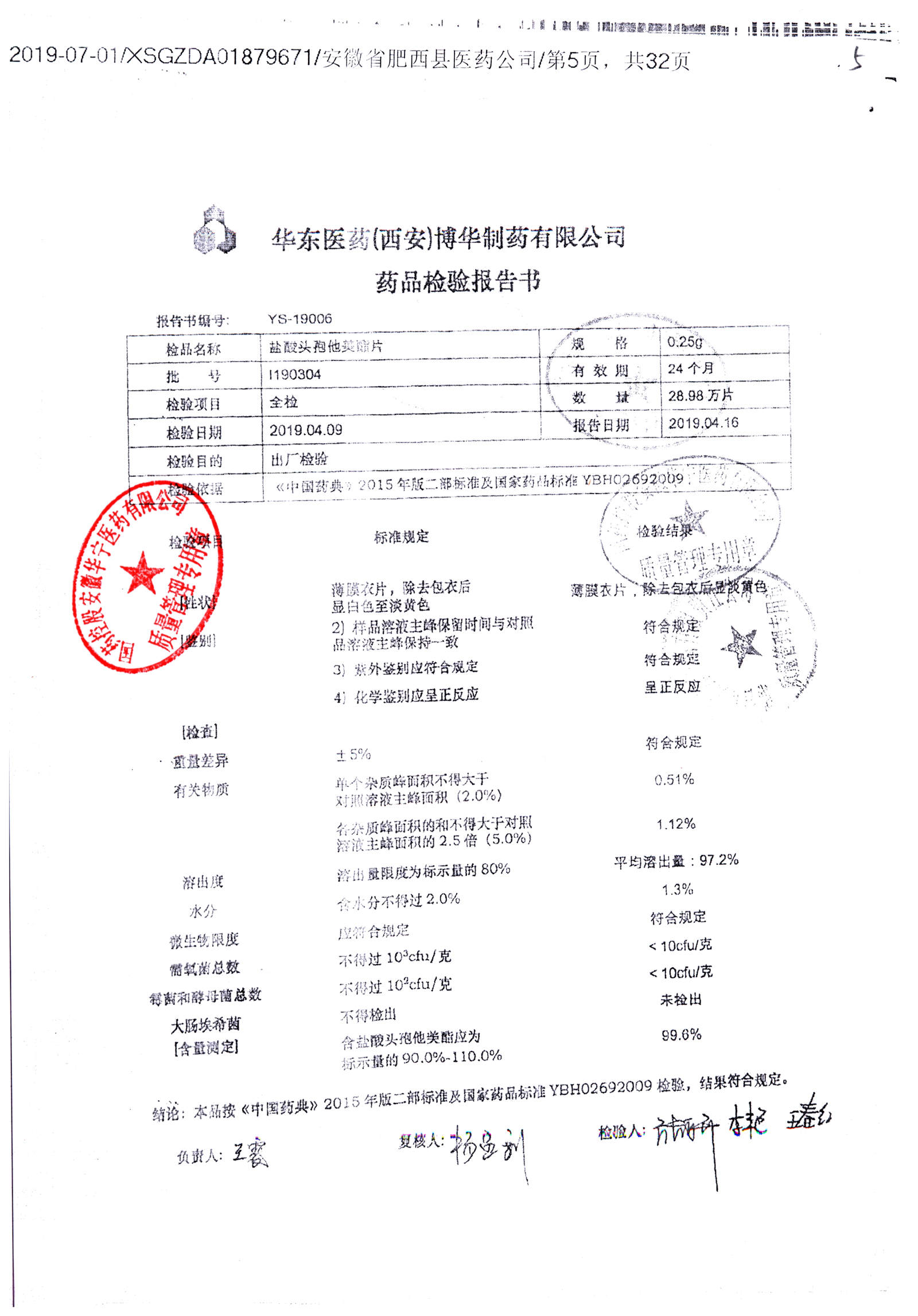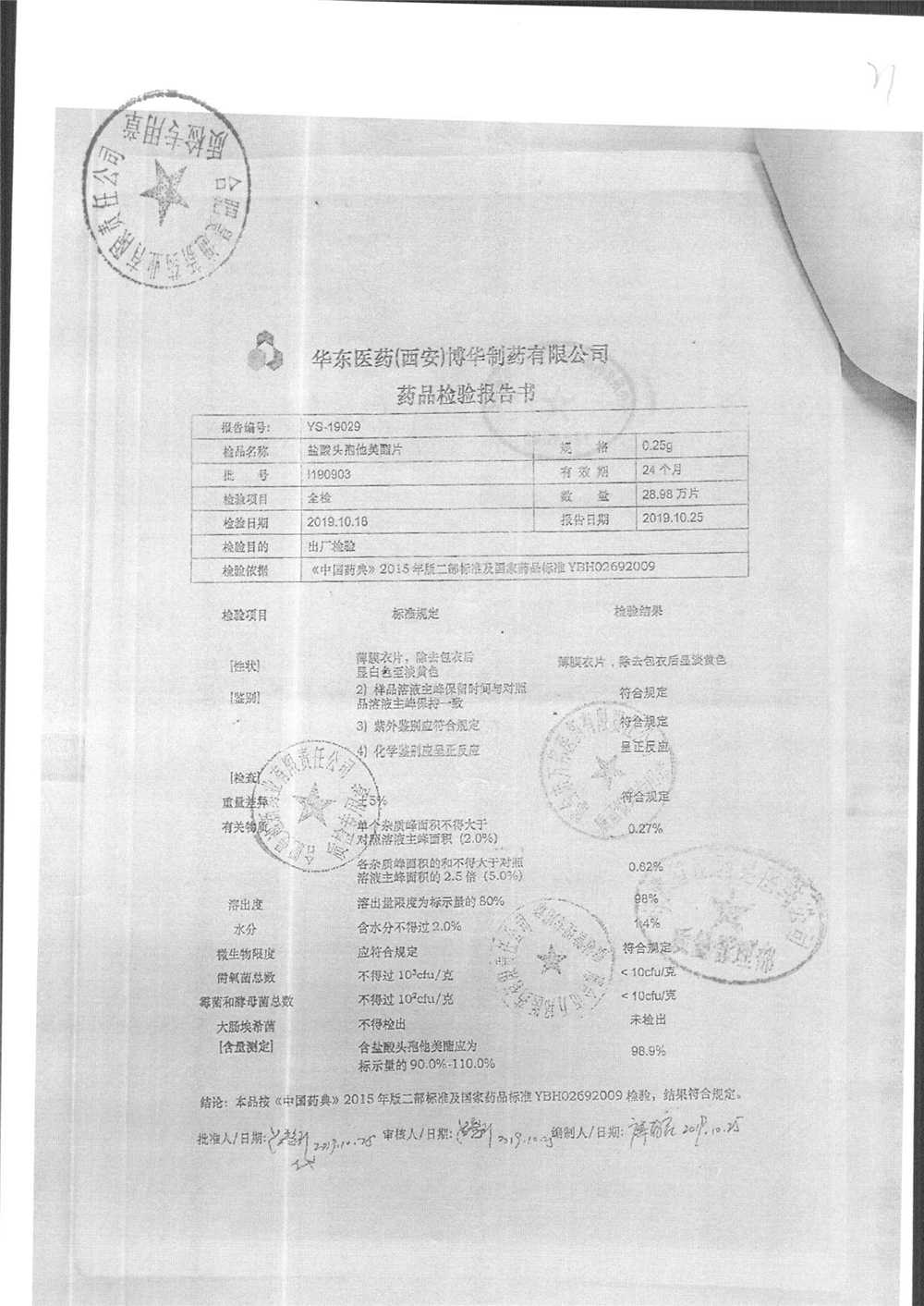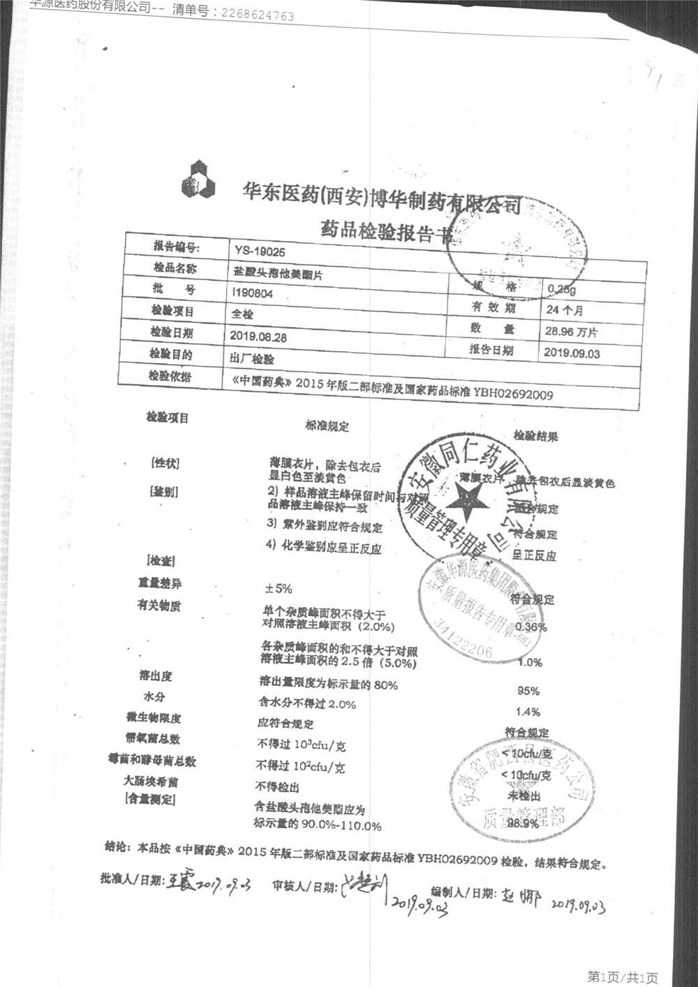 鹽酸頭孢他美酯片 | 0.25g | l190304 | 查看詳情 |