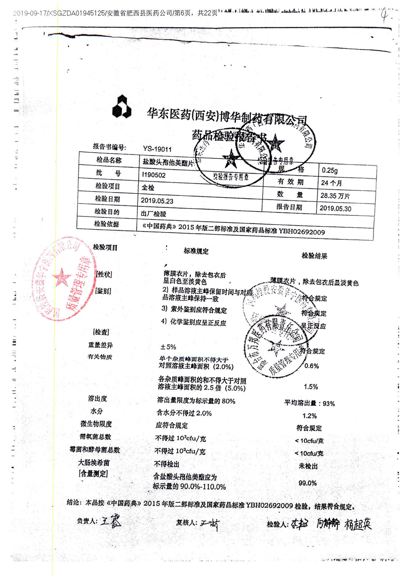 鹽酸頭孢他美酯片 | 0.25g | I190601 | 查看詳情 |