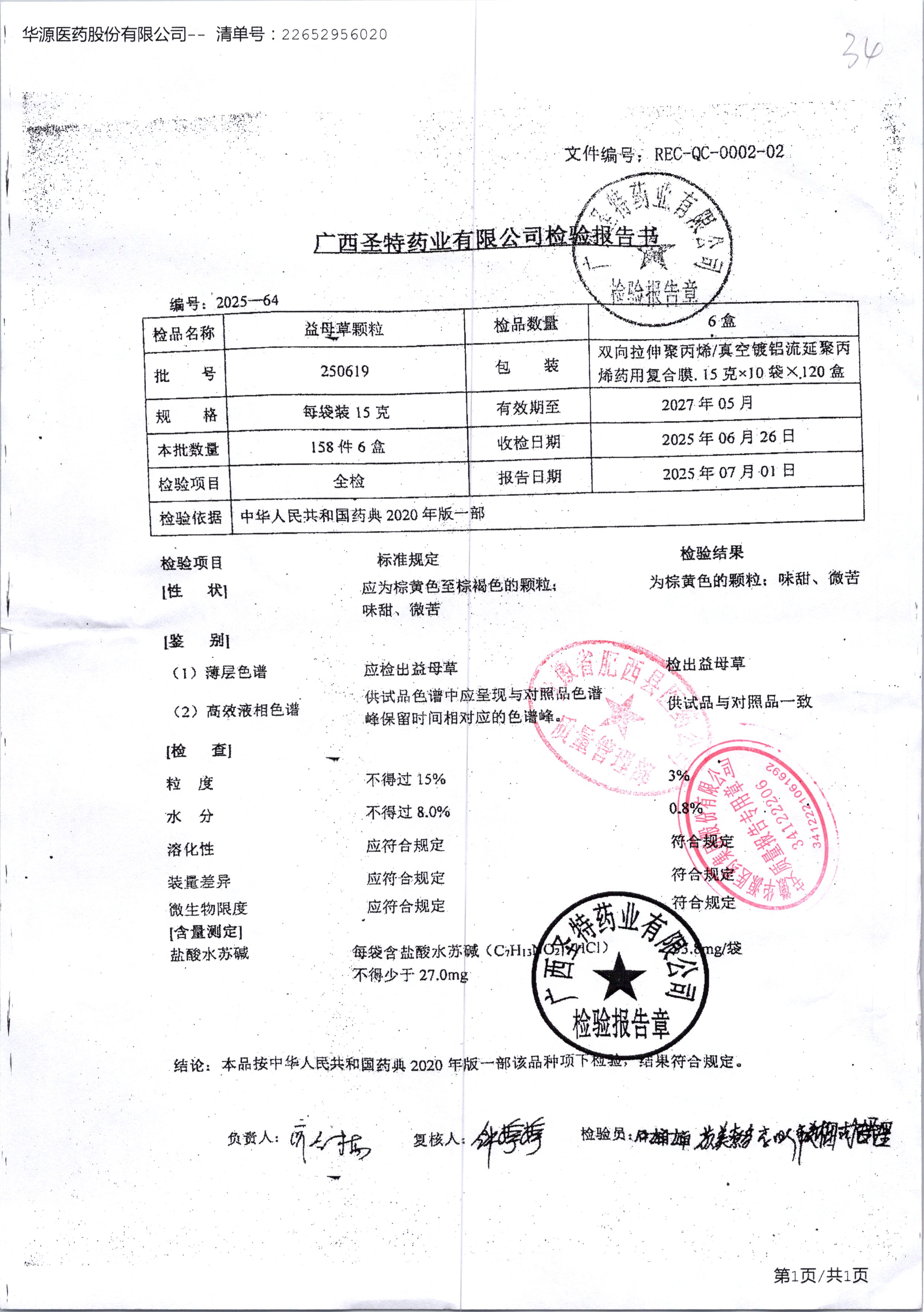 名稱 規(guī)格 批號(hào) 藥檢報(bào)告