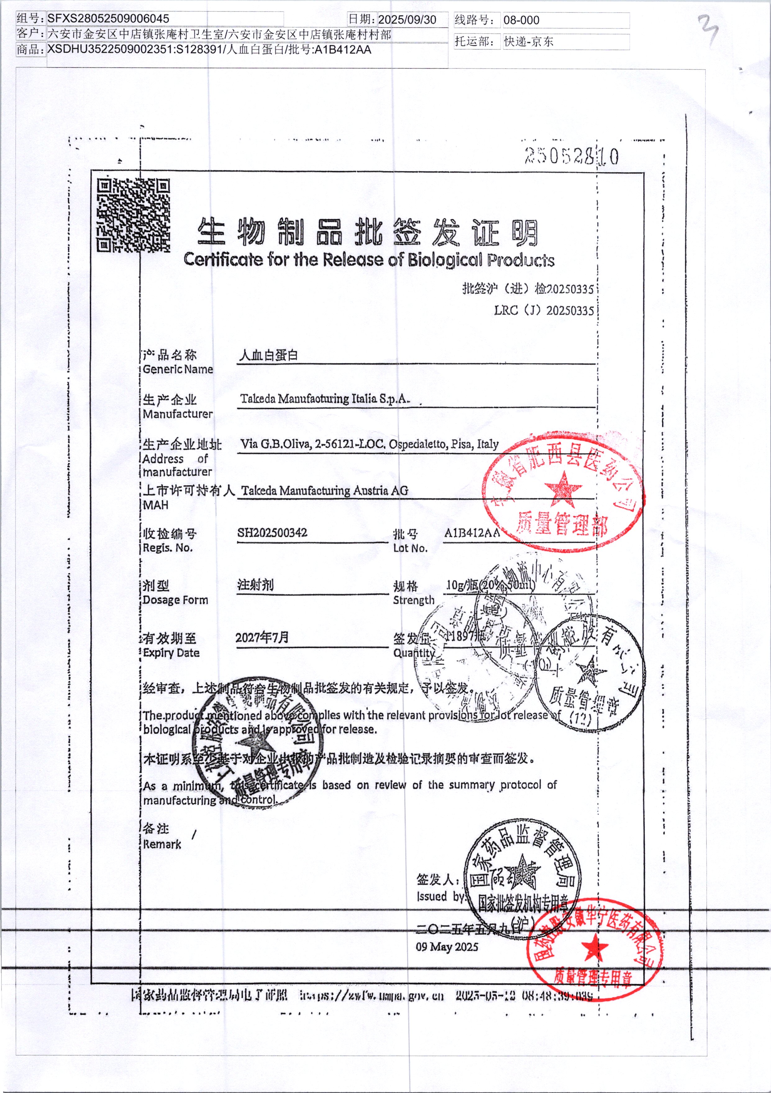 人血白蛋白 | 10g | A1B412AA/1 | 查看詳情 |
