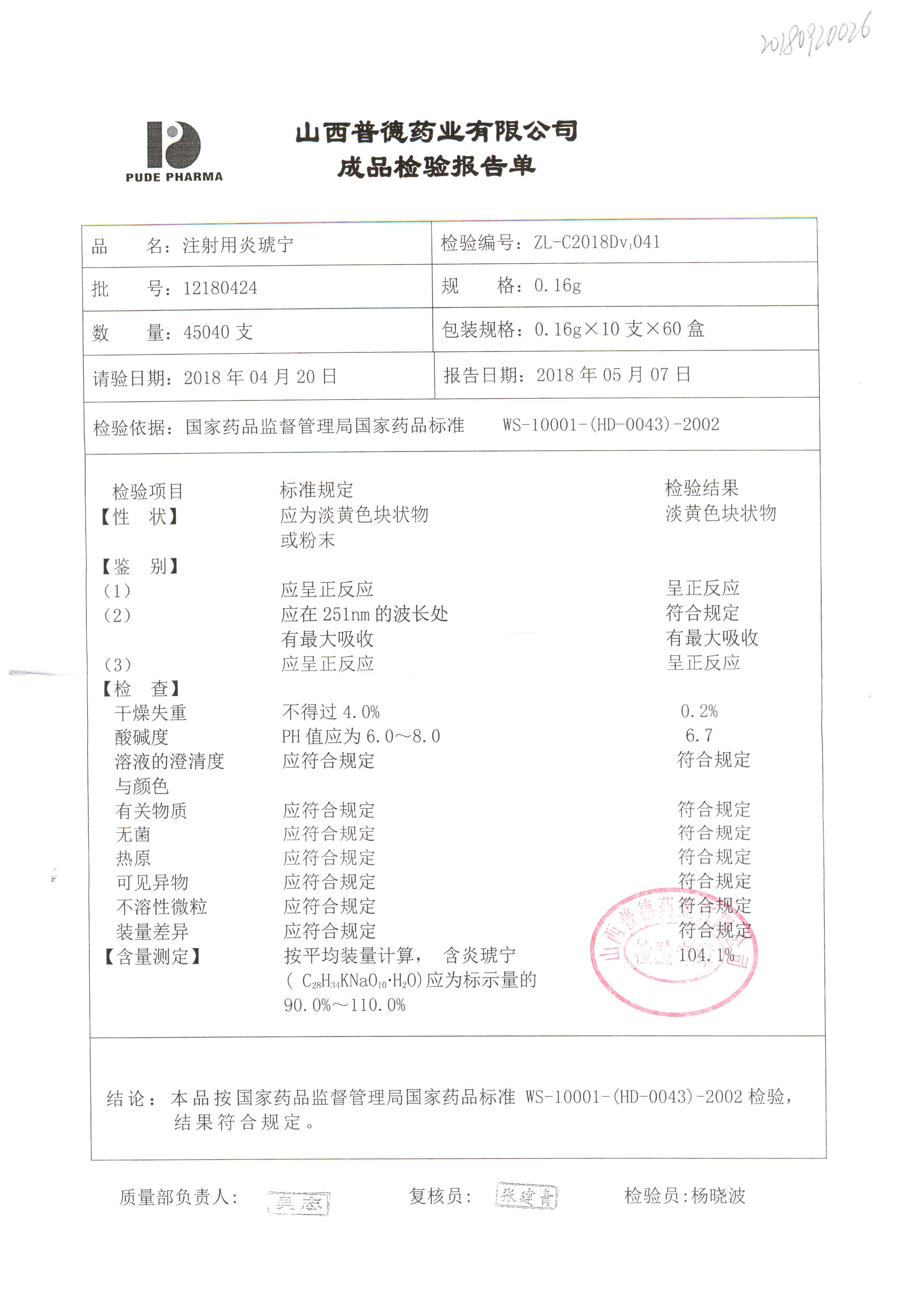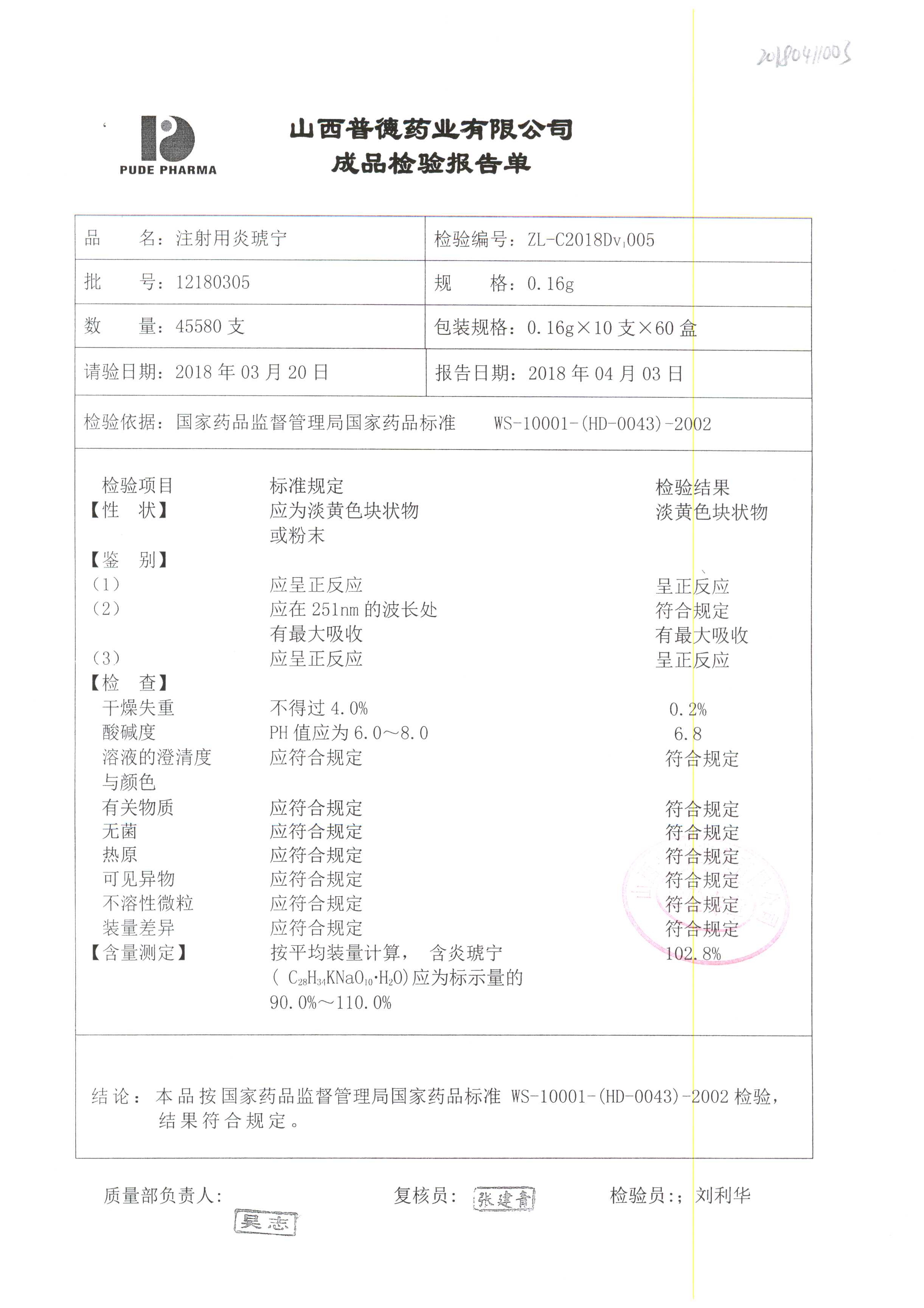 注射用炎琥寧 | 0.16g*10支 | 12180506 | 查看詳情 |