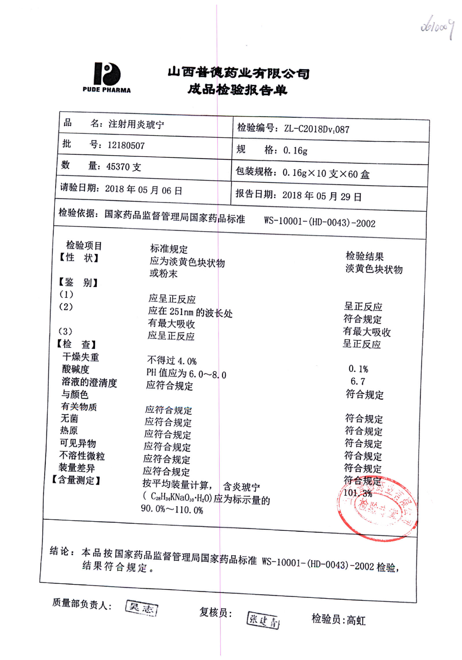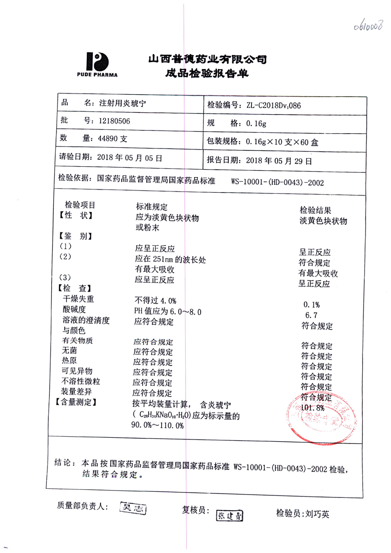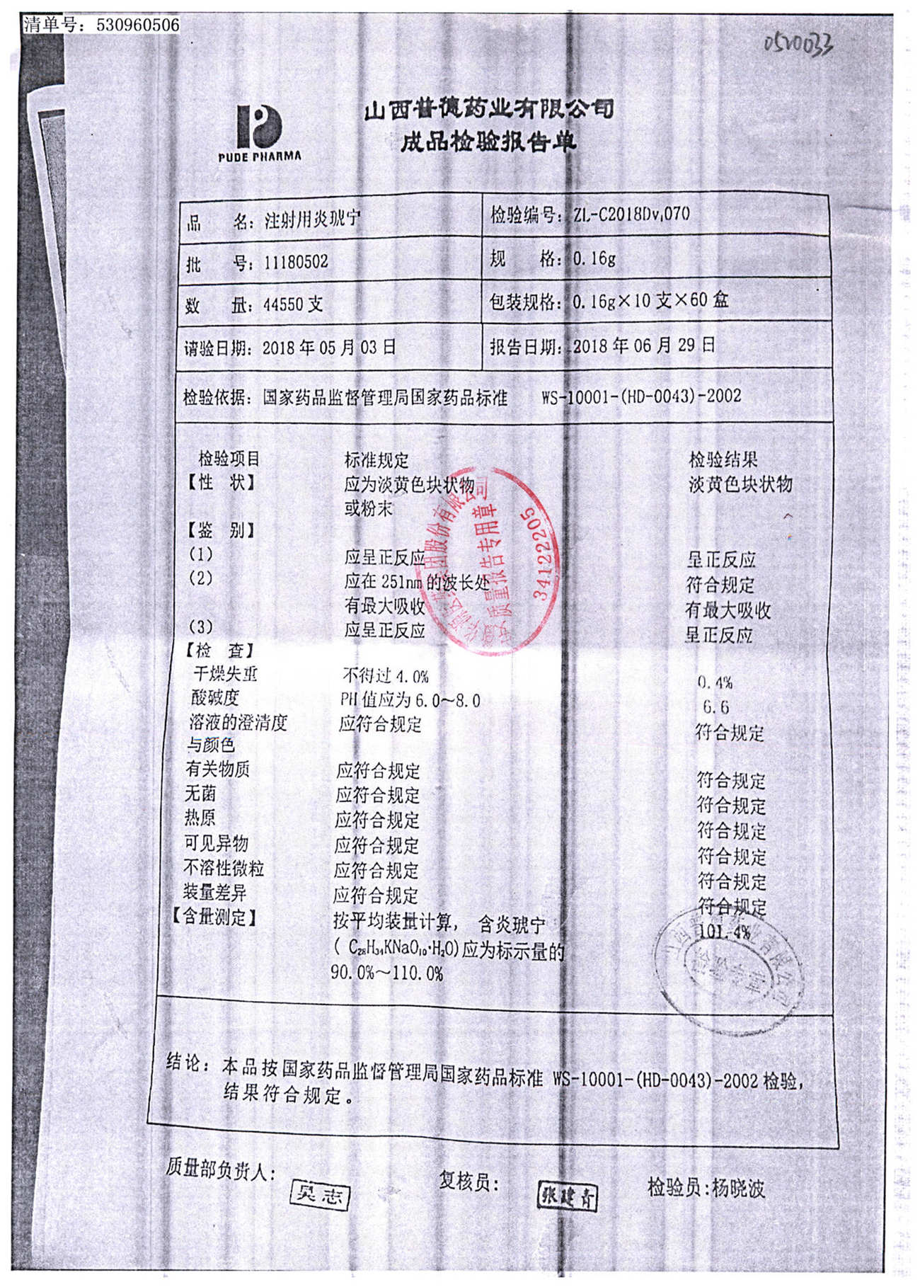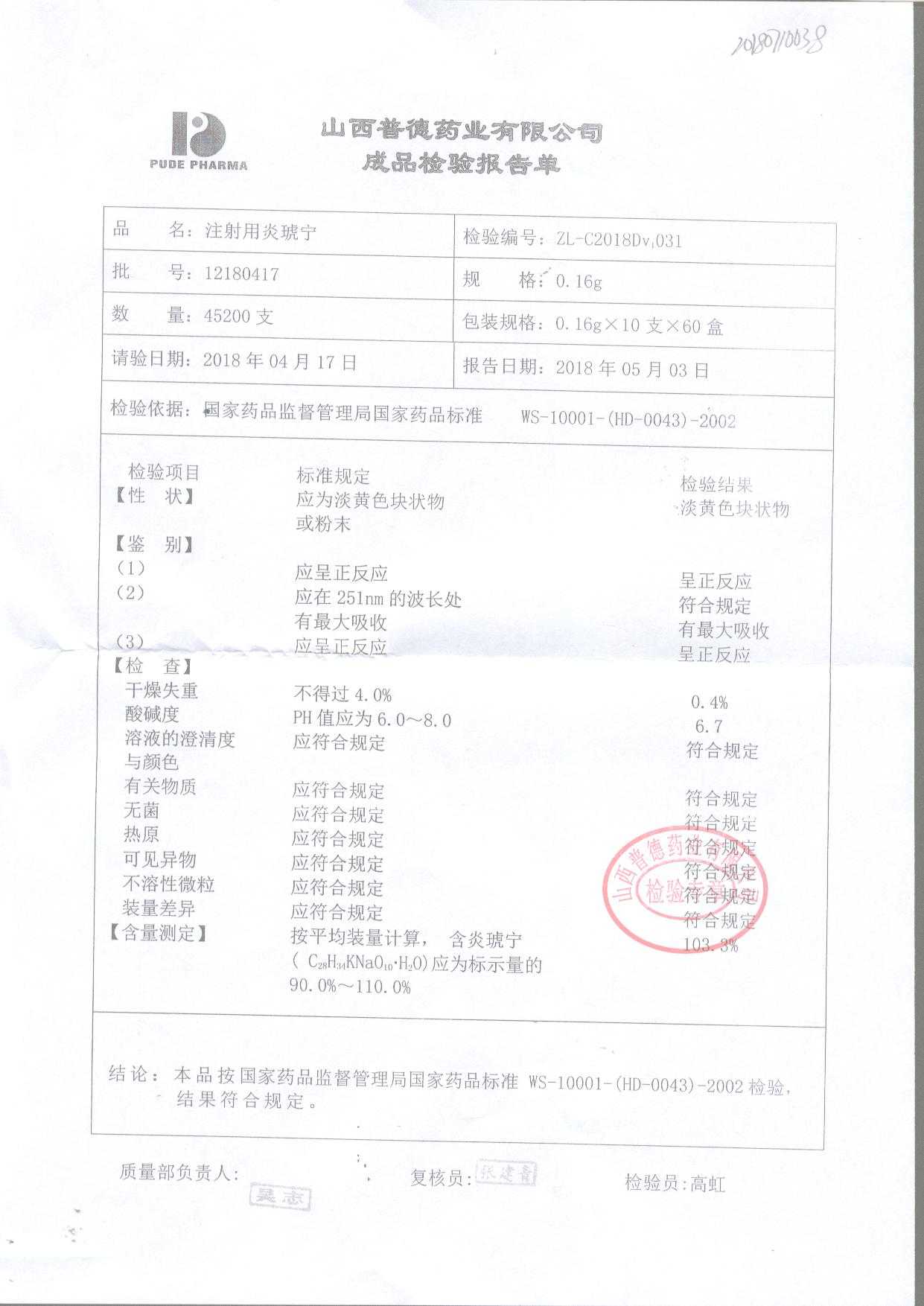 名稱 | 規(guī)格 | 批號(hào) | 藥檢報(bào)告 |