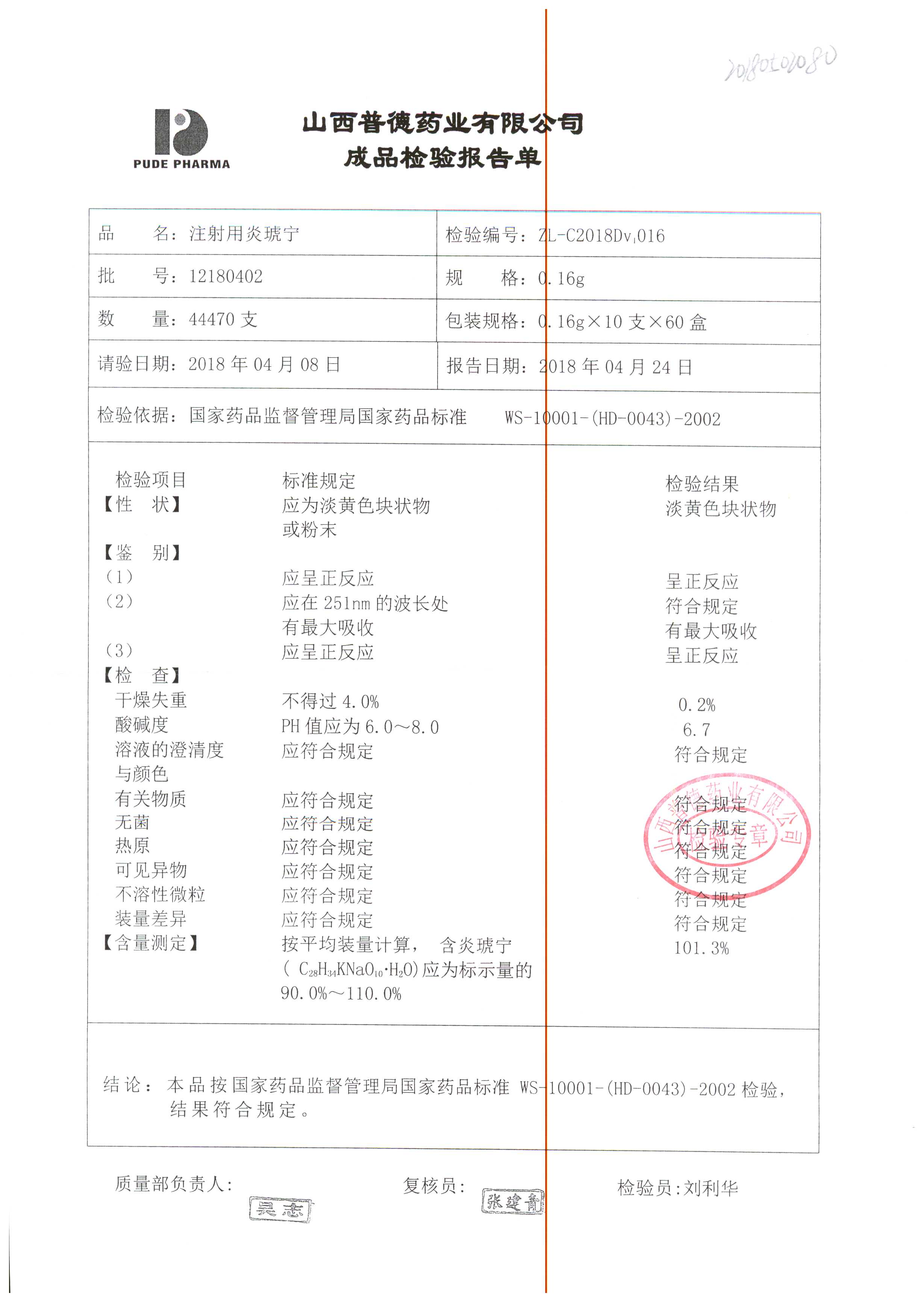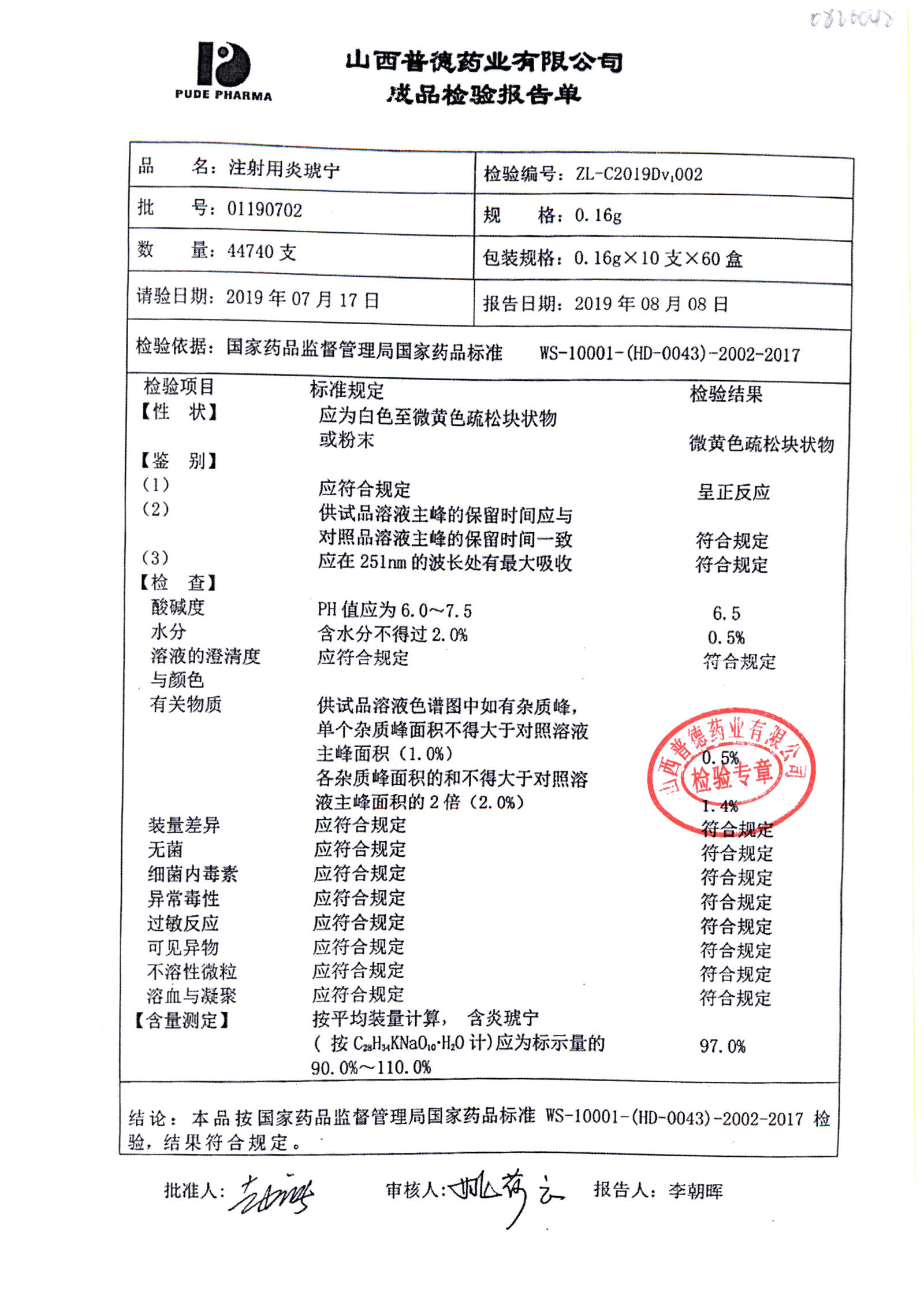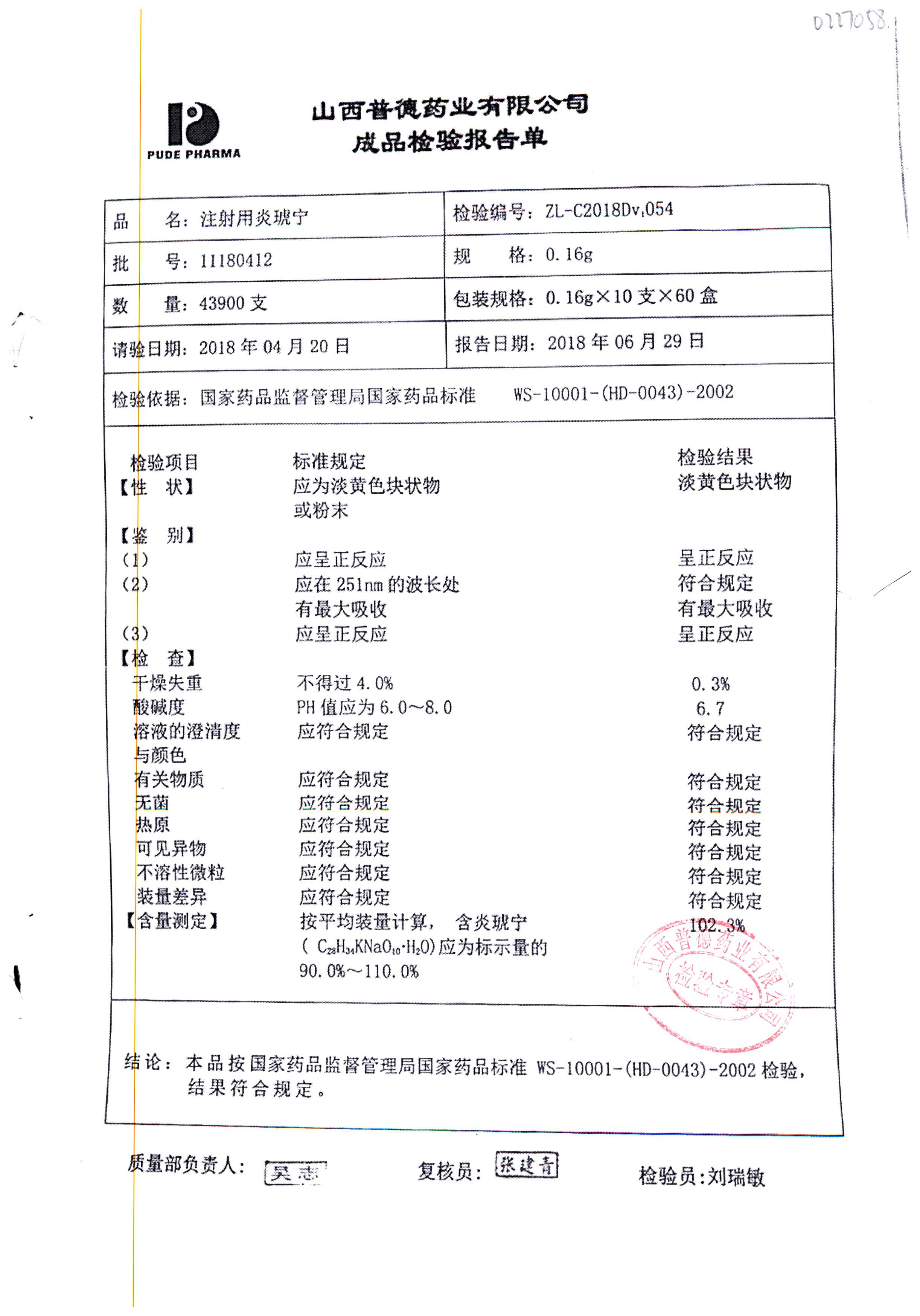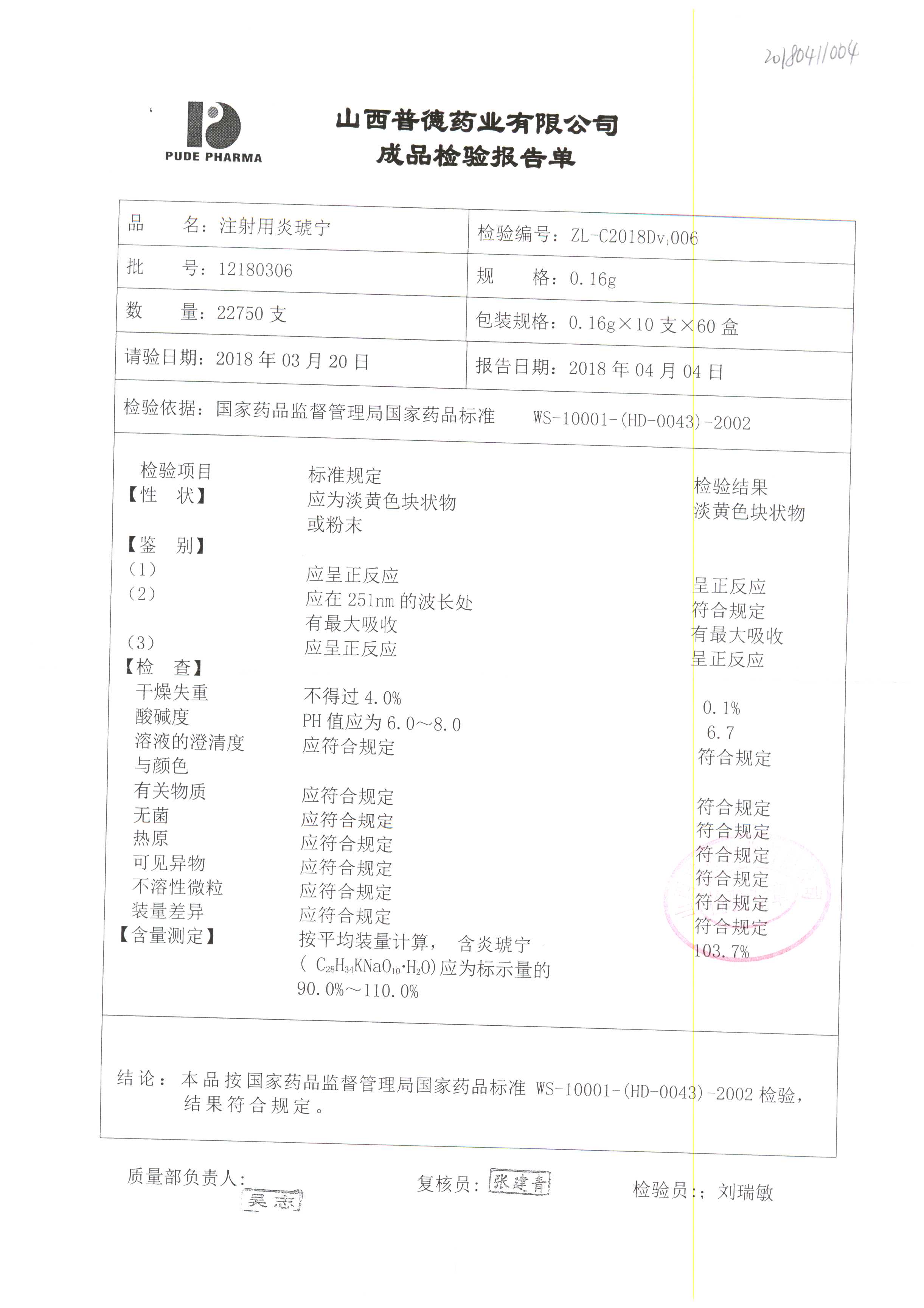 名稱 | 規(guī)格 | 批號(hào) | 藥檢報(bào)告 |