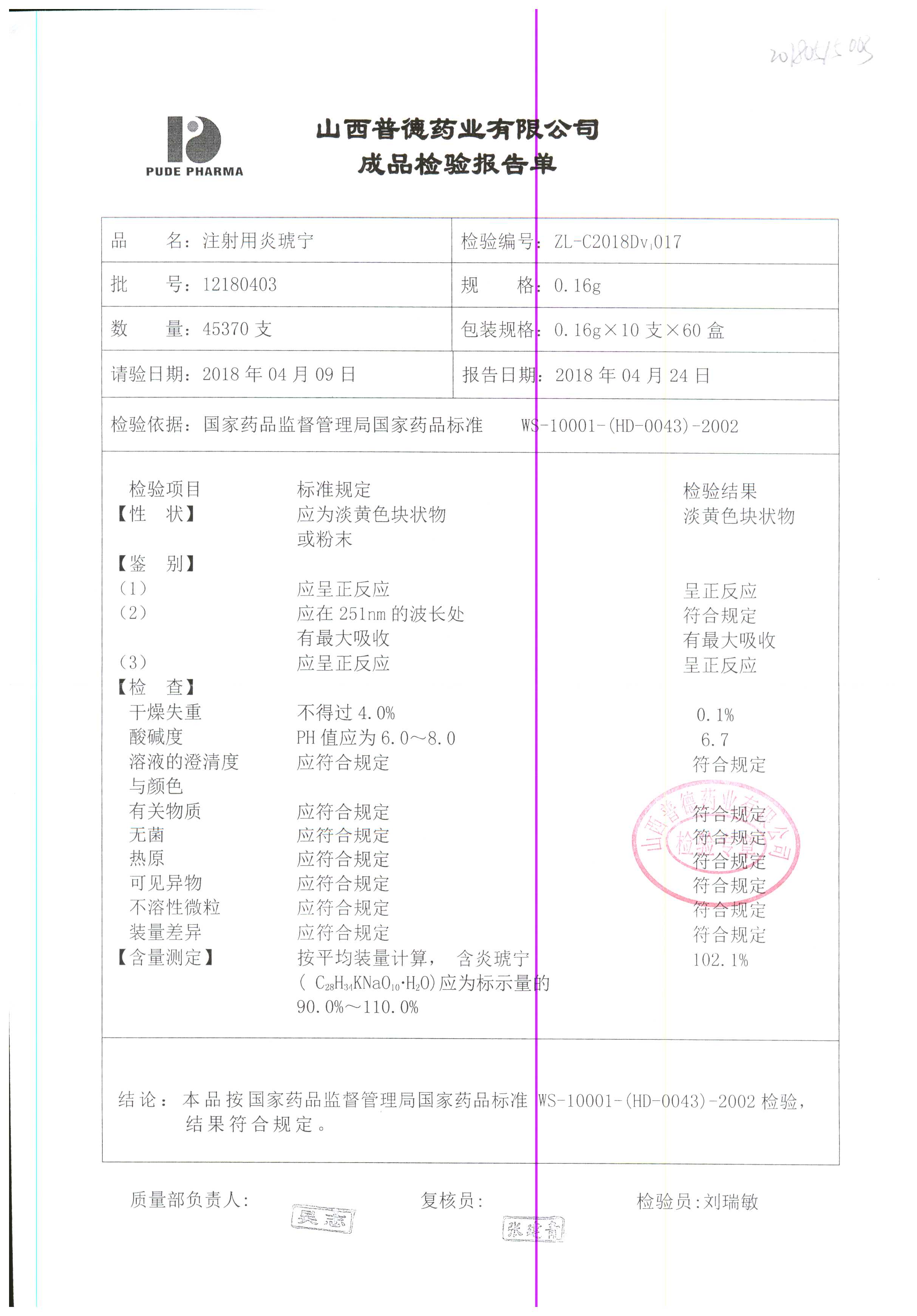 注射用炎琥寧 | 0.16g*10支 | 12180412 | 查看詳情 |