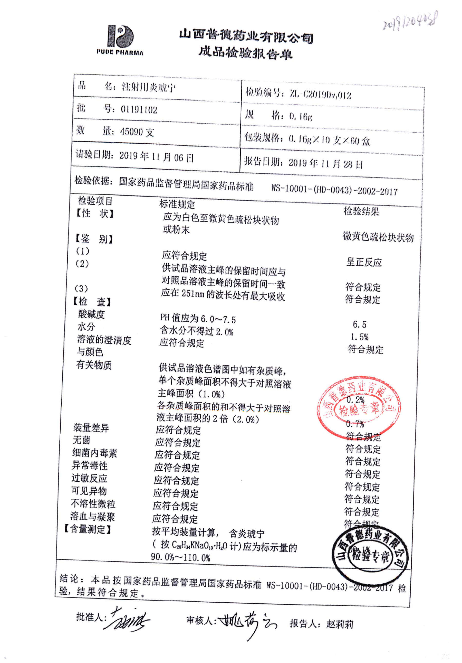 注射用炎琥寧 | 0.16g*10支 | 01191102 | 查看詳情 |