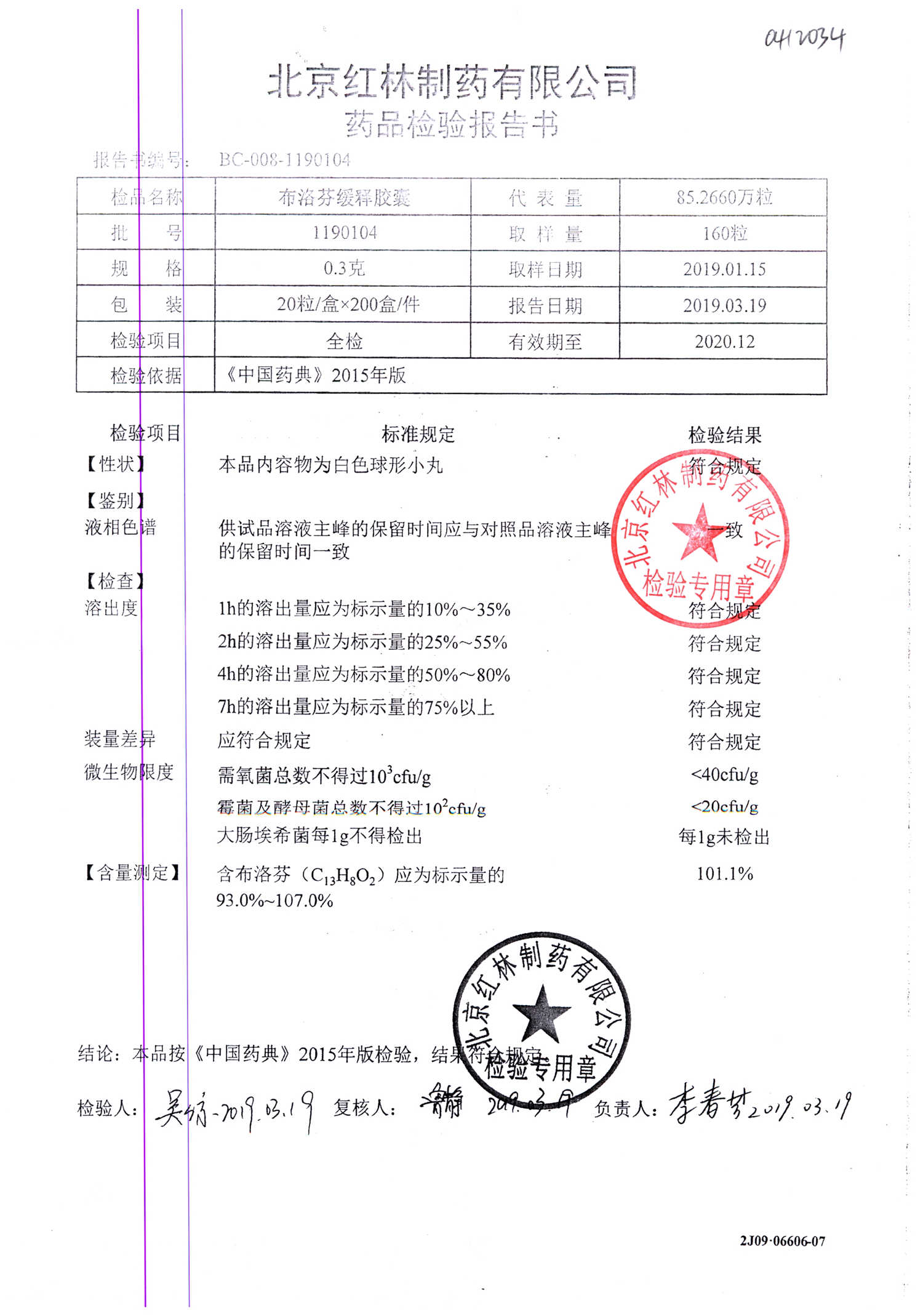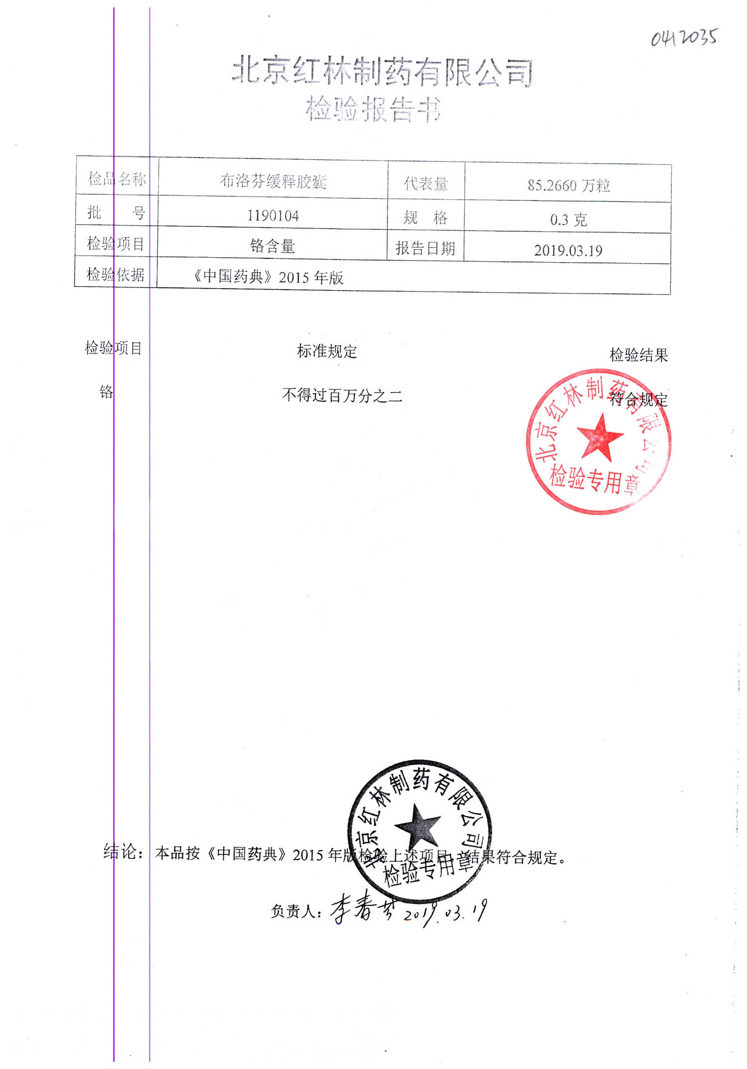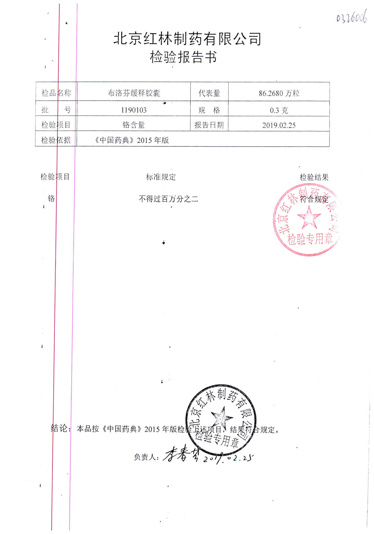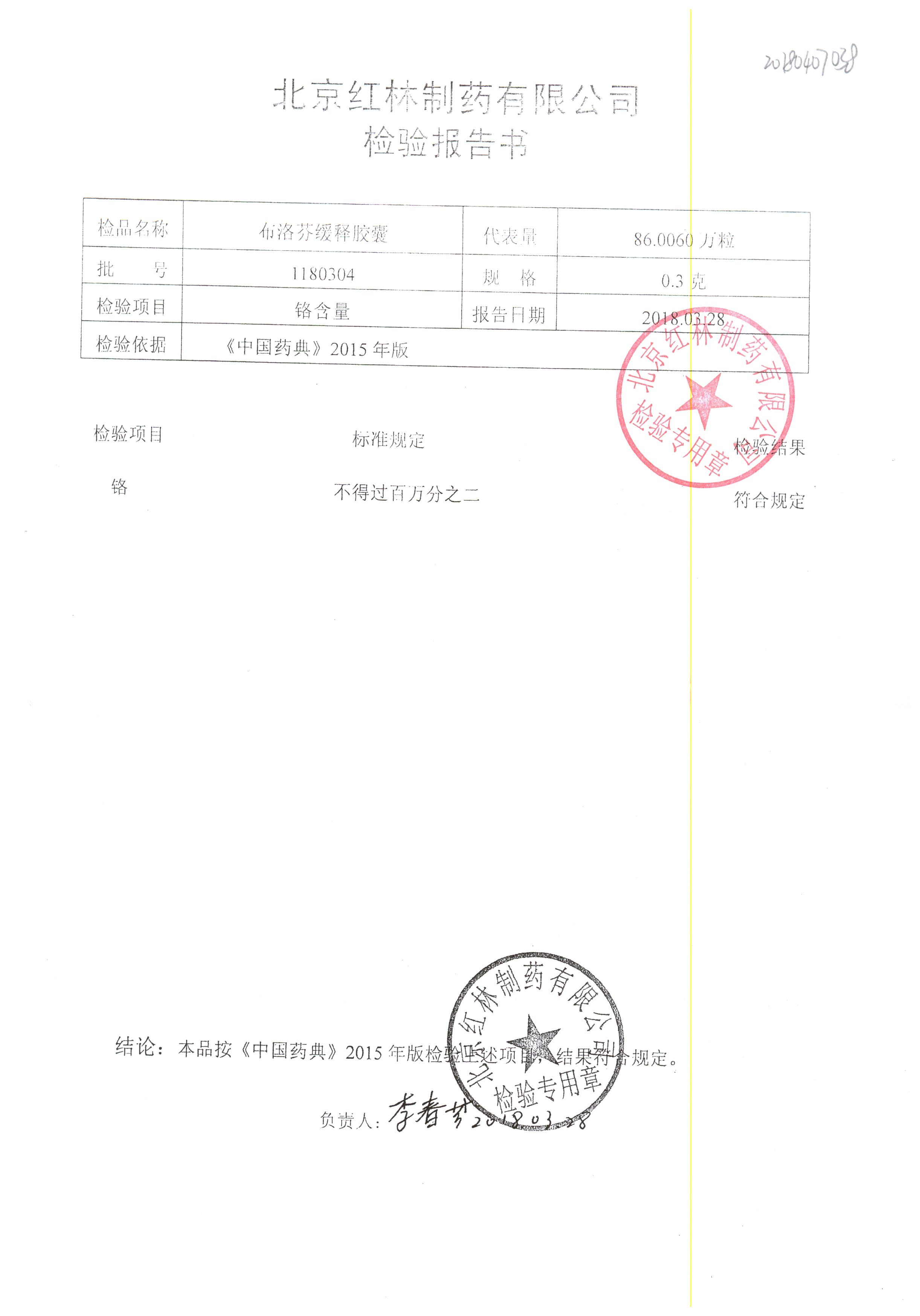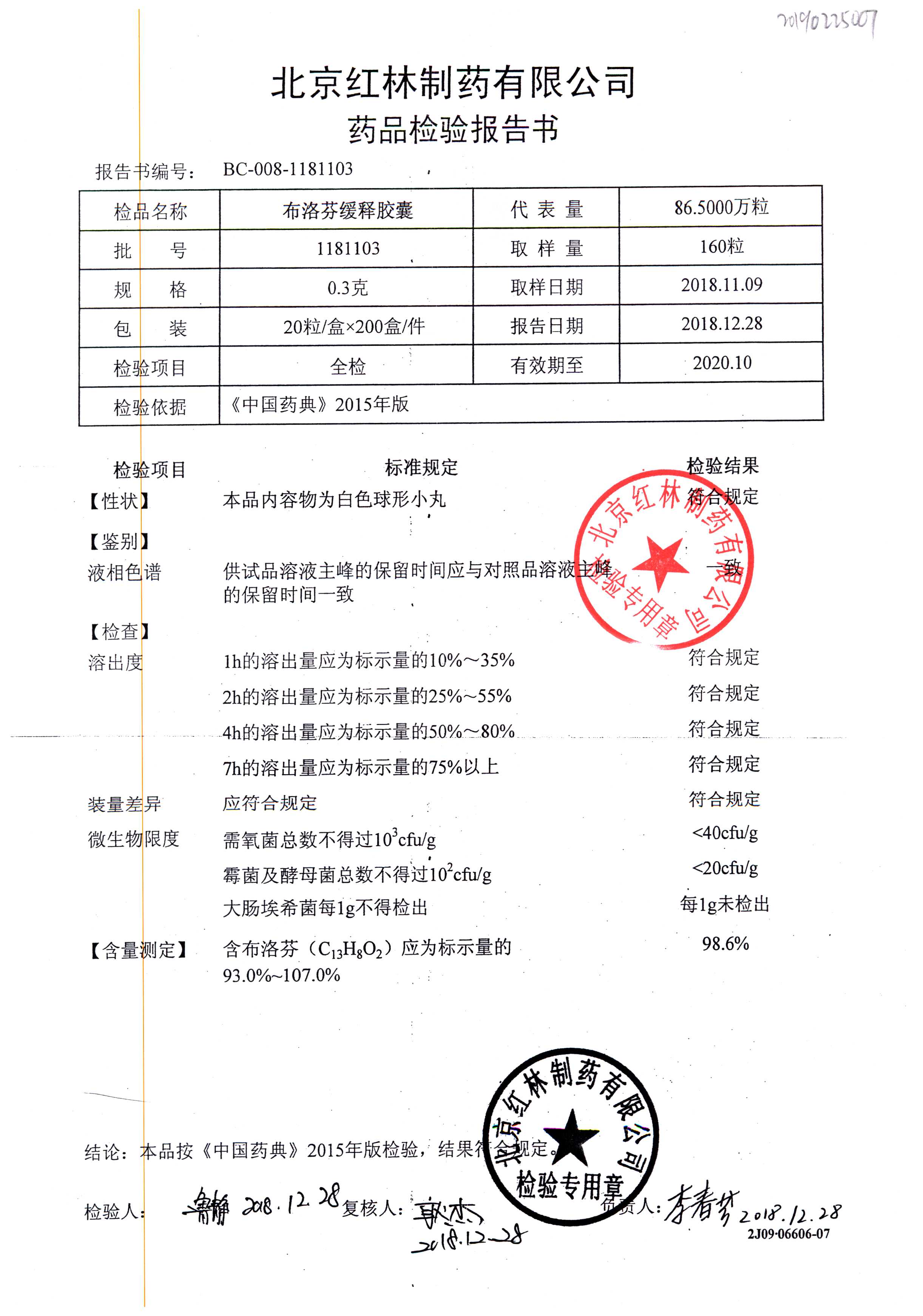 名稱 規(guī)格 批號(hào) 藥檢報(bào)告