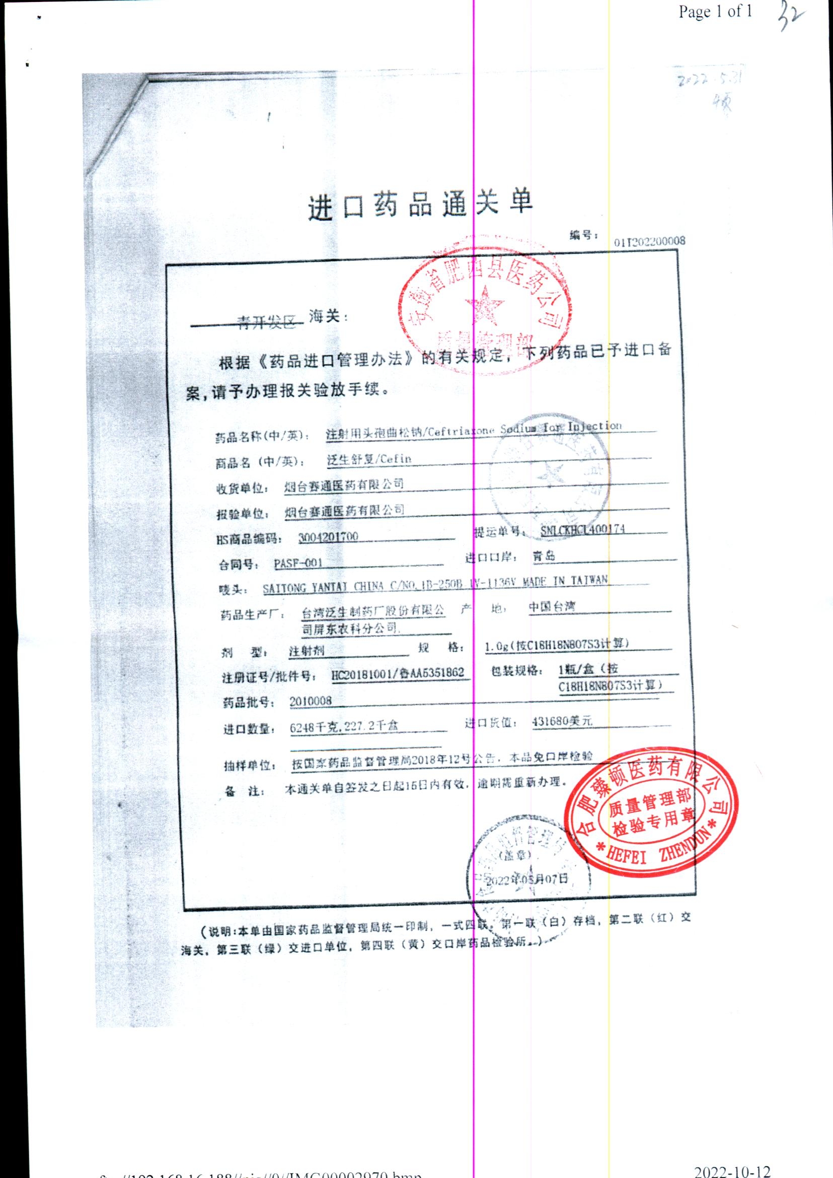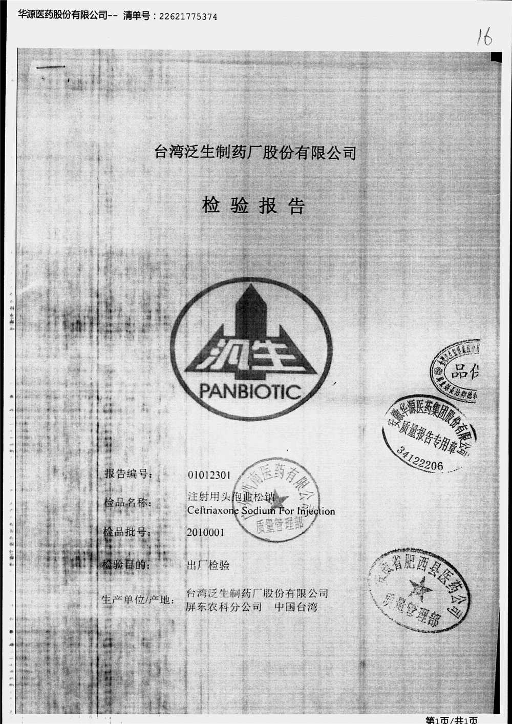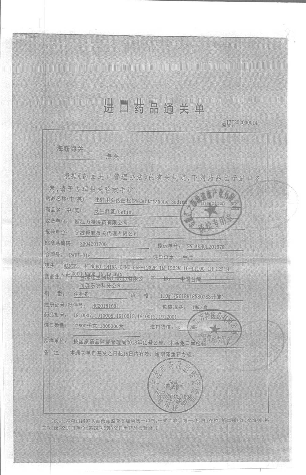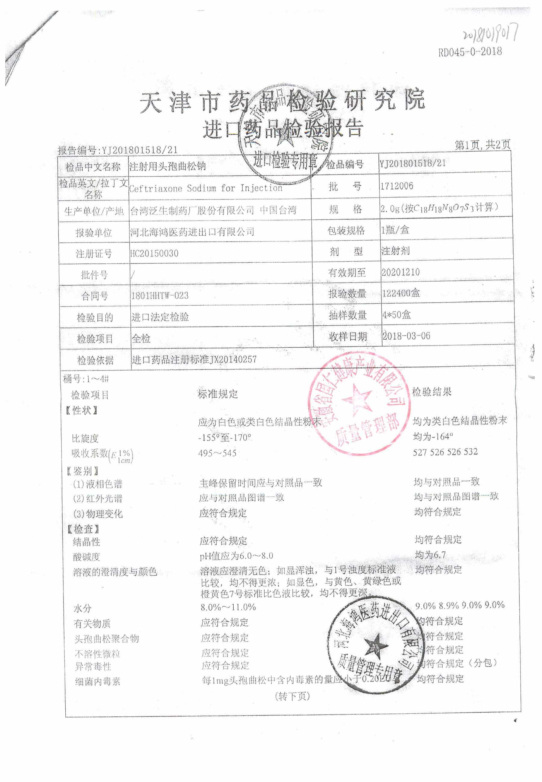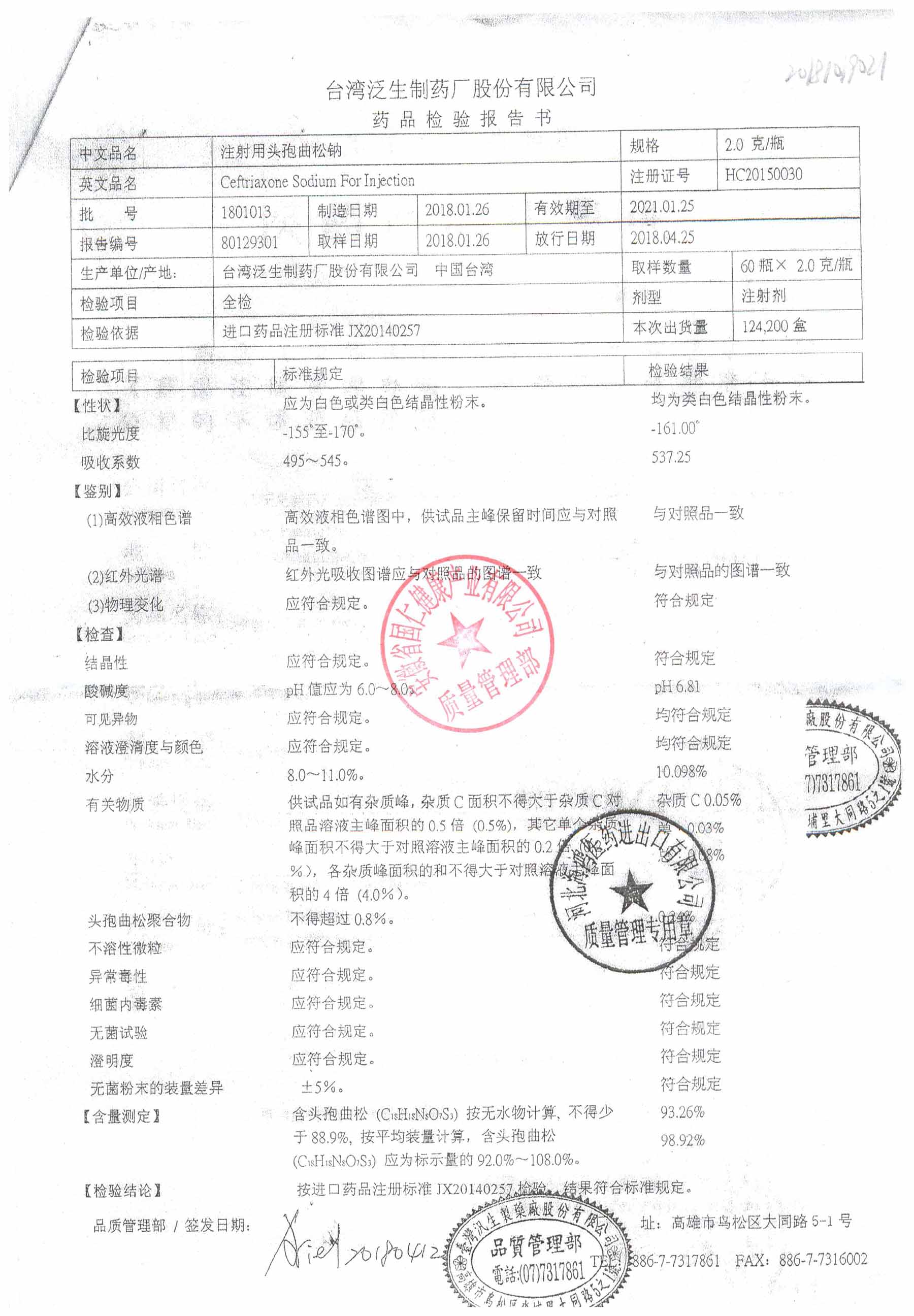 注射用頭孢曲松鈉 | 2.0g | 1712006(2/4) | 查看詳情 |