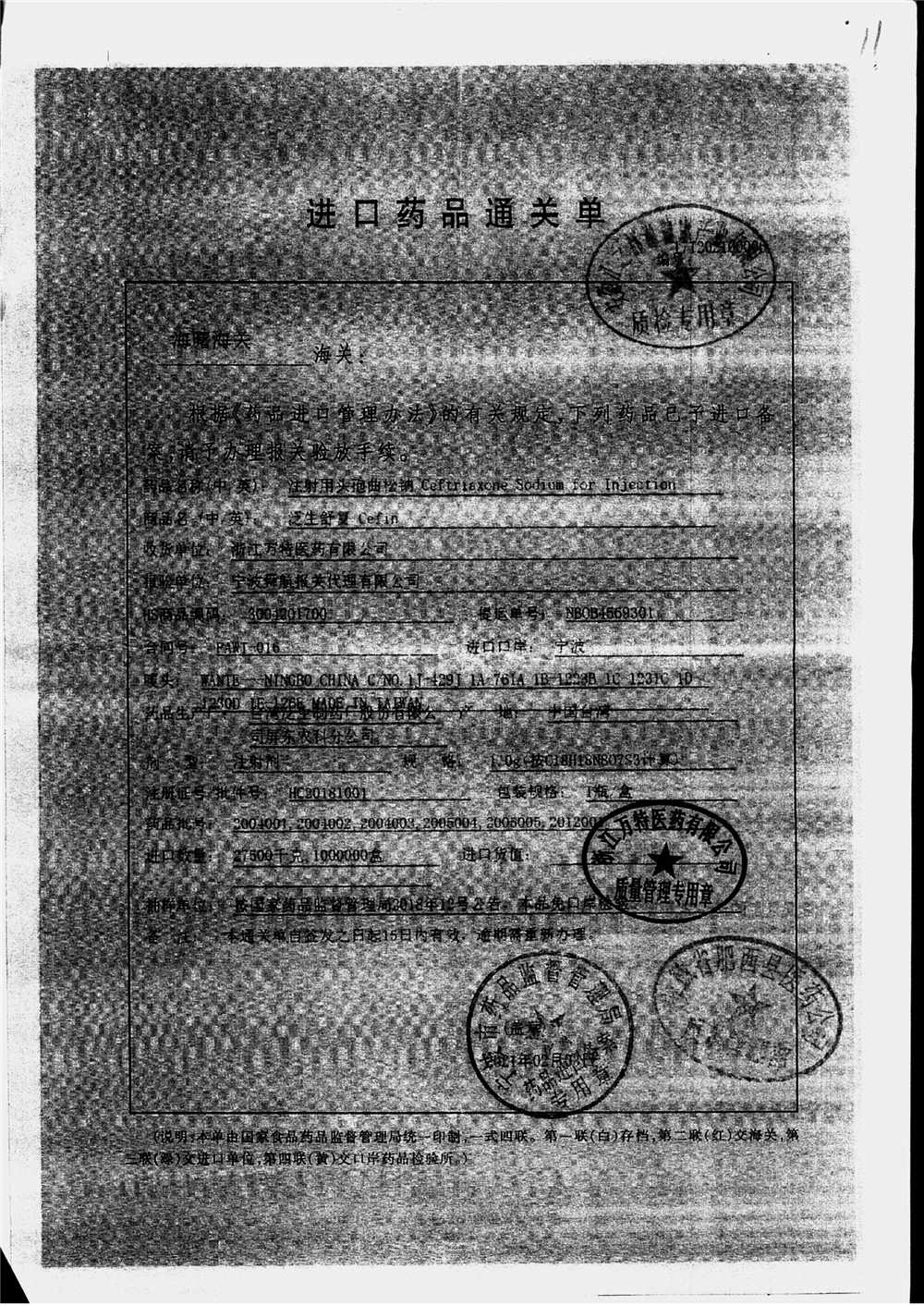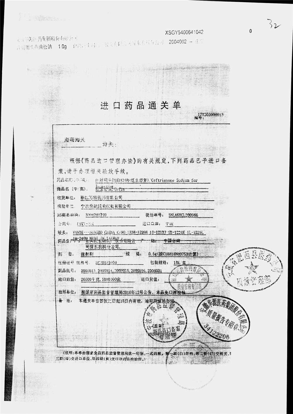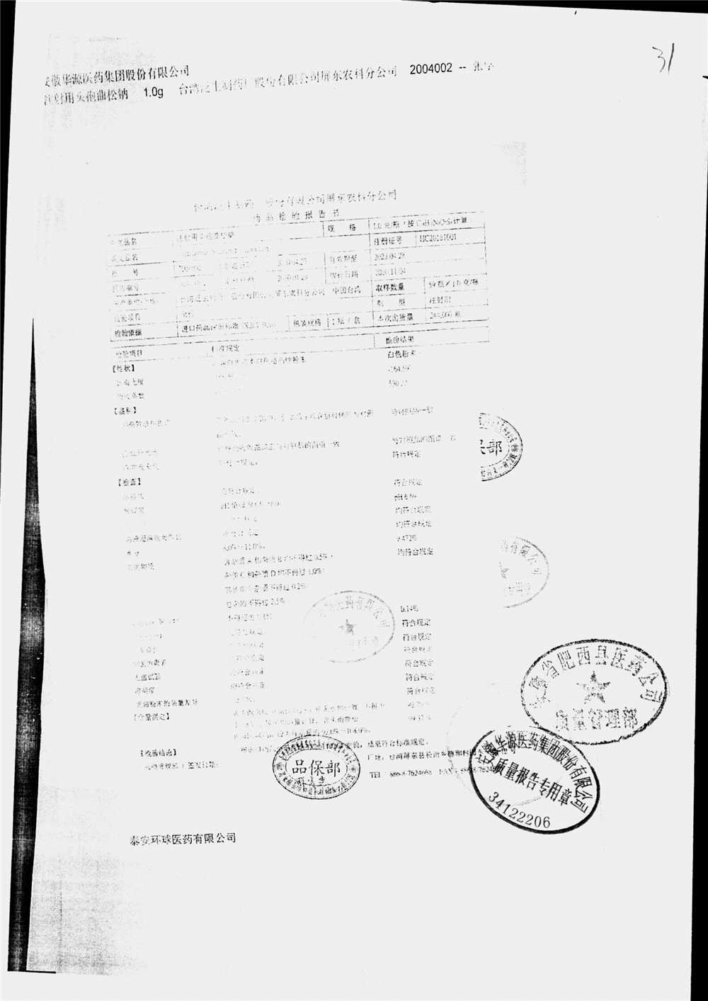注射用頭孢曲松鈉 | 2.0g | 2004002(2/6) | 查看詳情 |