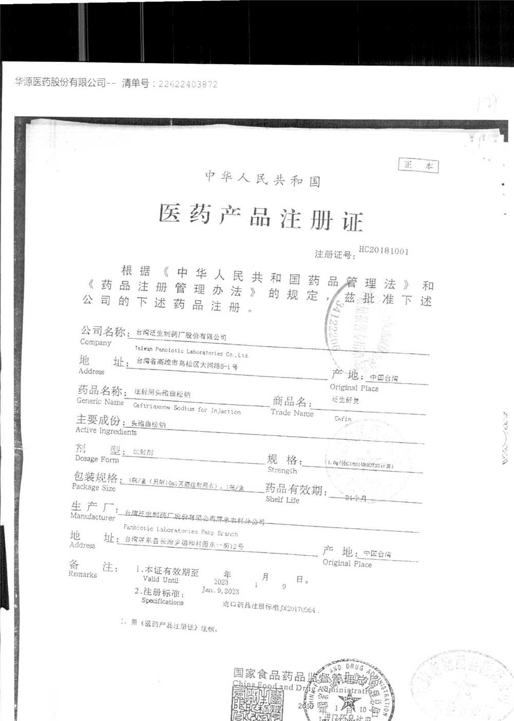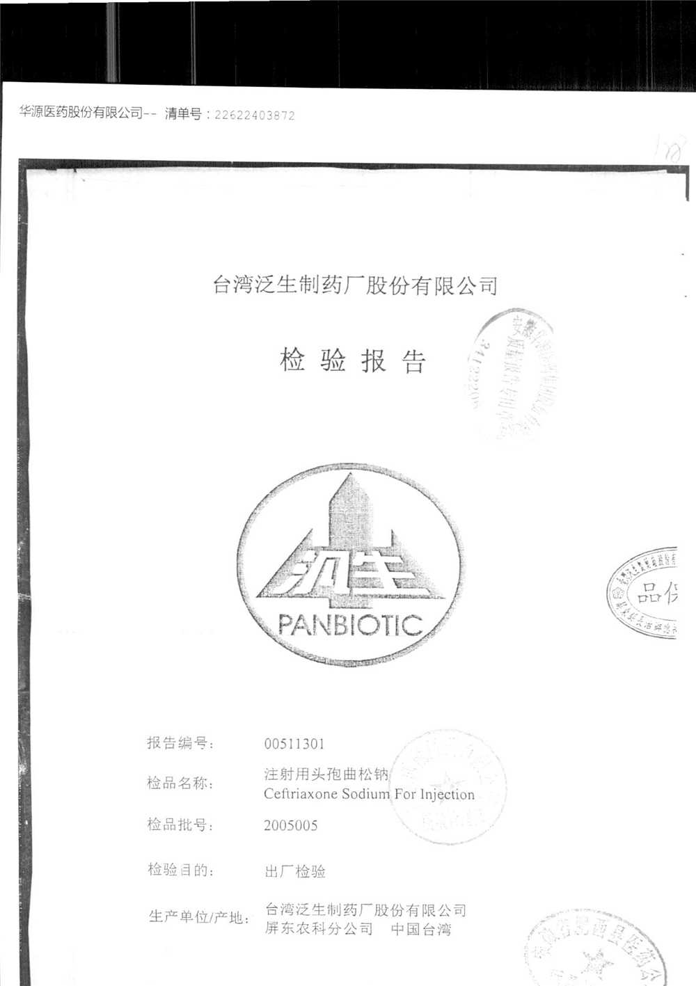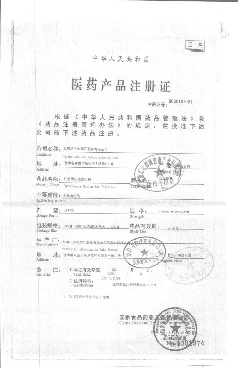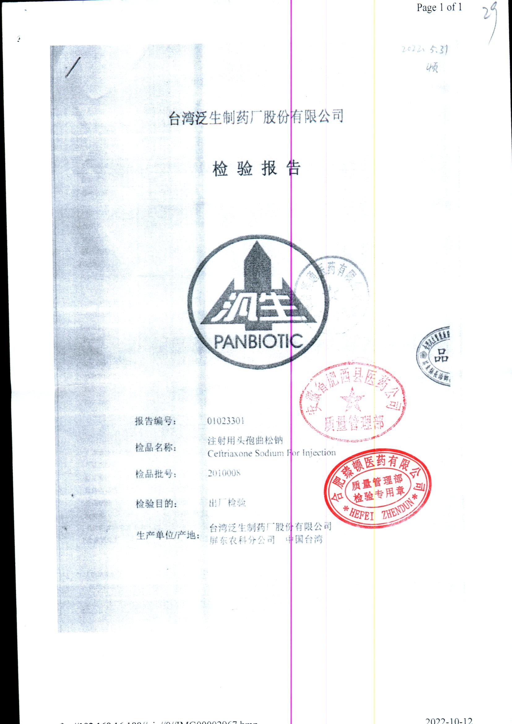 注射用頭孢曲松鈉 | 2.0g | 1801013(3/3) | 查看詳情 |