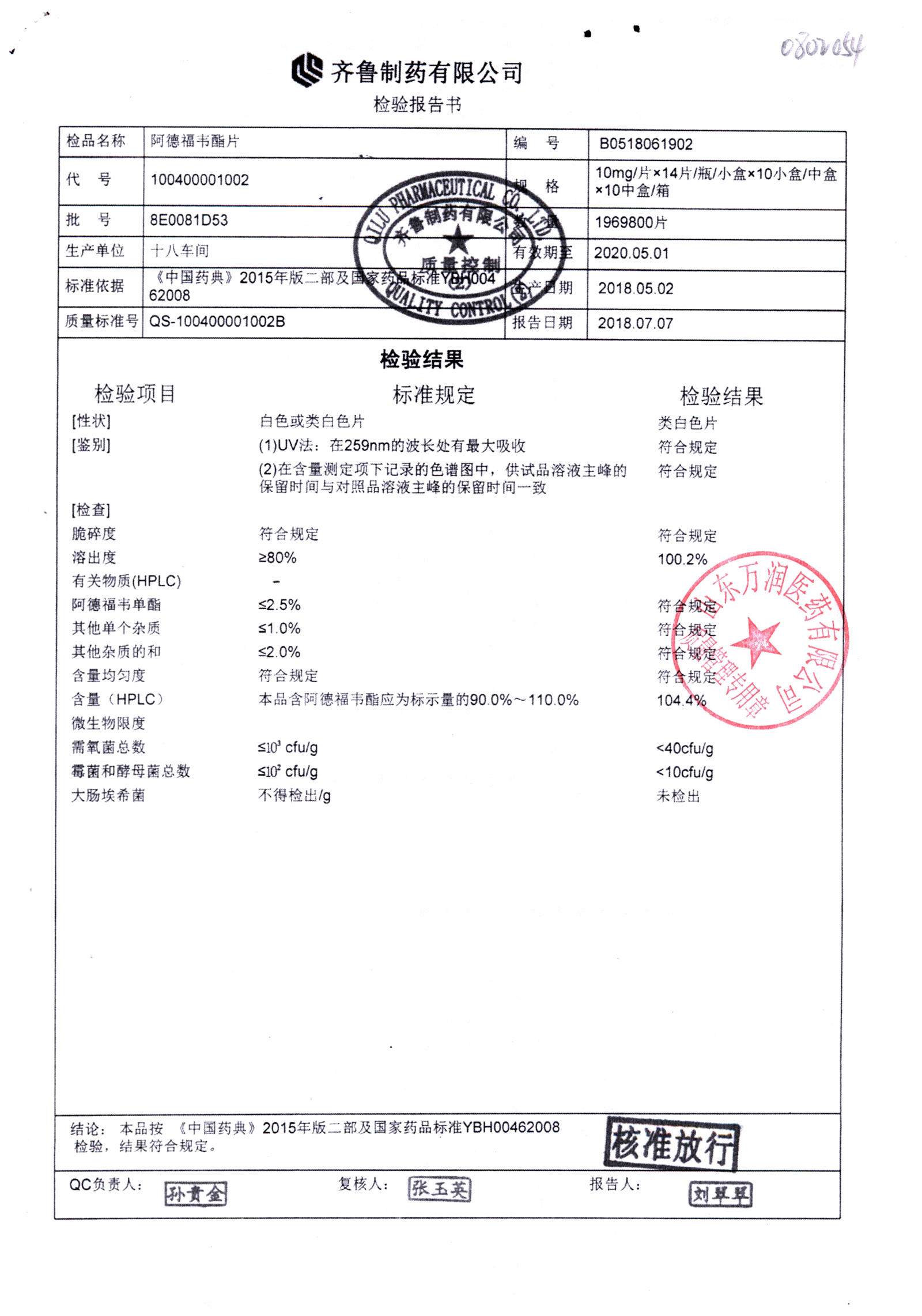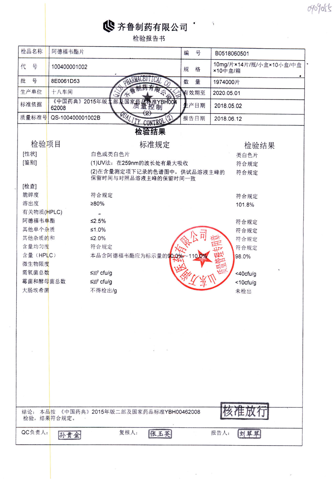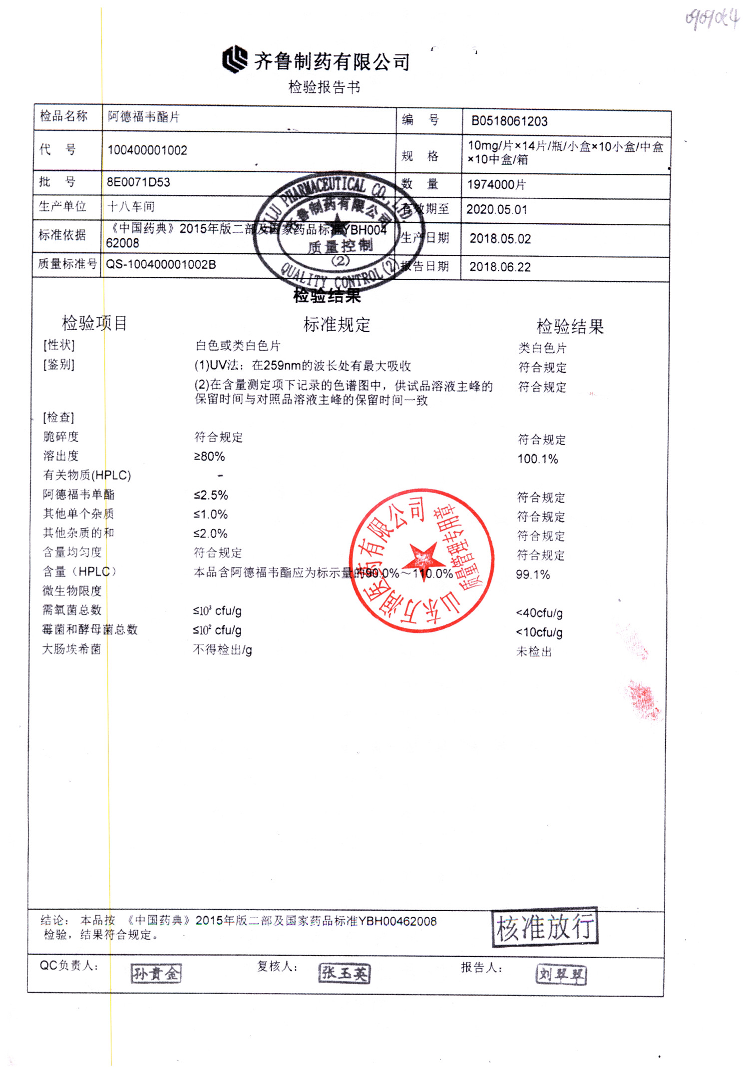 名稱 | 規(guī)格 | 批號(hào) | 藥檢報(bào)告 |