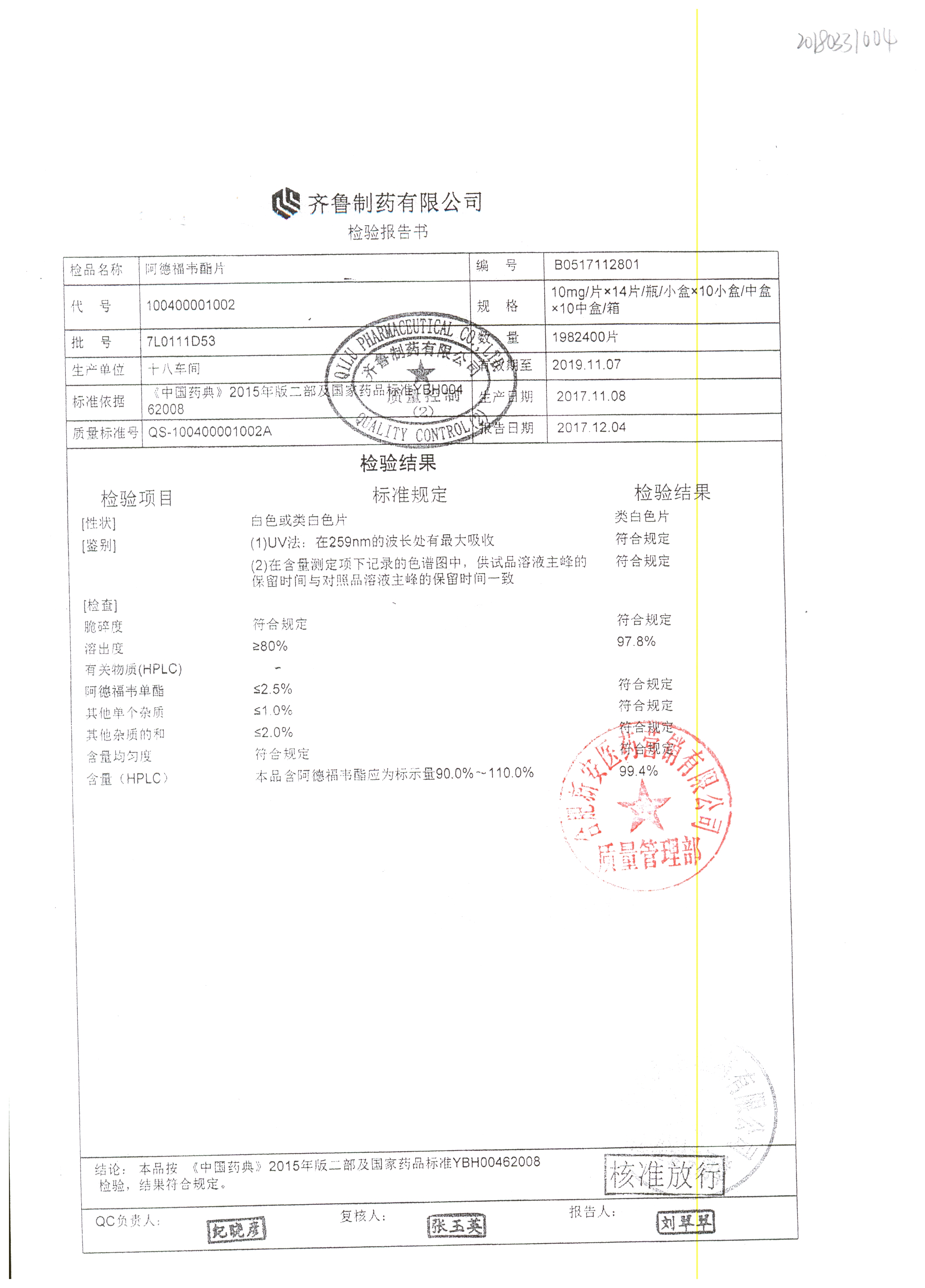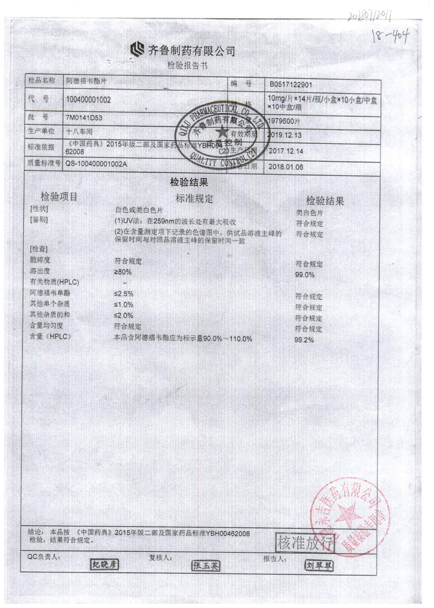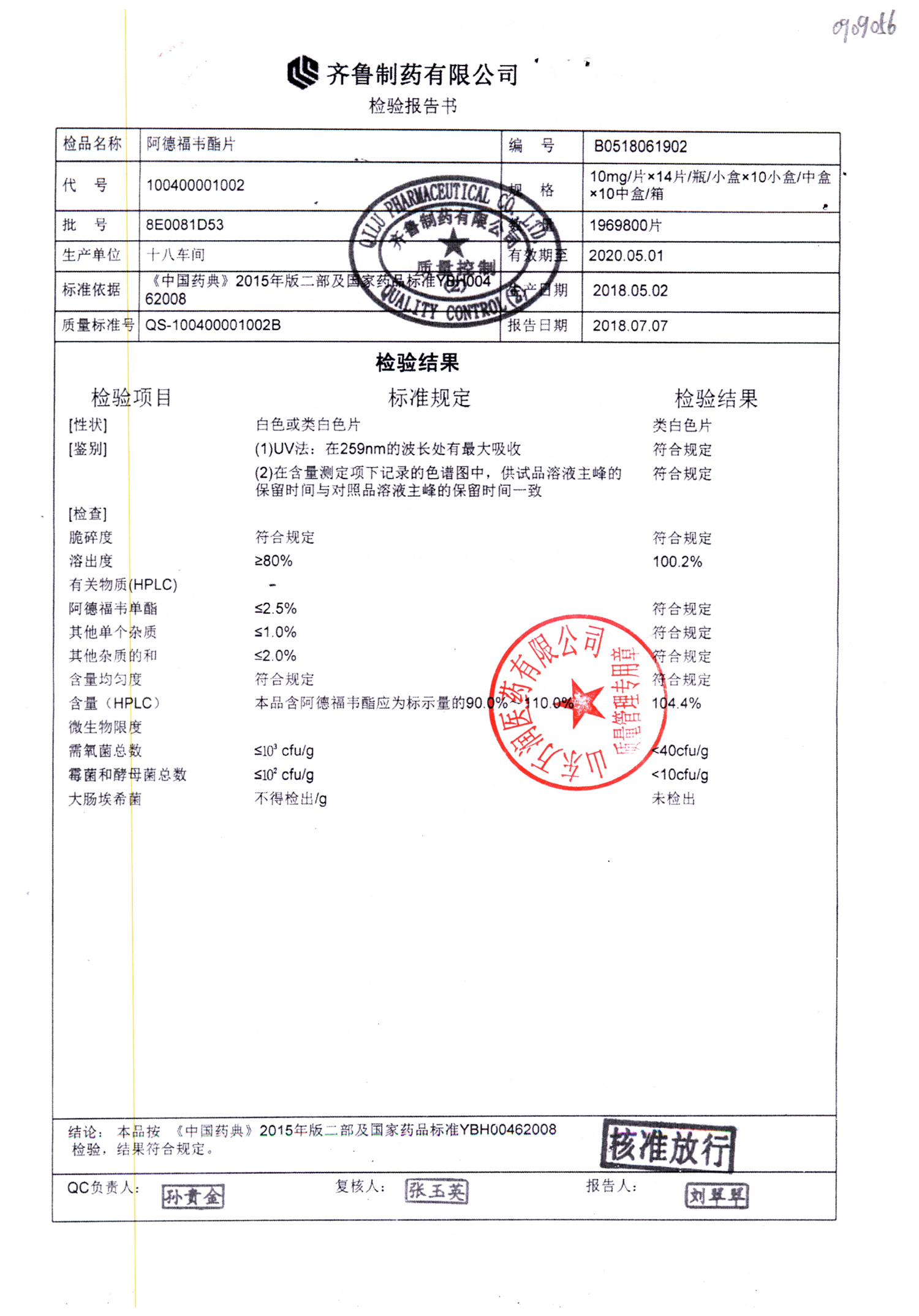 名稱 | 規(guī)格 | 批號(hào) | 藥檢報(bào)告 |