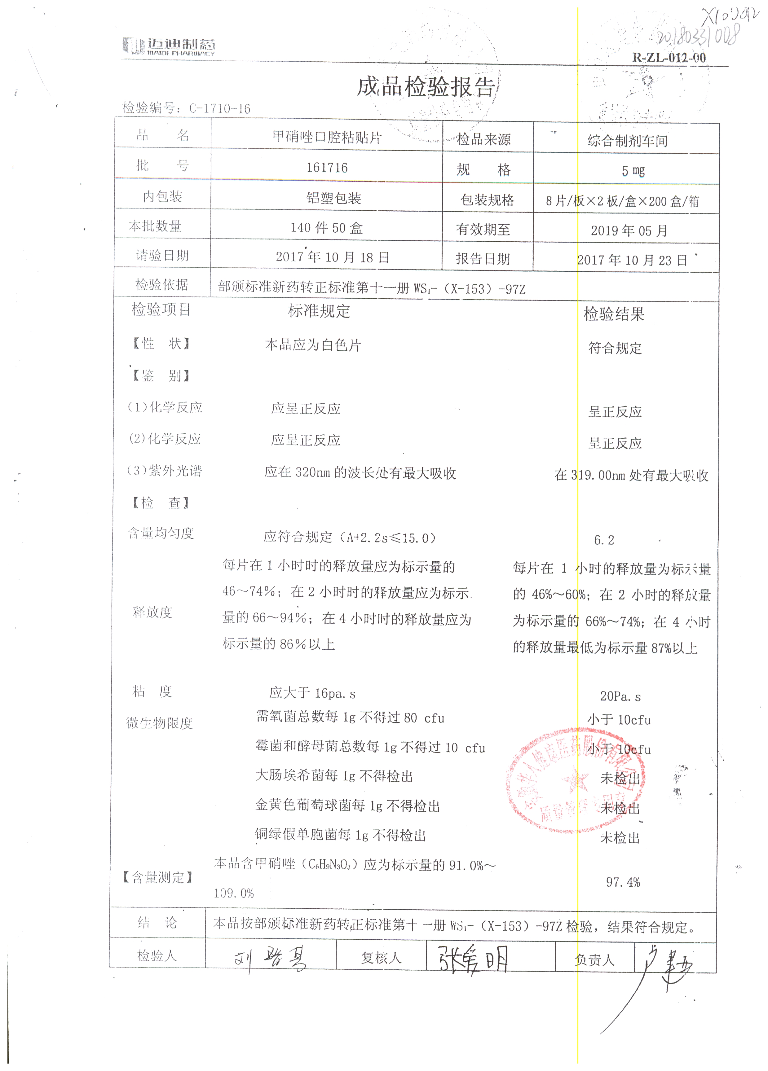甲硝唑口腔粘貼片 | 5mg*16片 | 161810 | 查看詳情 |