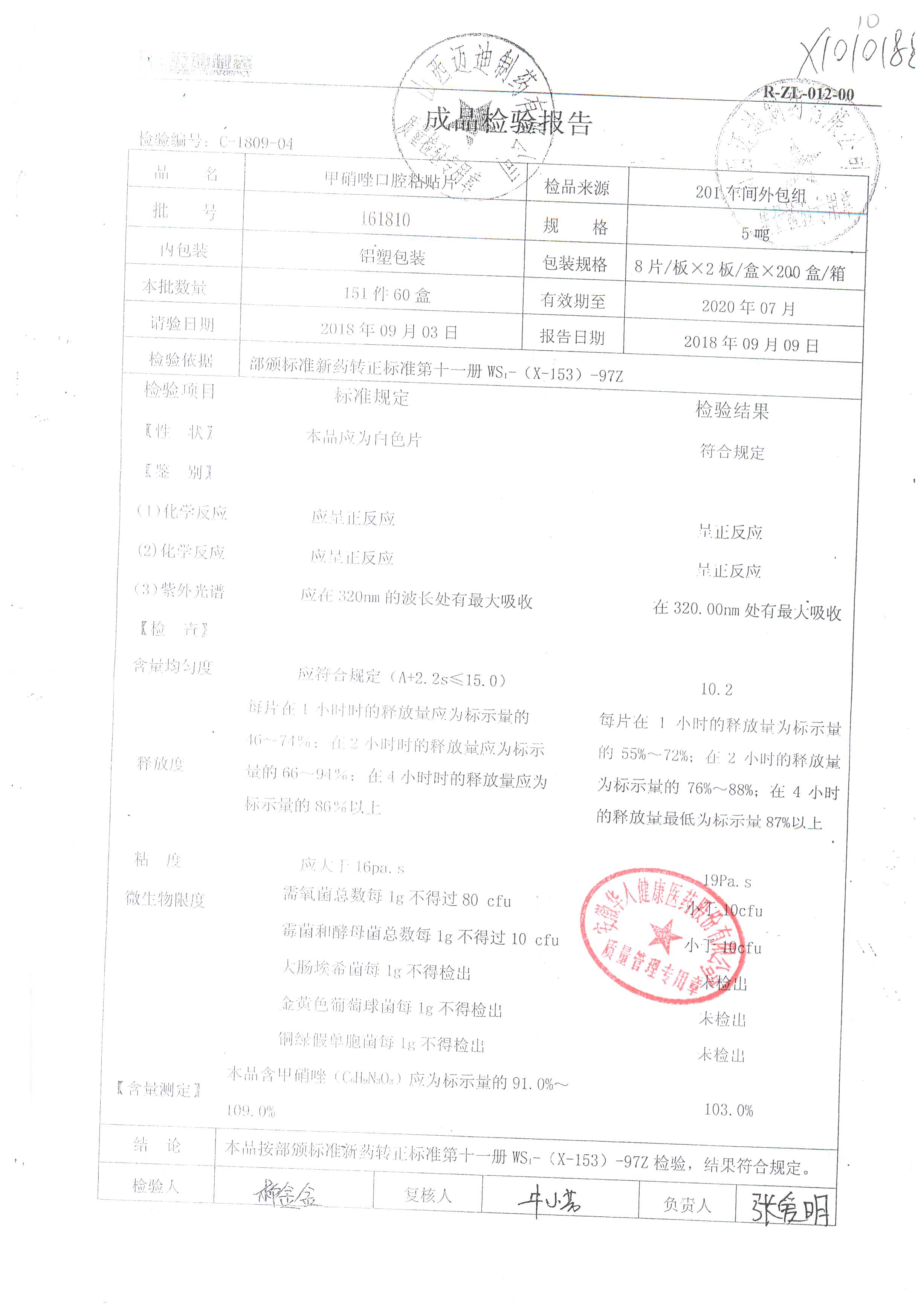 甲硝唑口腔粘貼片 | 5mg*16片 | 161903 | 查看詳情 |