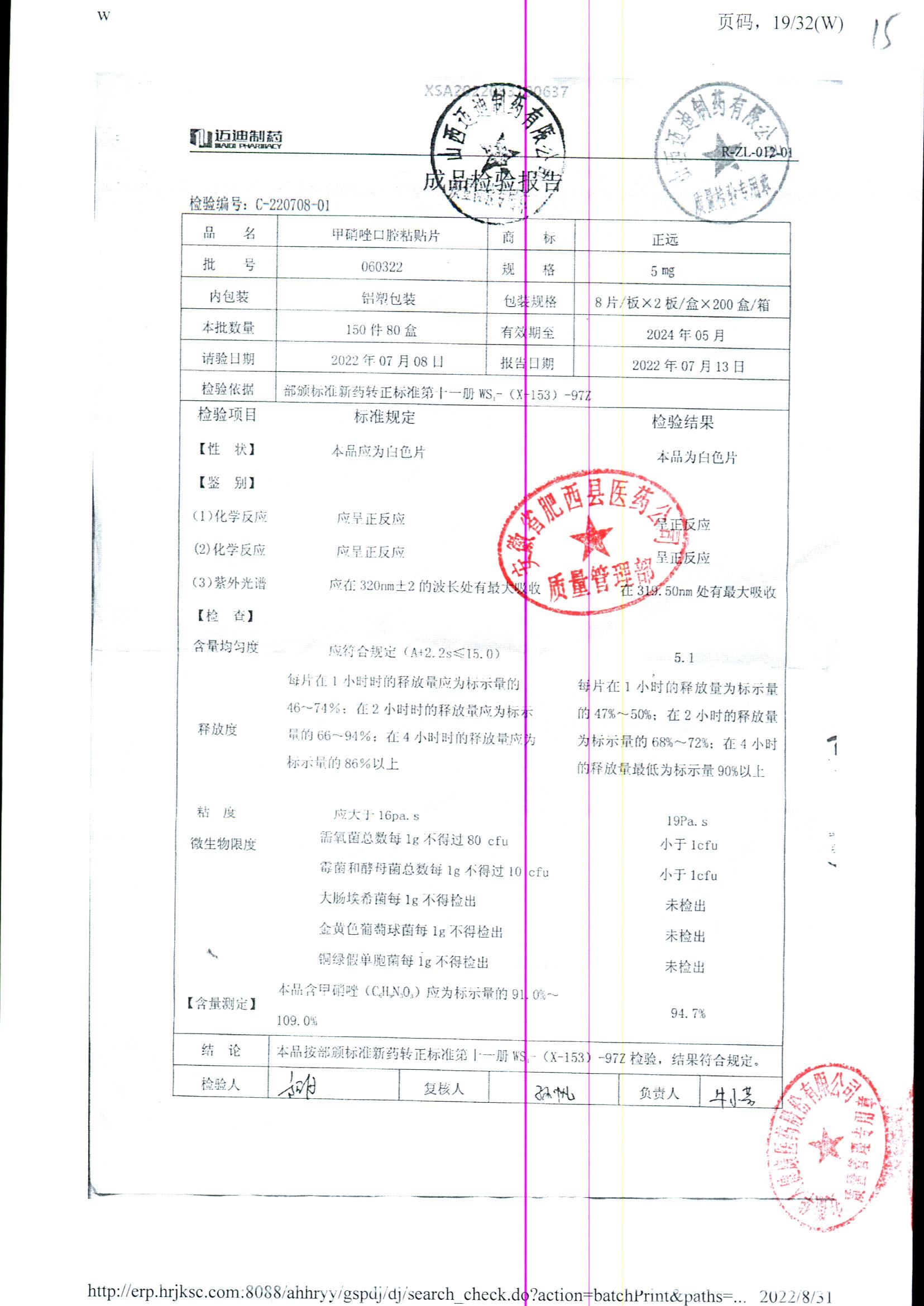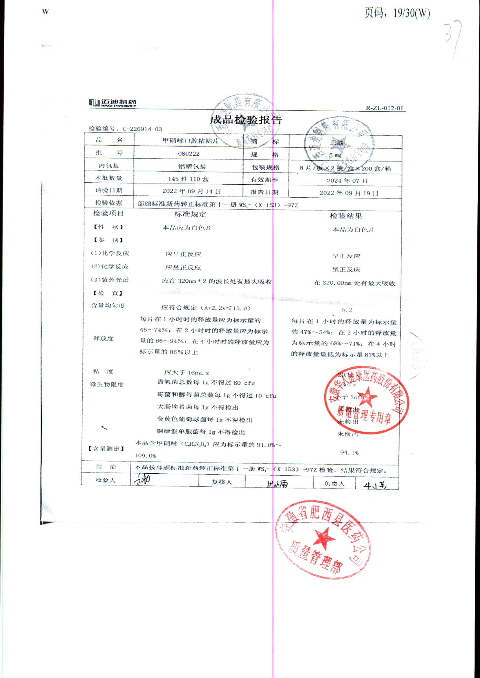甲硝唑口腔粘貼片 | 5mg*16片 | 161807 | 查看詳情 |
