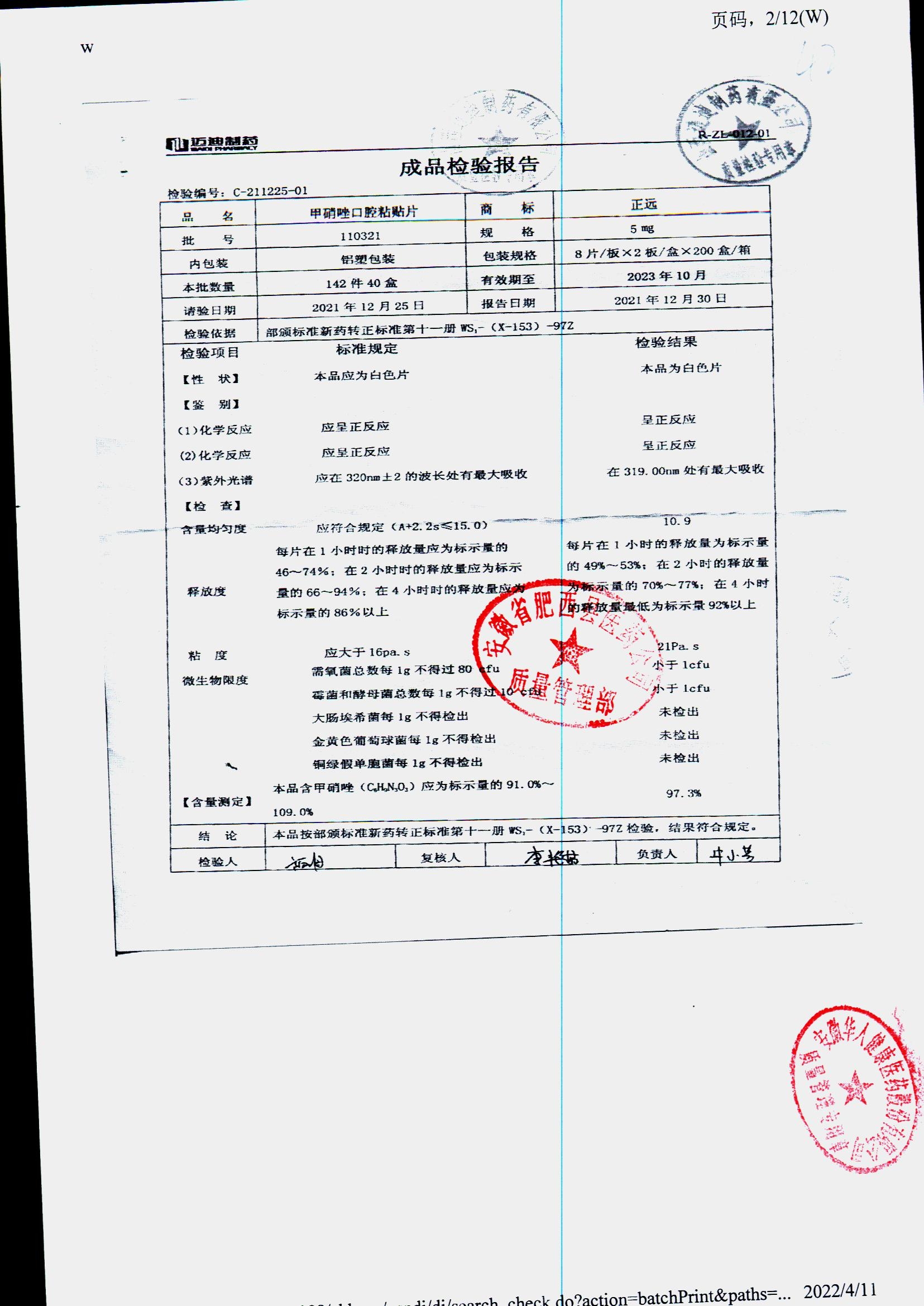 甲硝唑口腔粘貼片 | 5mg*16片 | 110321 | 查看詳情 |