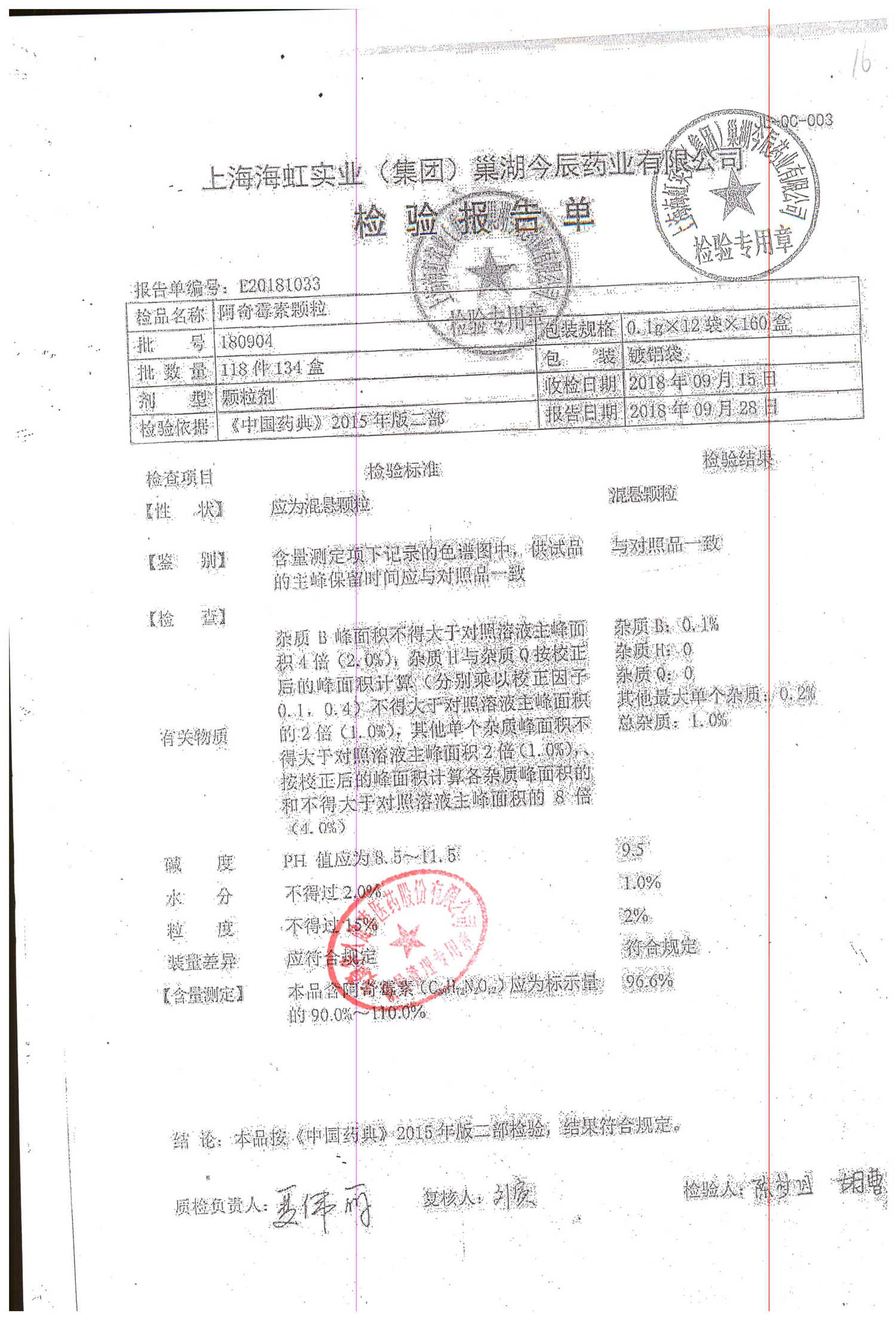 阿奇霉素顆粒 0.1g-12袋 180813 查看詳情
