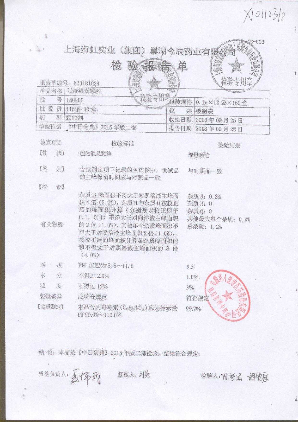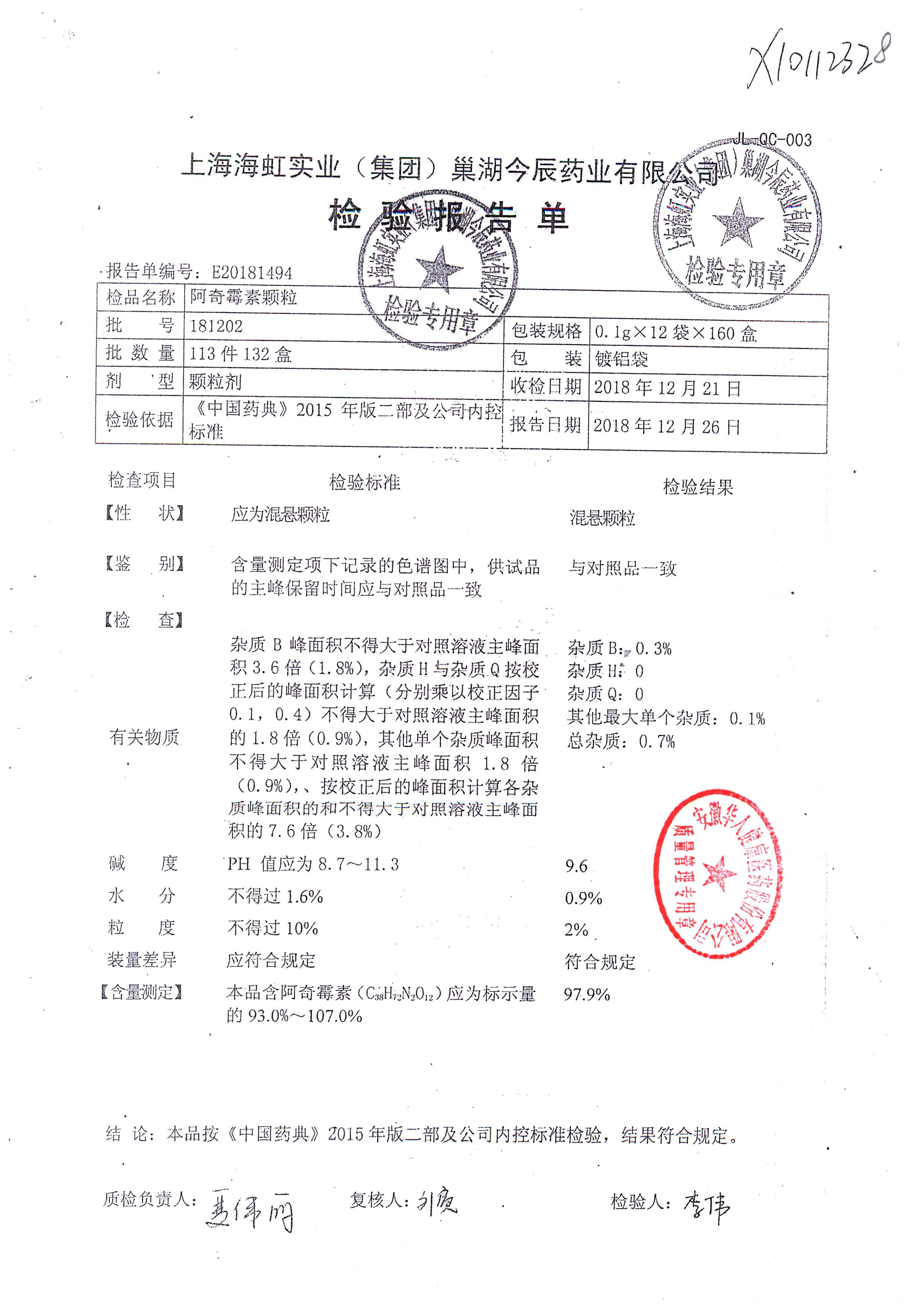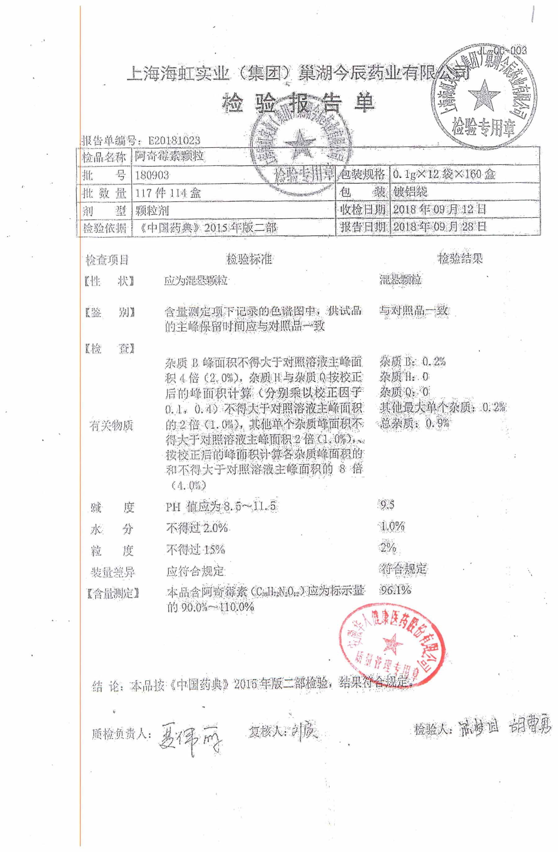 阿奇霉素顆粒 0.1g-12袋 180903 查看詳情
