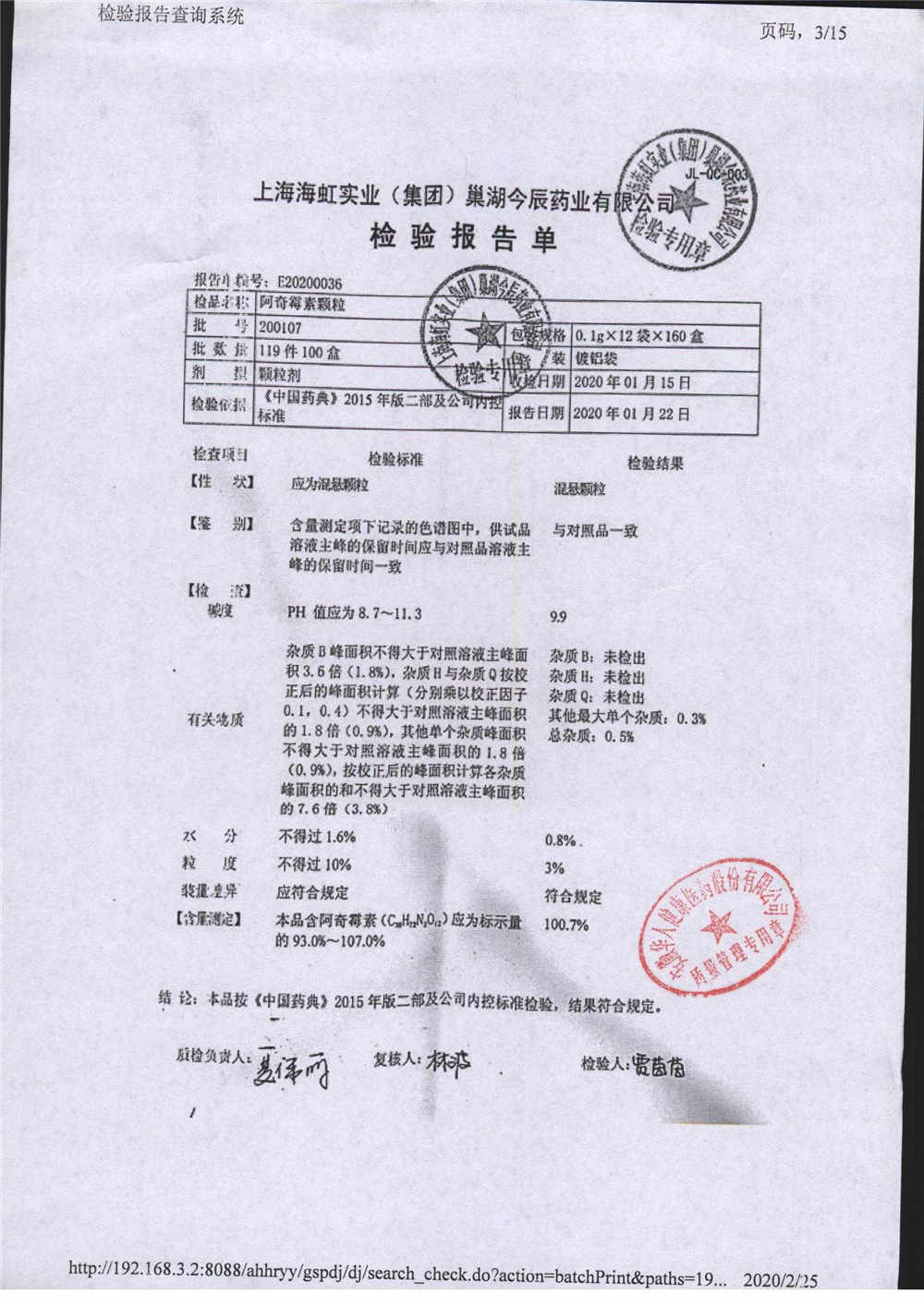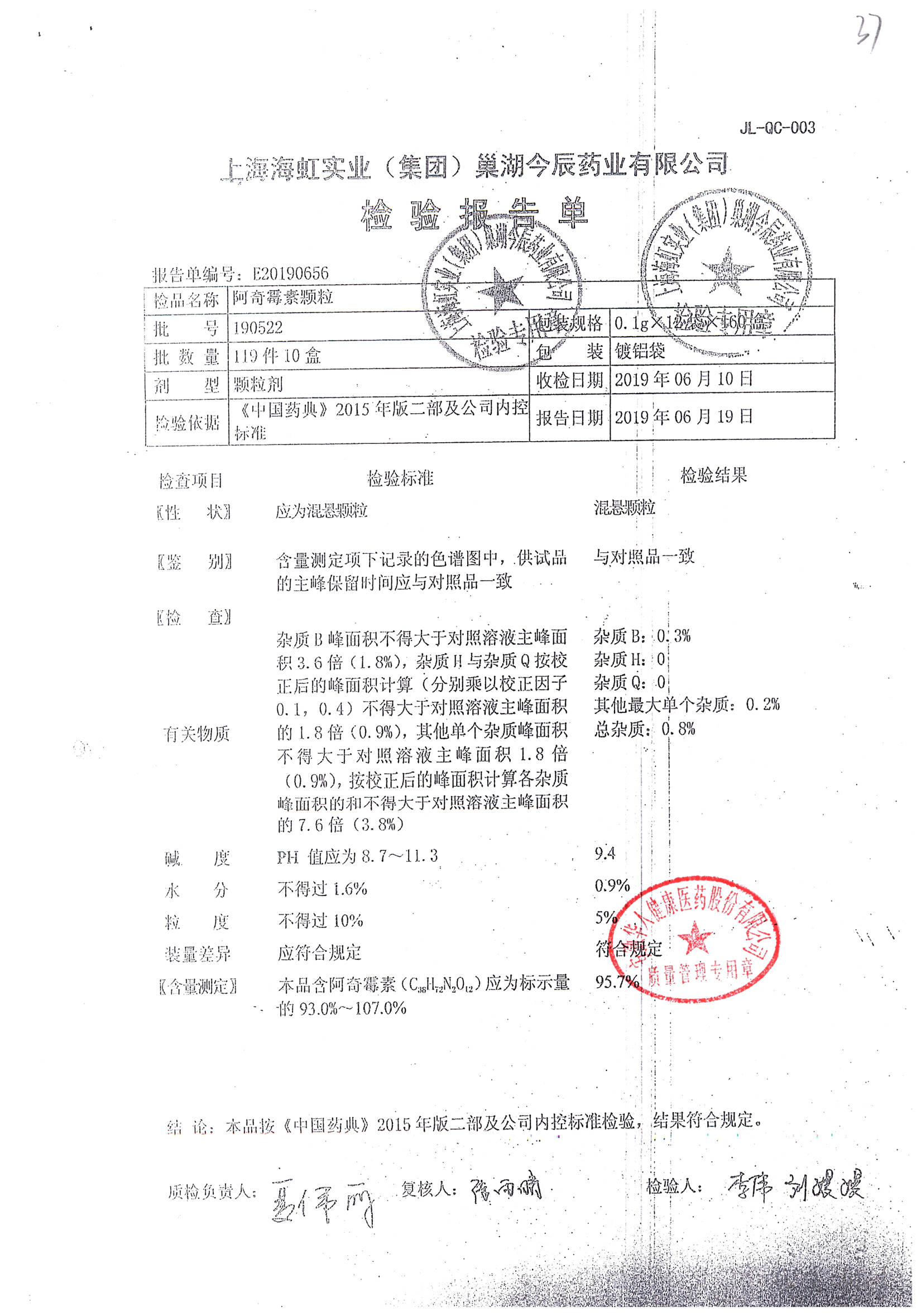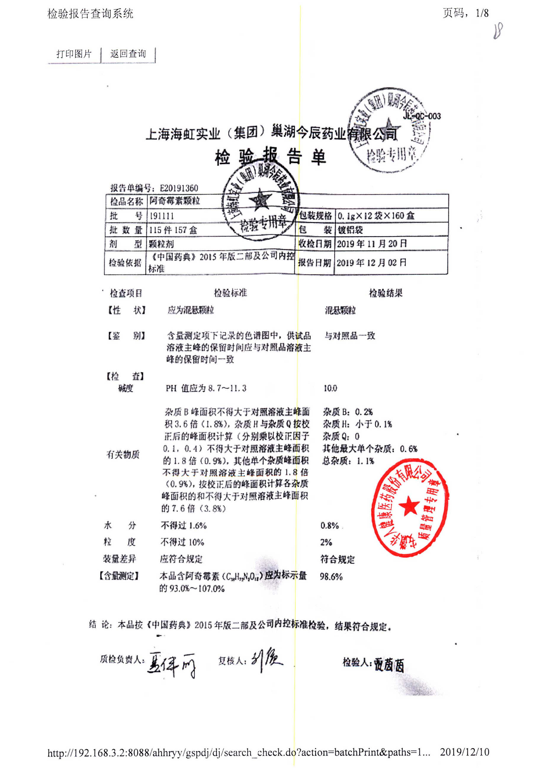 阿奇霉素顆粒 0.1g-12袋 191113 查看詳情