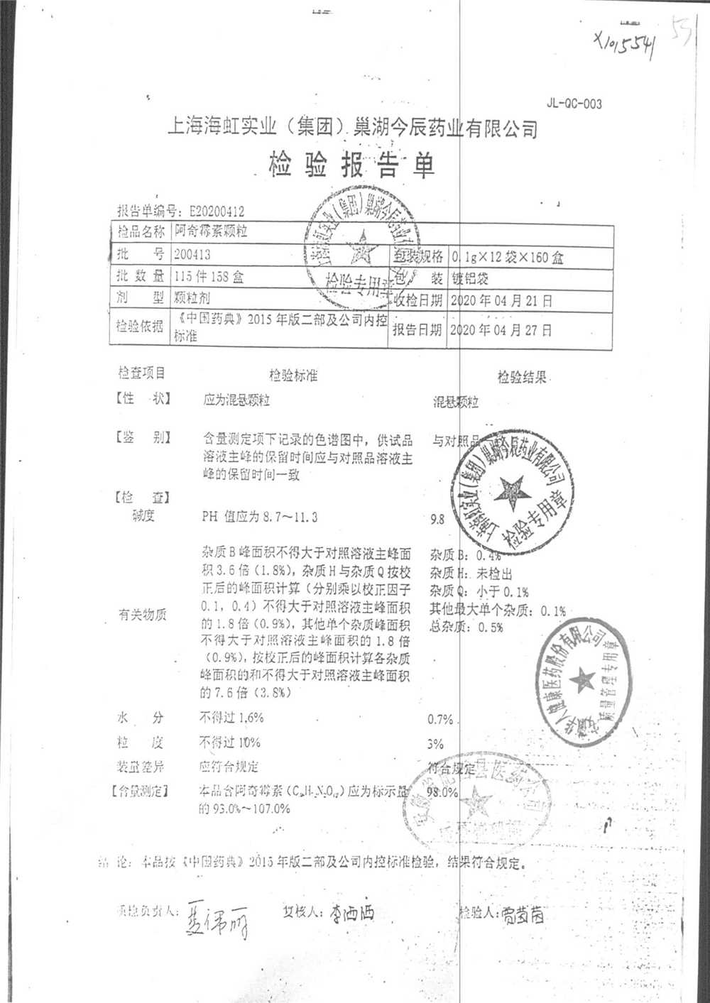 阿奇霉素顆粒 0.1g-12袋 200414 查看詳情