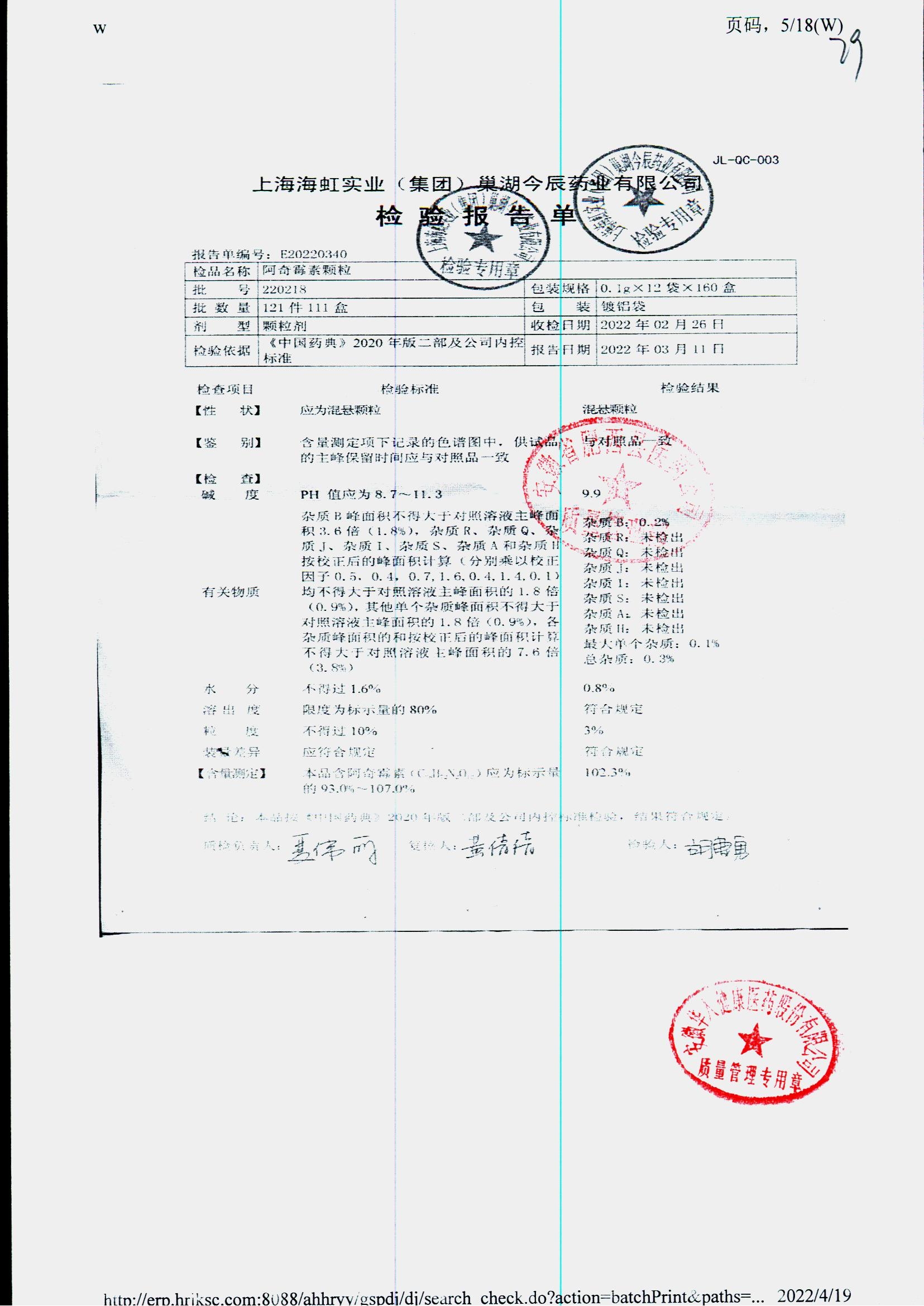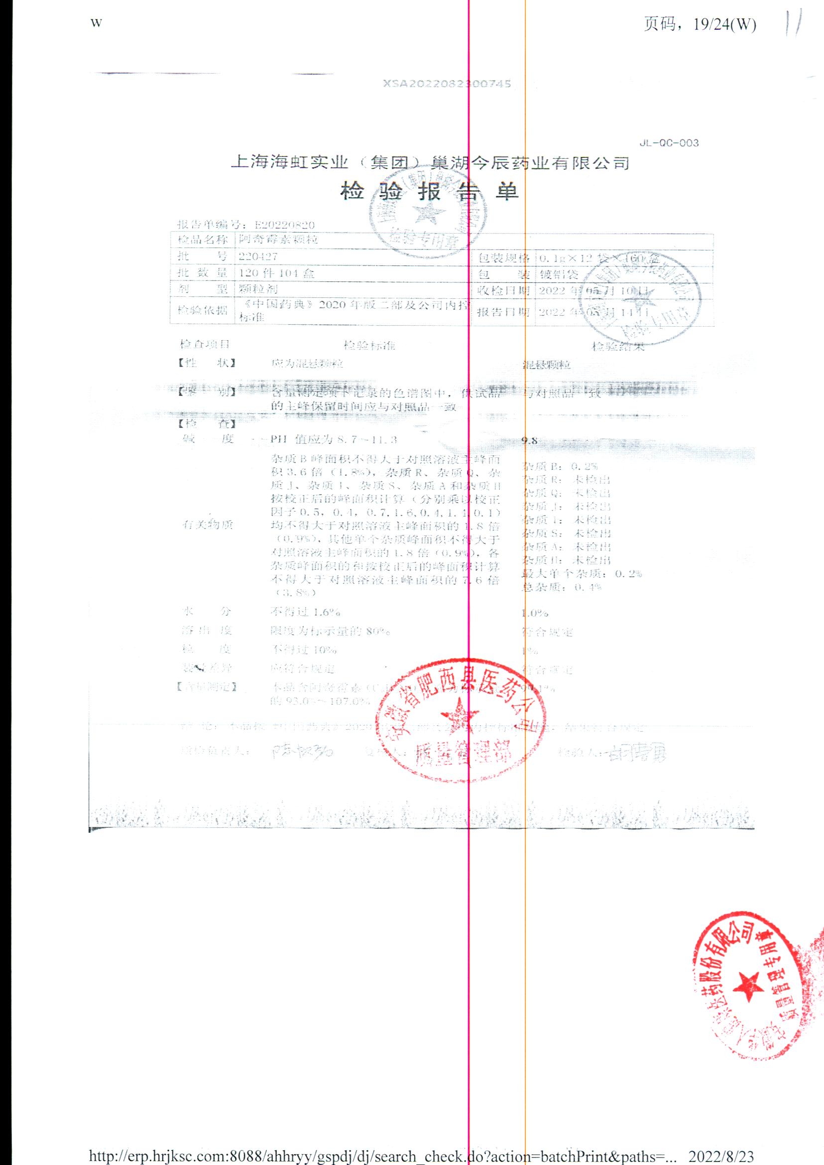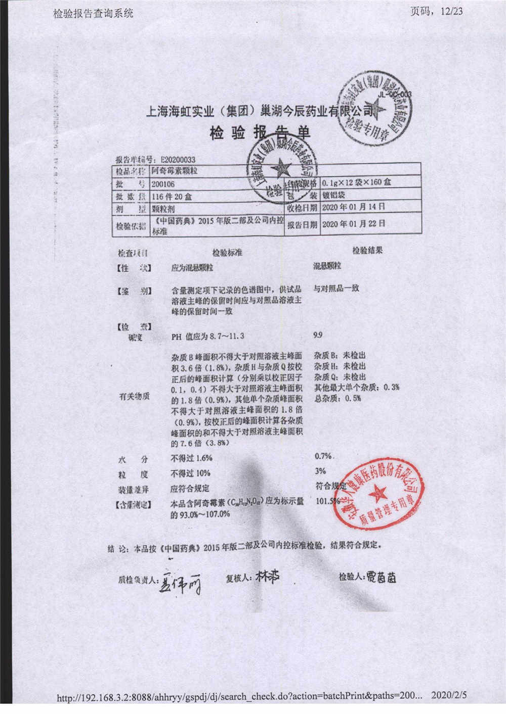 阿奇霉素顆粒 0.1g-12袋 190522 查看詳情