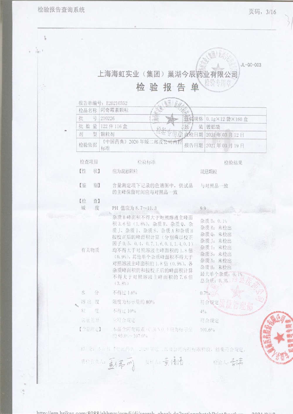 阿奇霉素顆粒 0.1g-12袋 210301 查看詳情