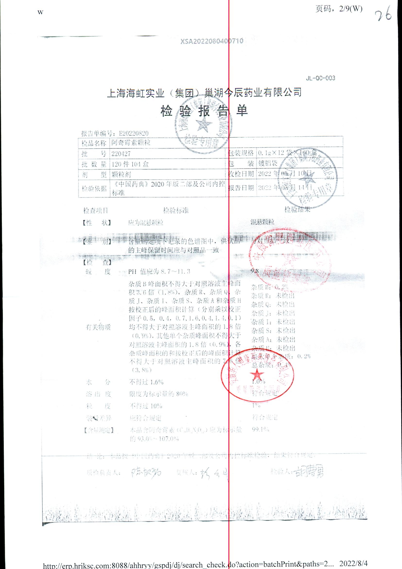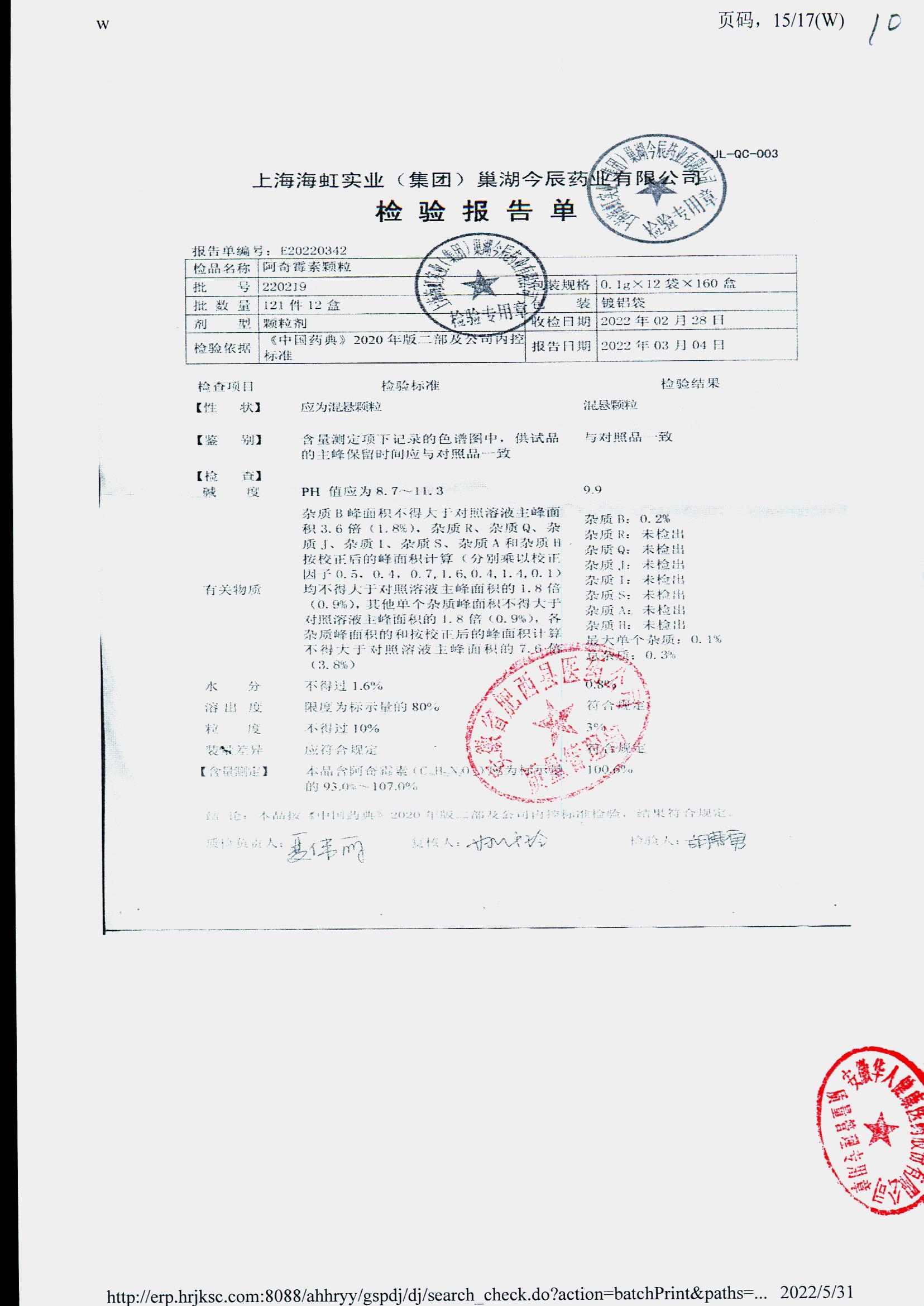 阿奇霉素顆粒 0.1g-12袋 220208 查看詳情