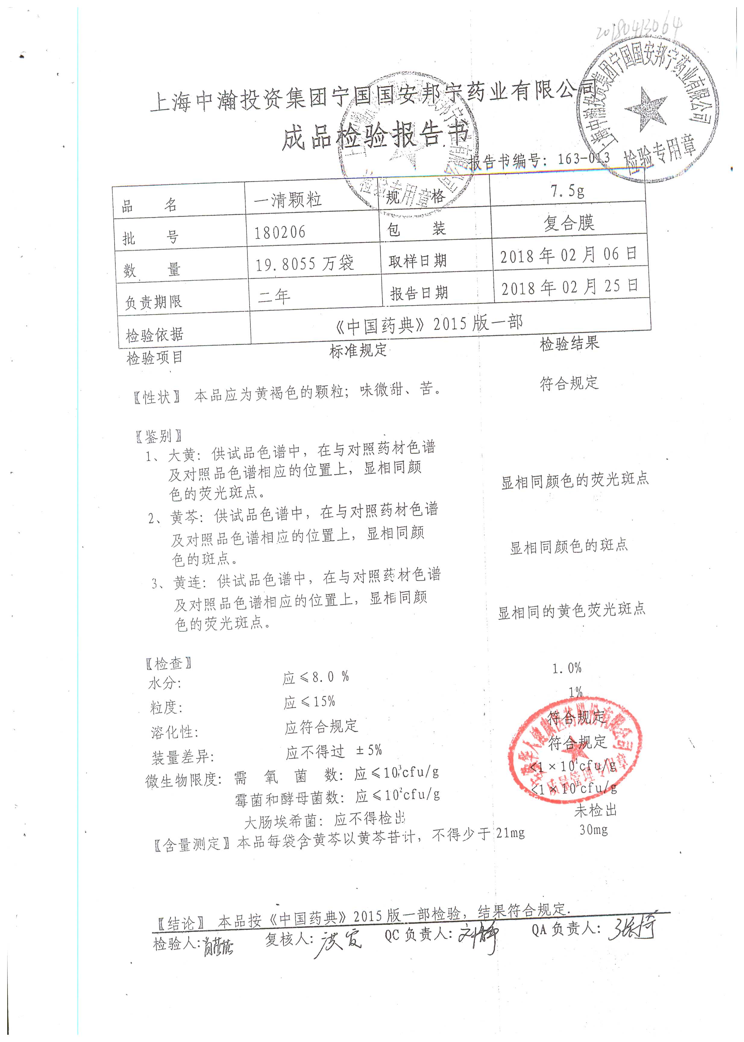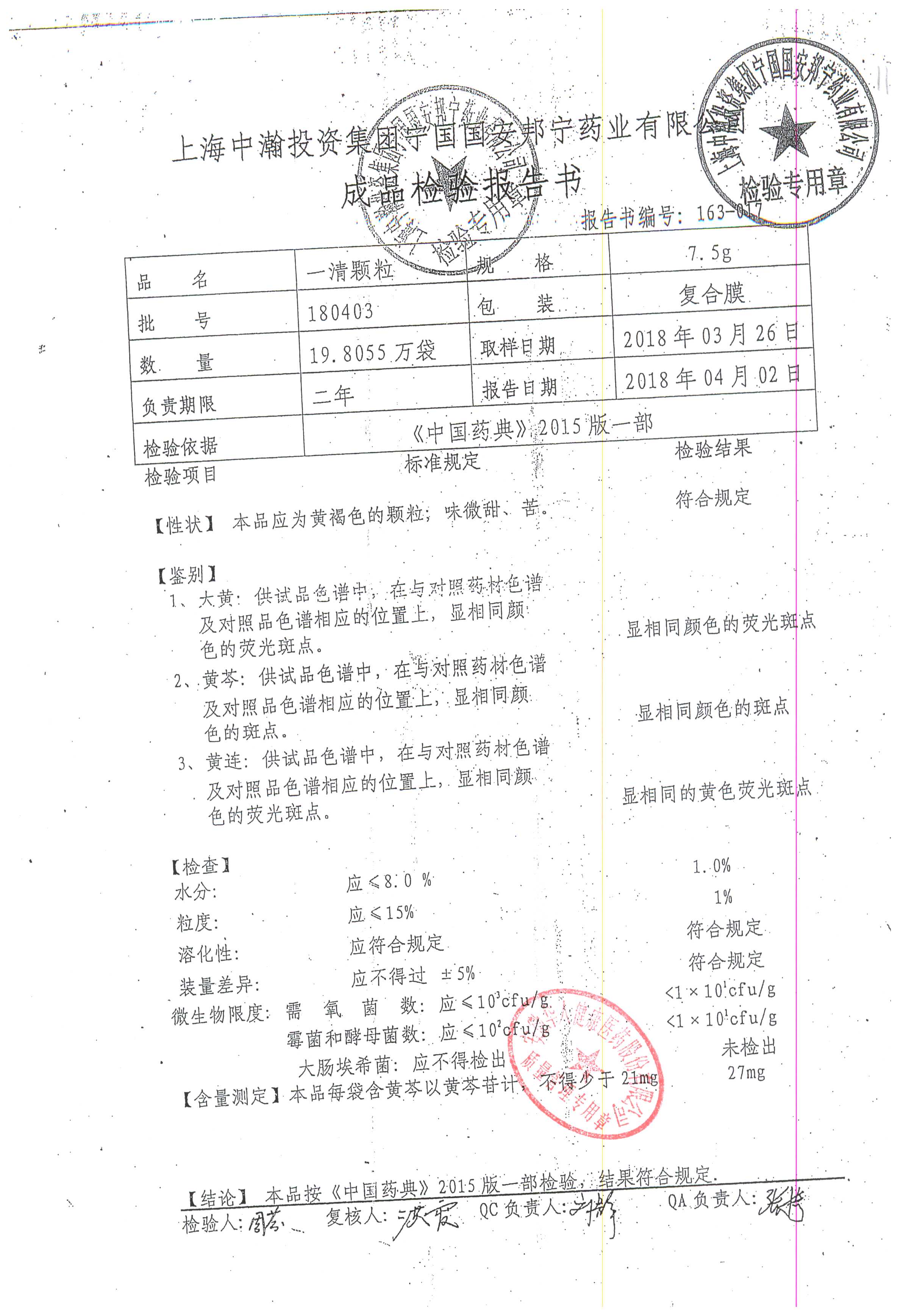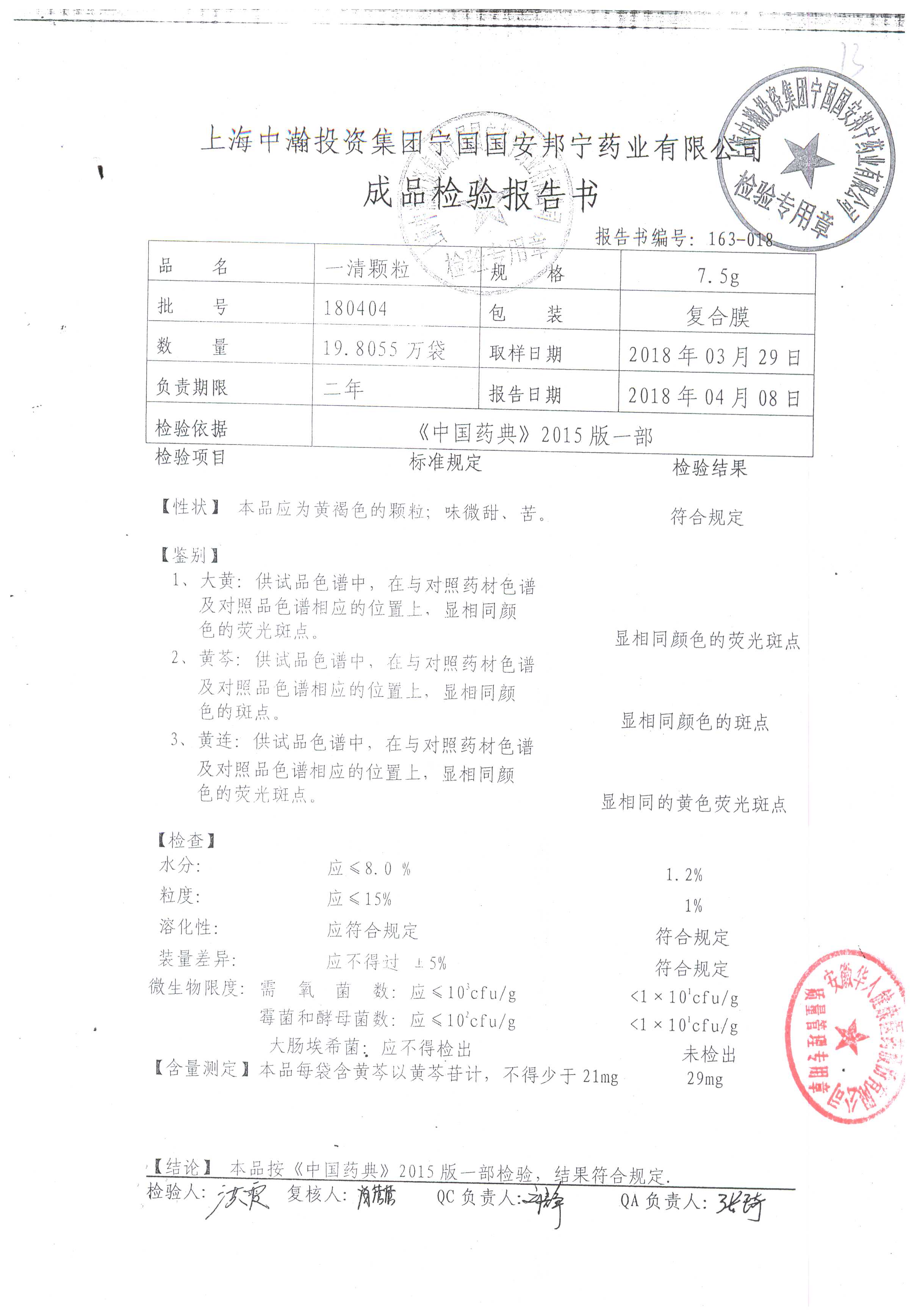 一清顆粒 | 7.5g | 180404 | 查看詳情 |