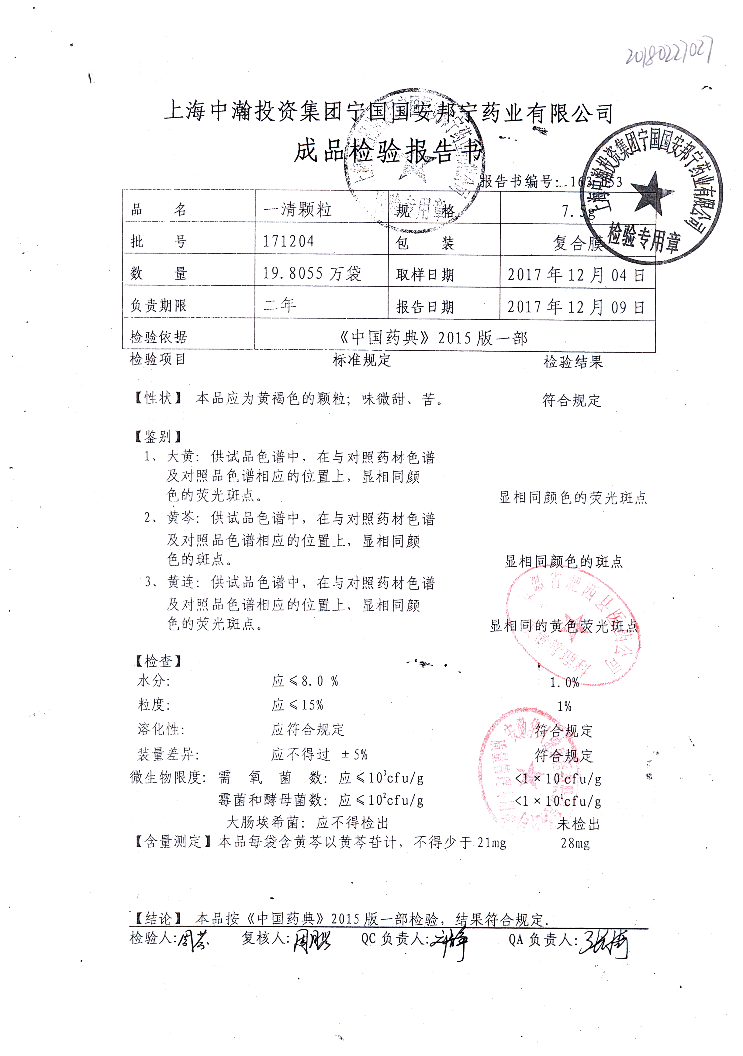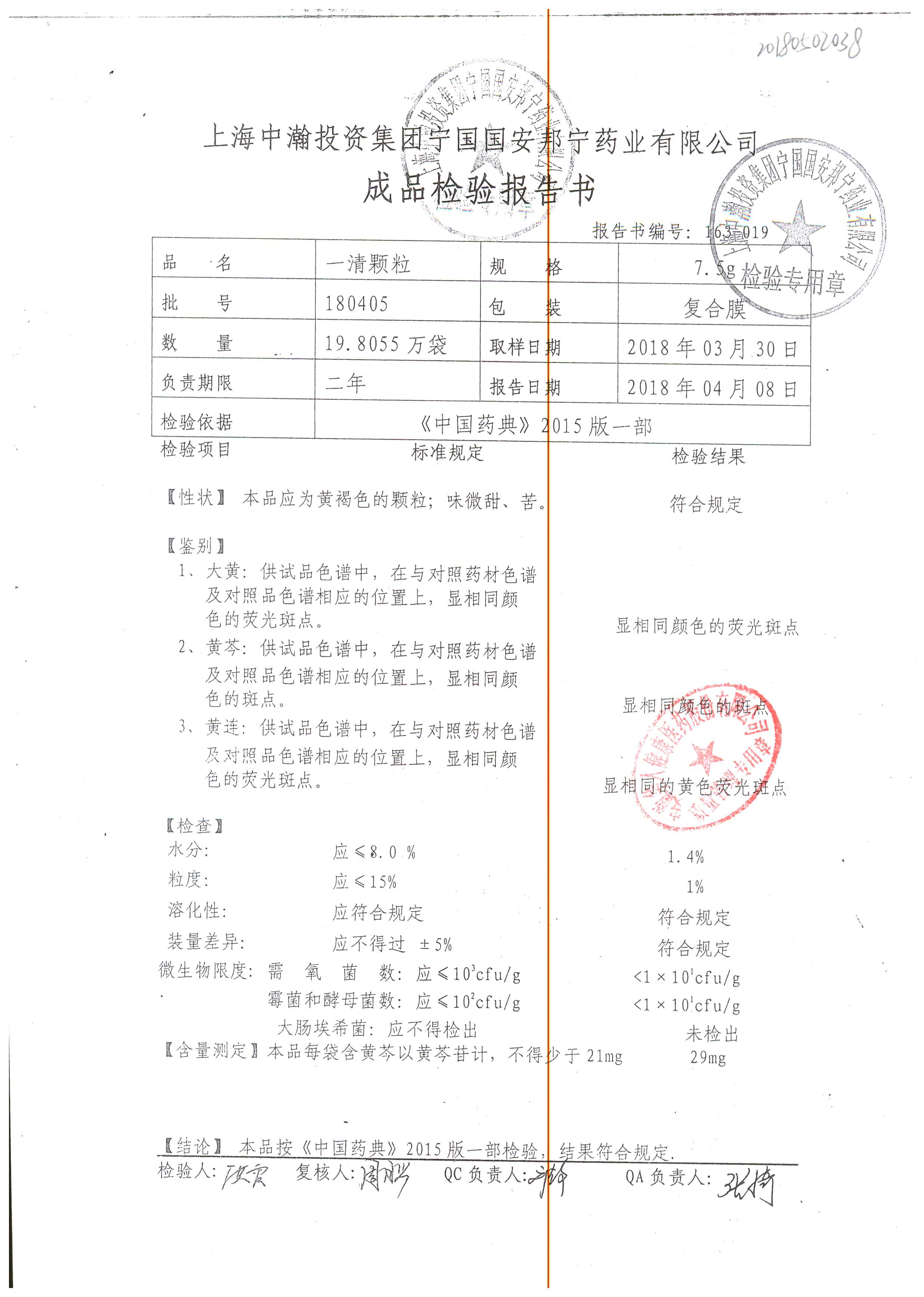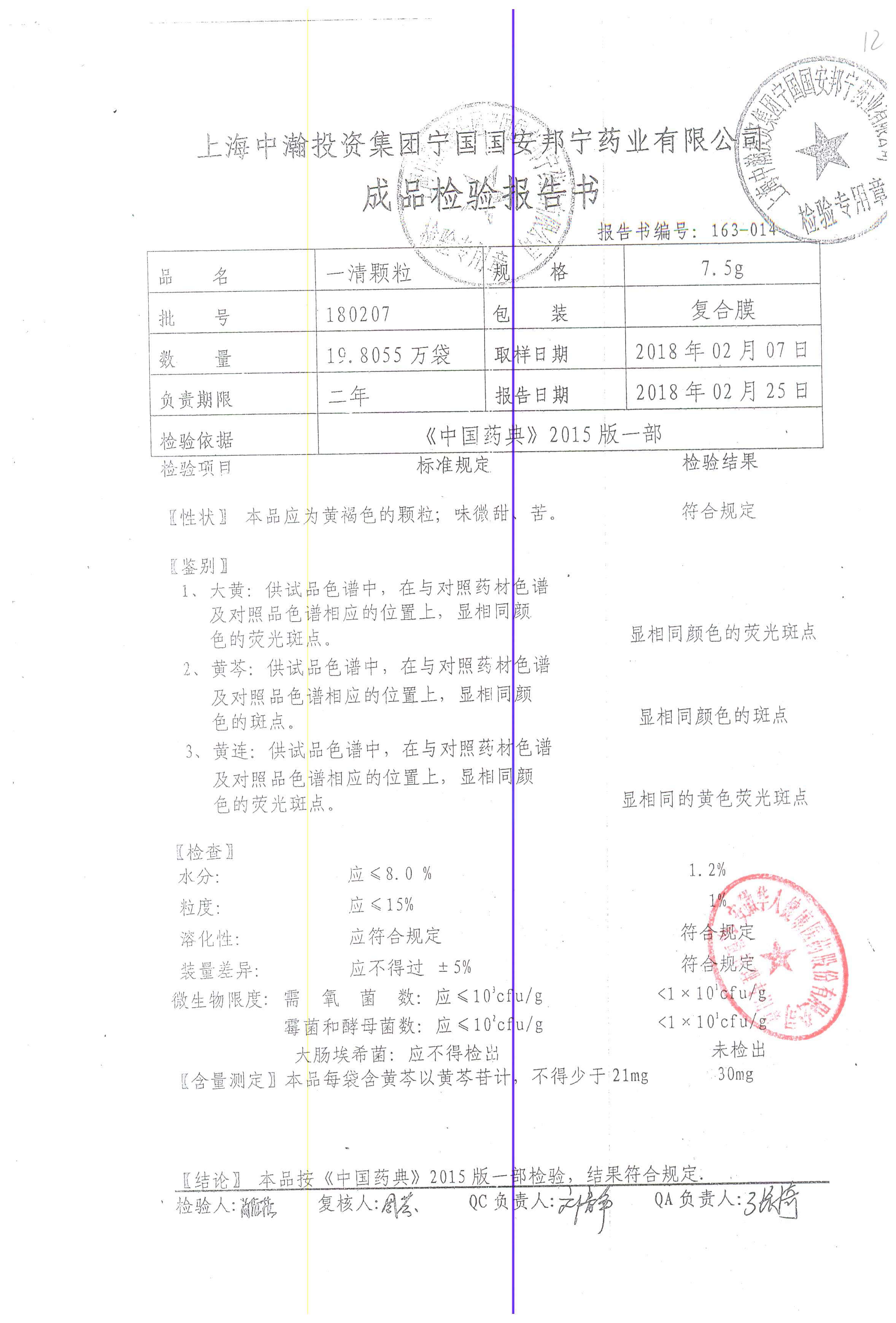 一清顆粒 | 7.5g | 180404 | 查看詳情 |