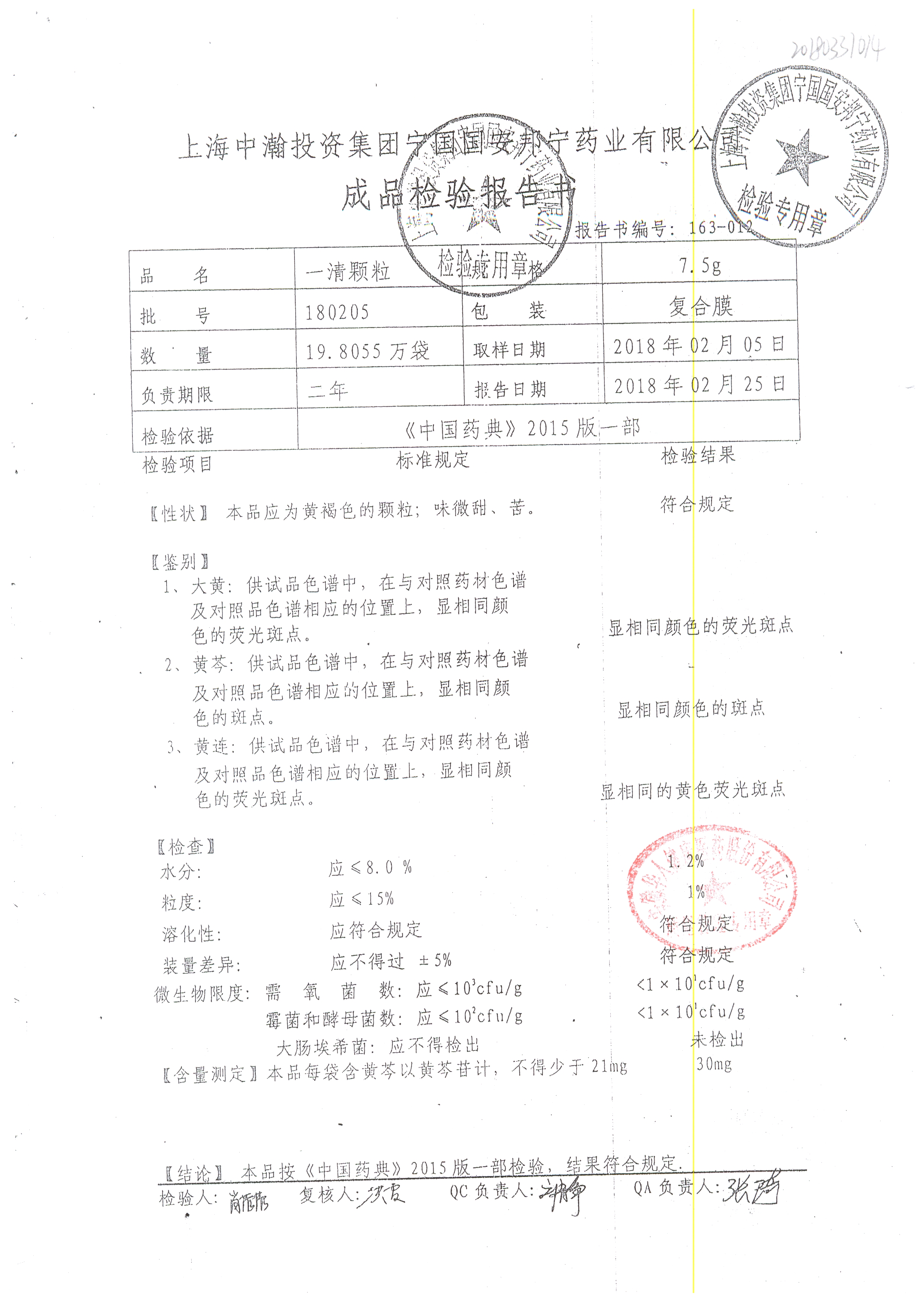 一清顆粒 | 7.5g | 180205 | 查看詳情 |