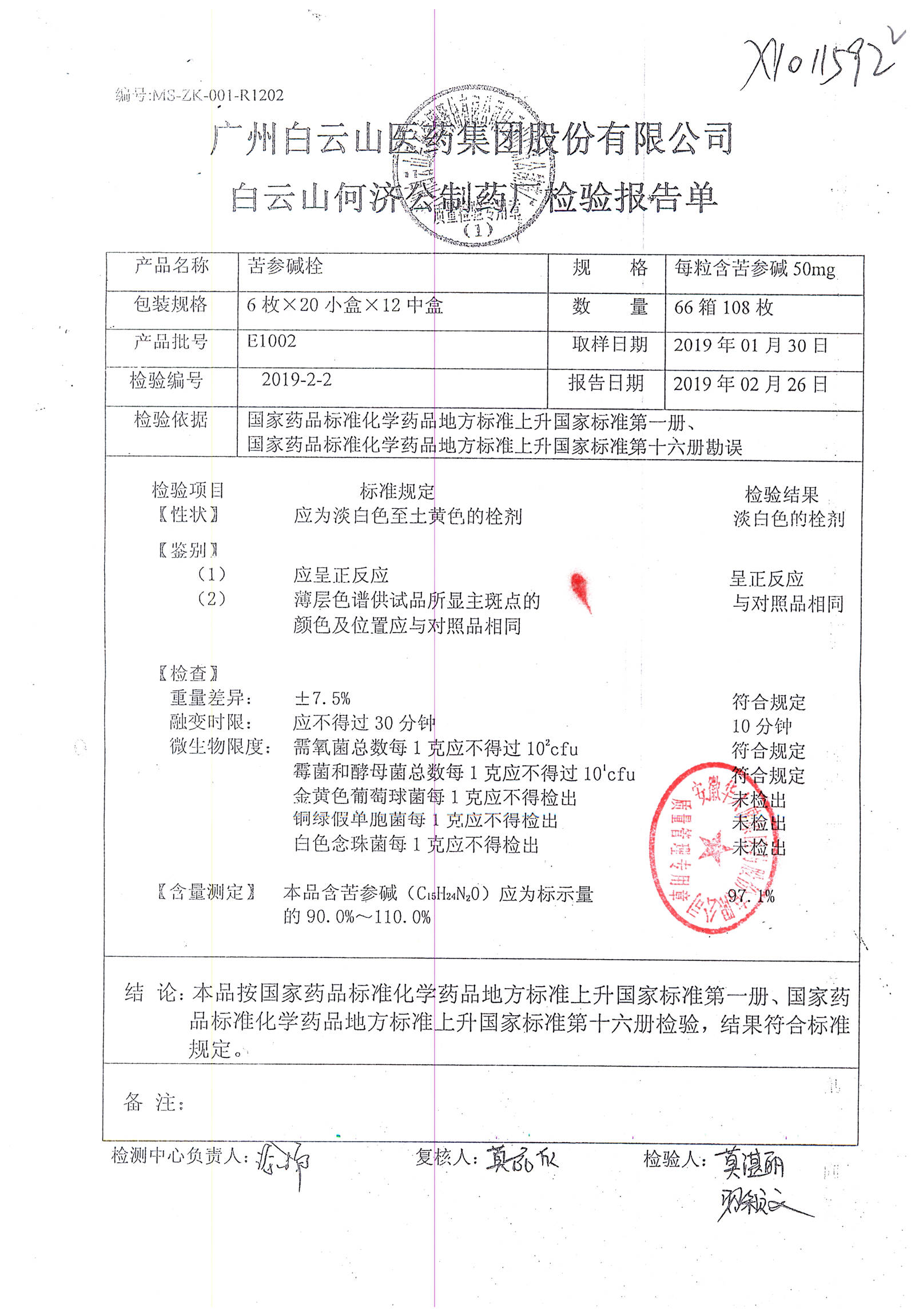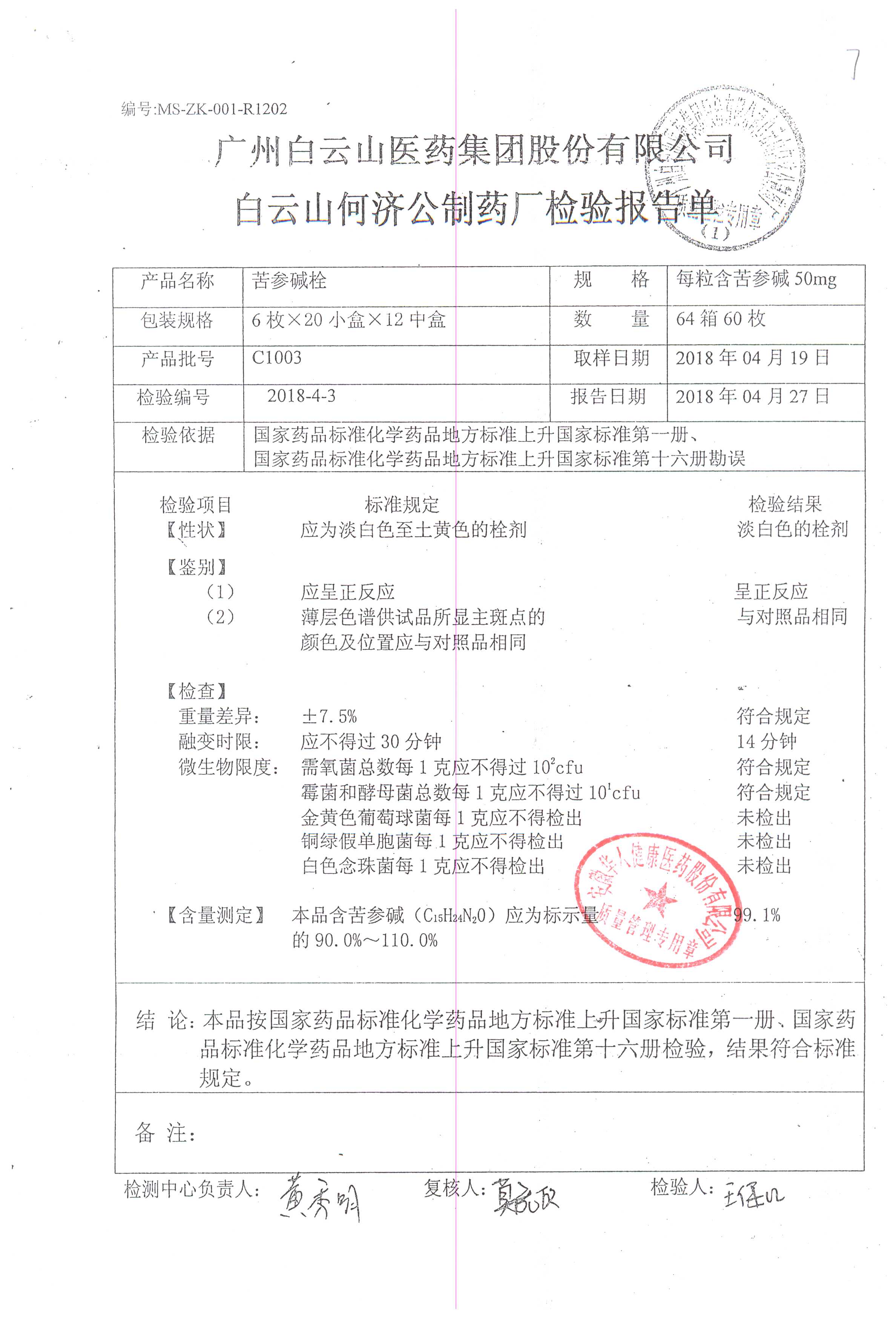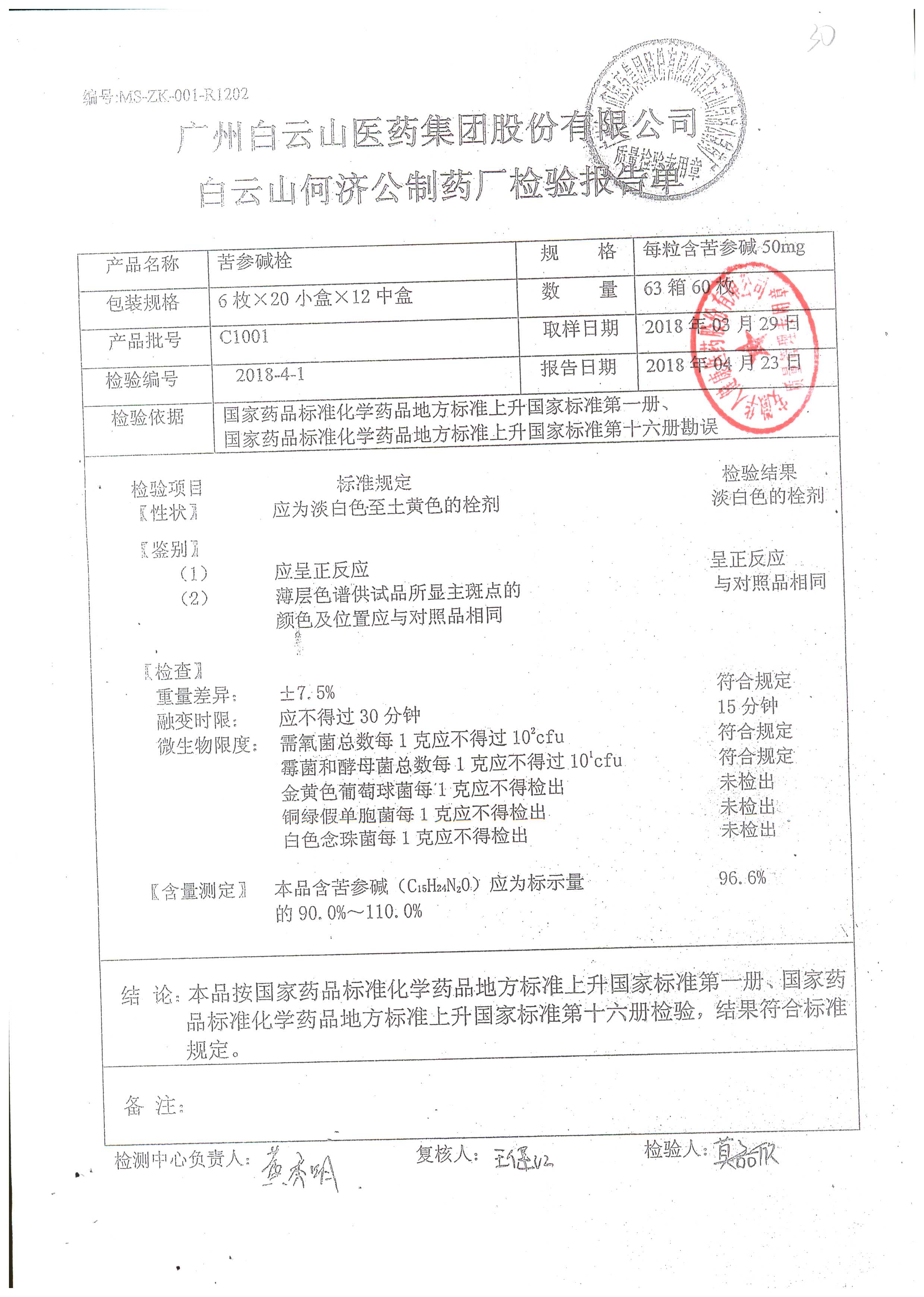 名稱 | 規(guī)格 | 批號 | 藥檢報告 |