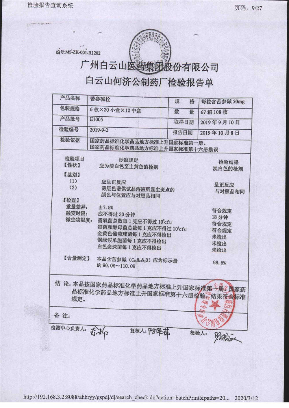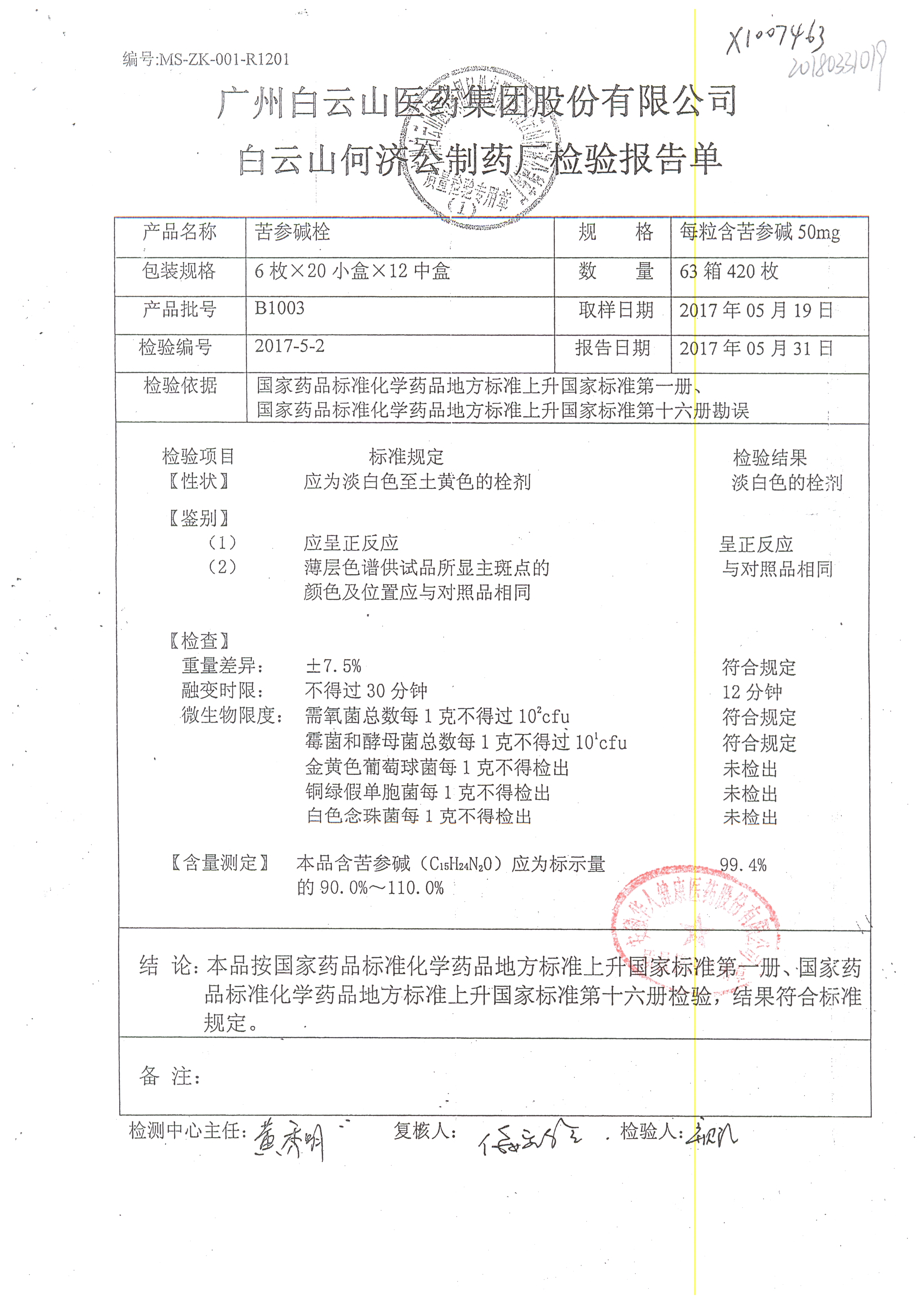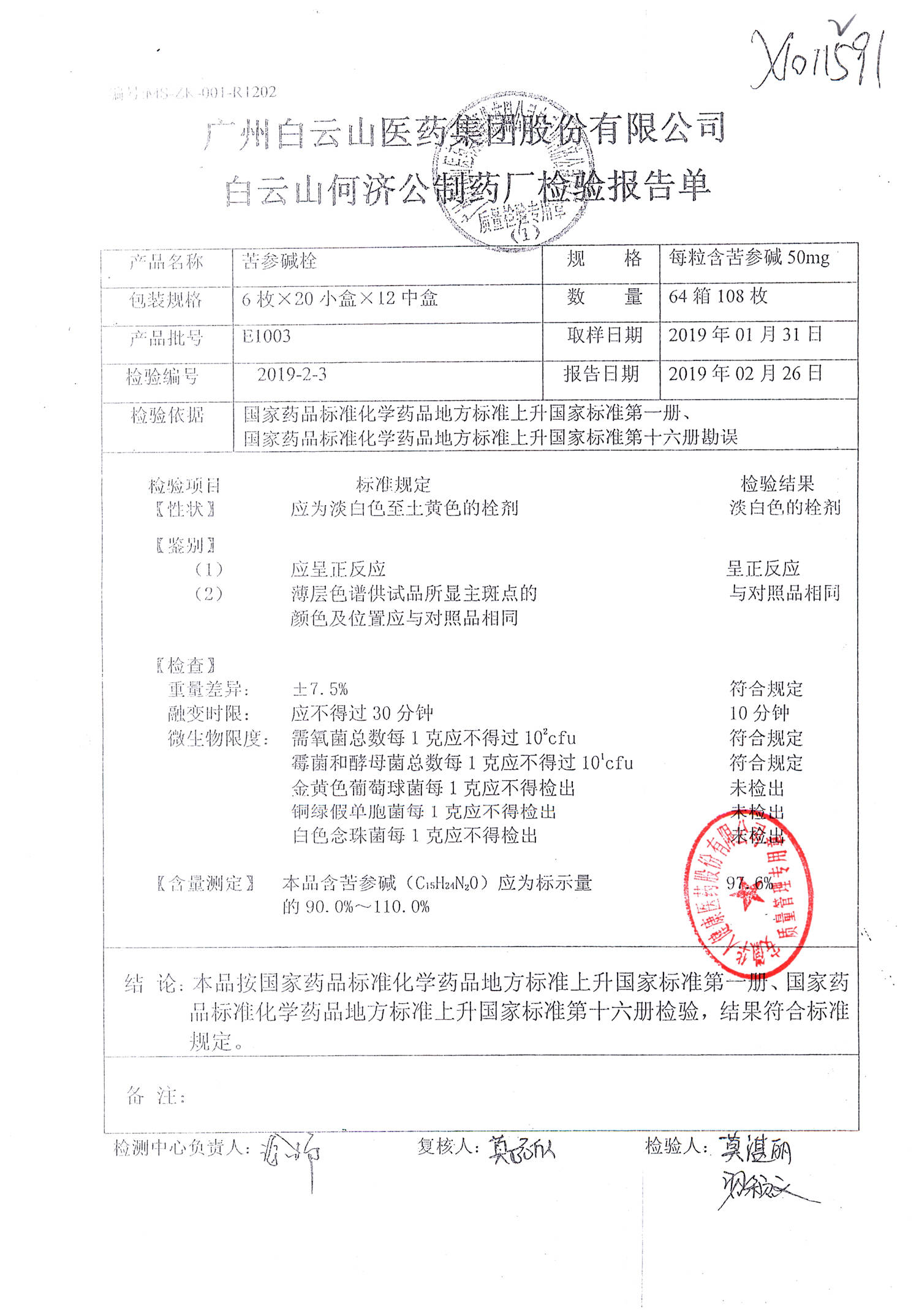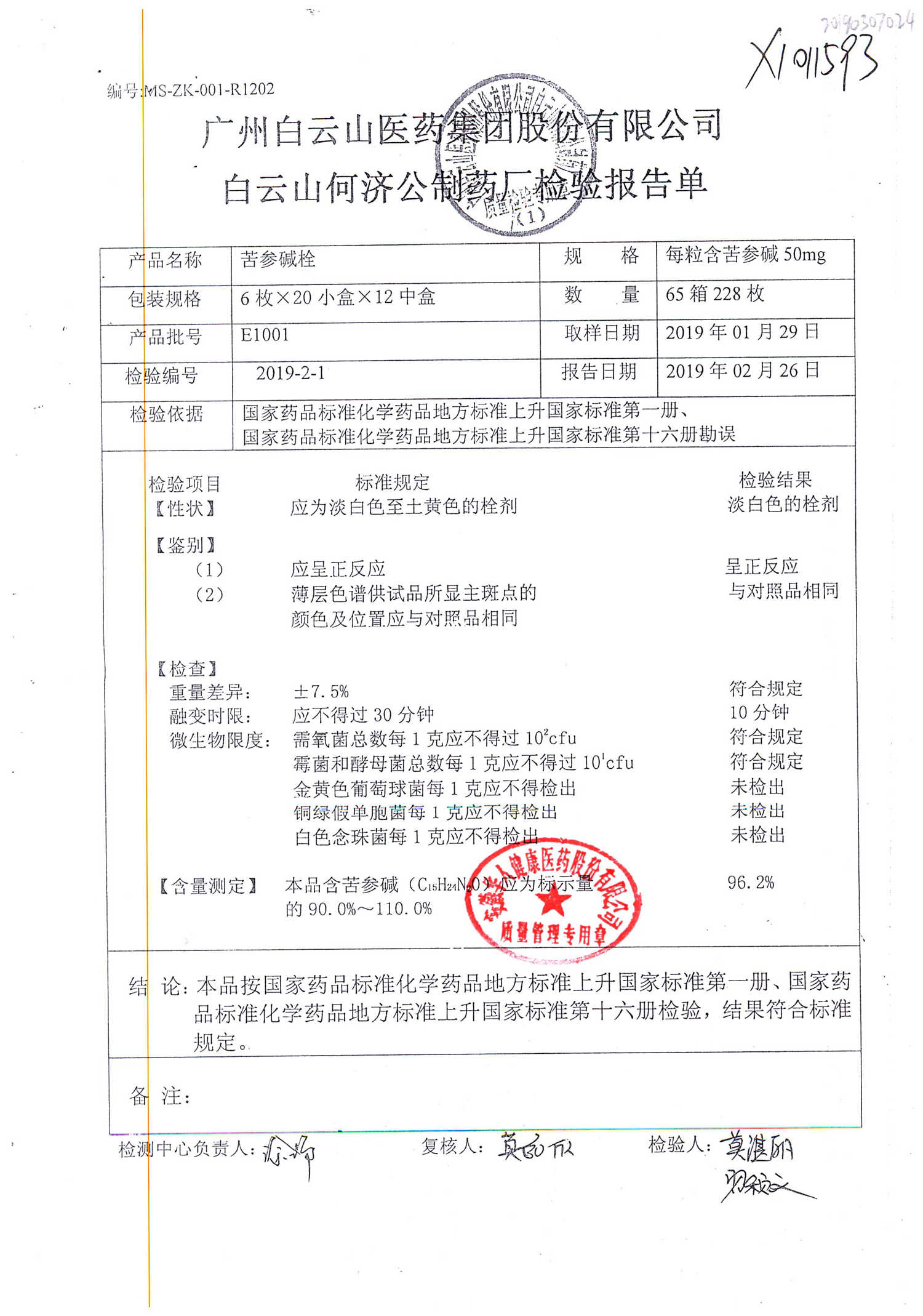 名稱 | 規(guī)格 | 批號 | 藥檢報告 |