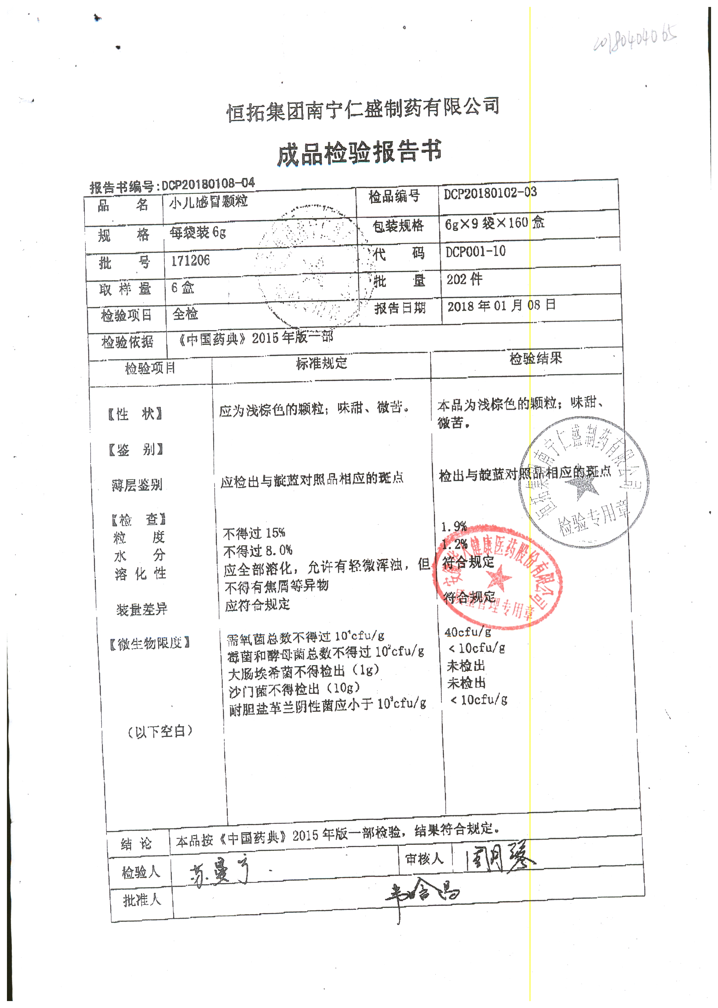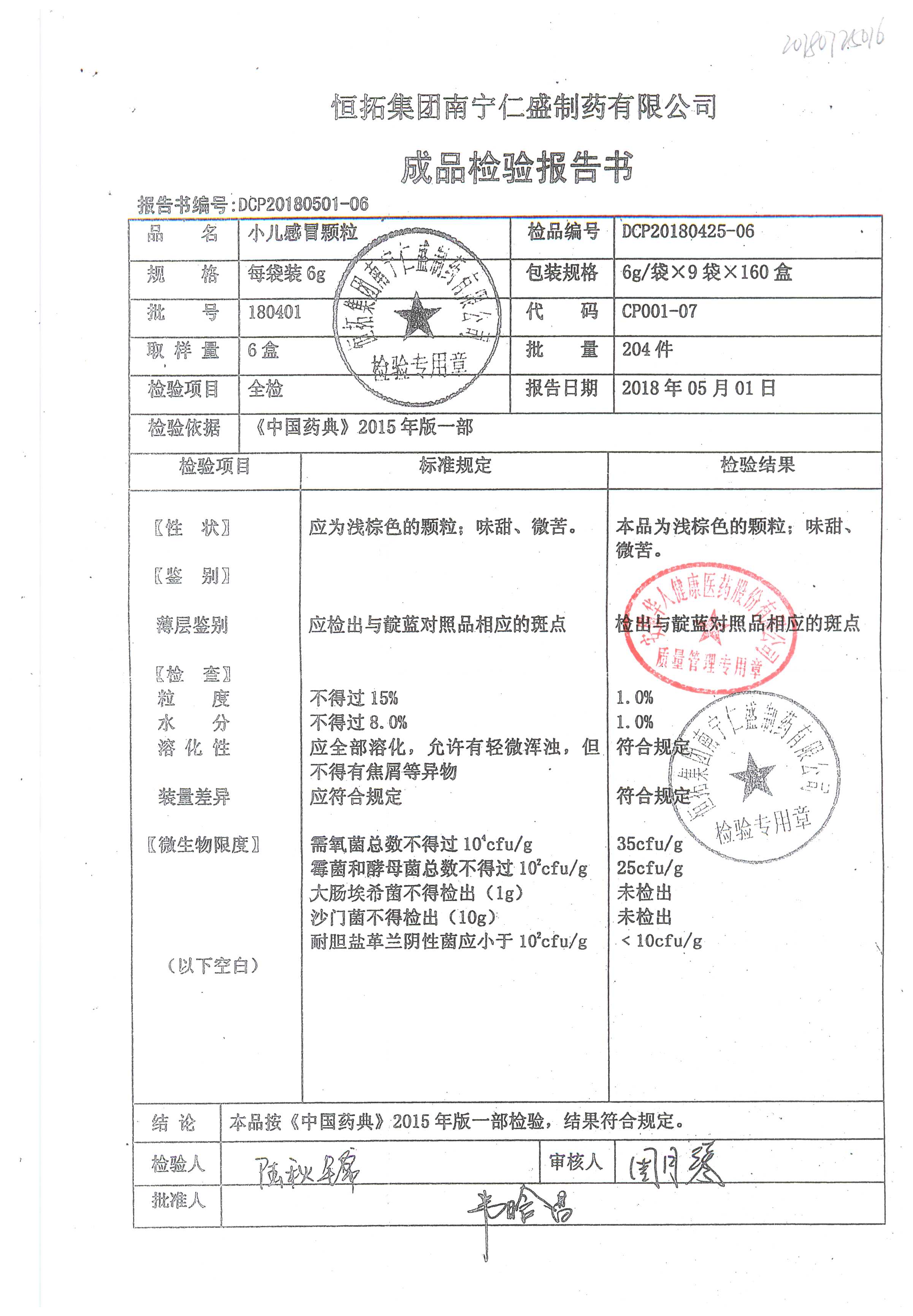 小兒感冒顆粒 | 6g*9袋 | 180401 | 查看詳情 |