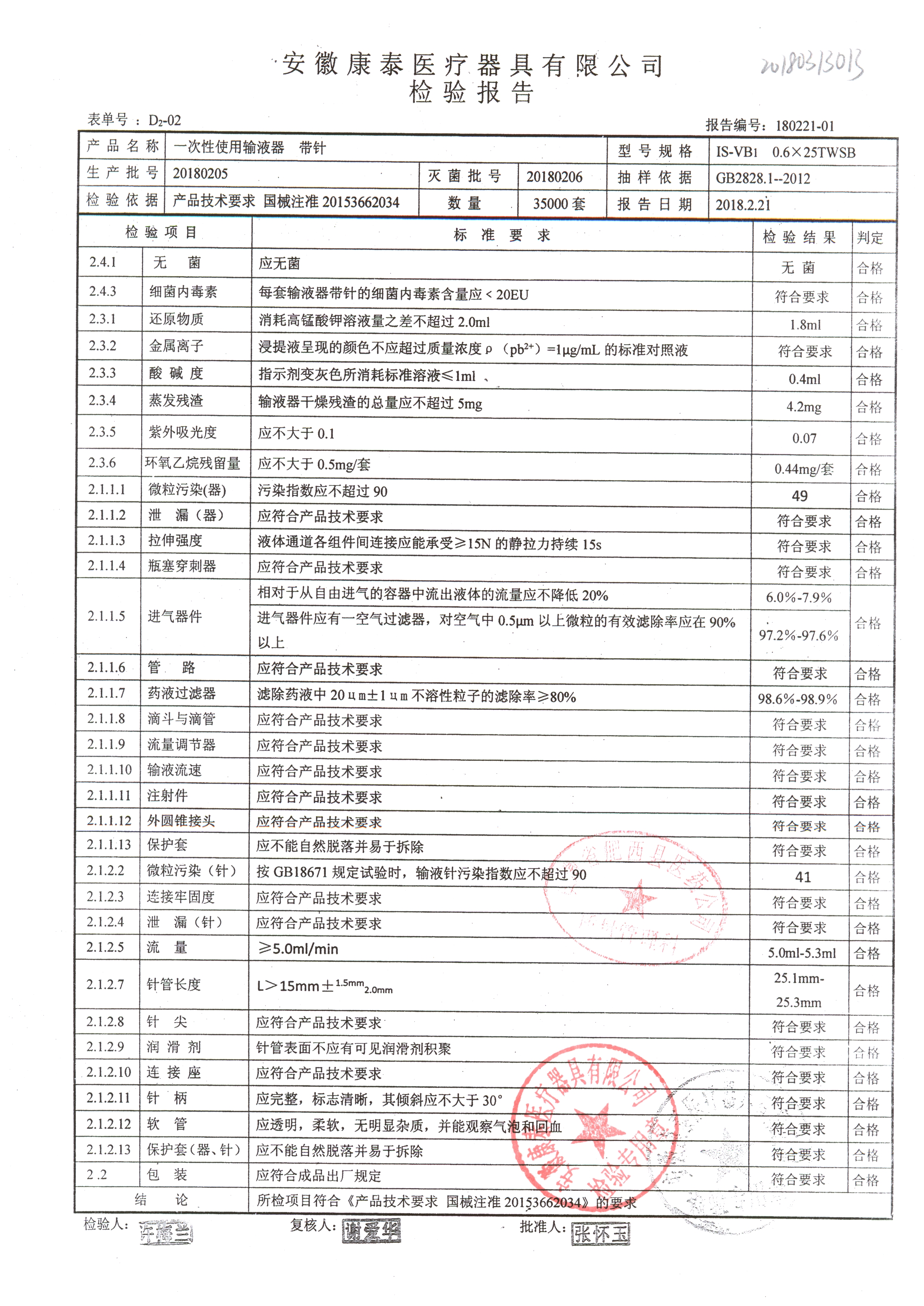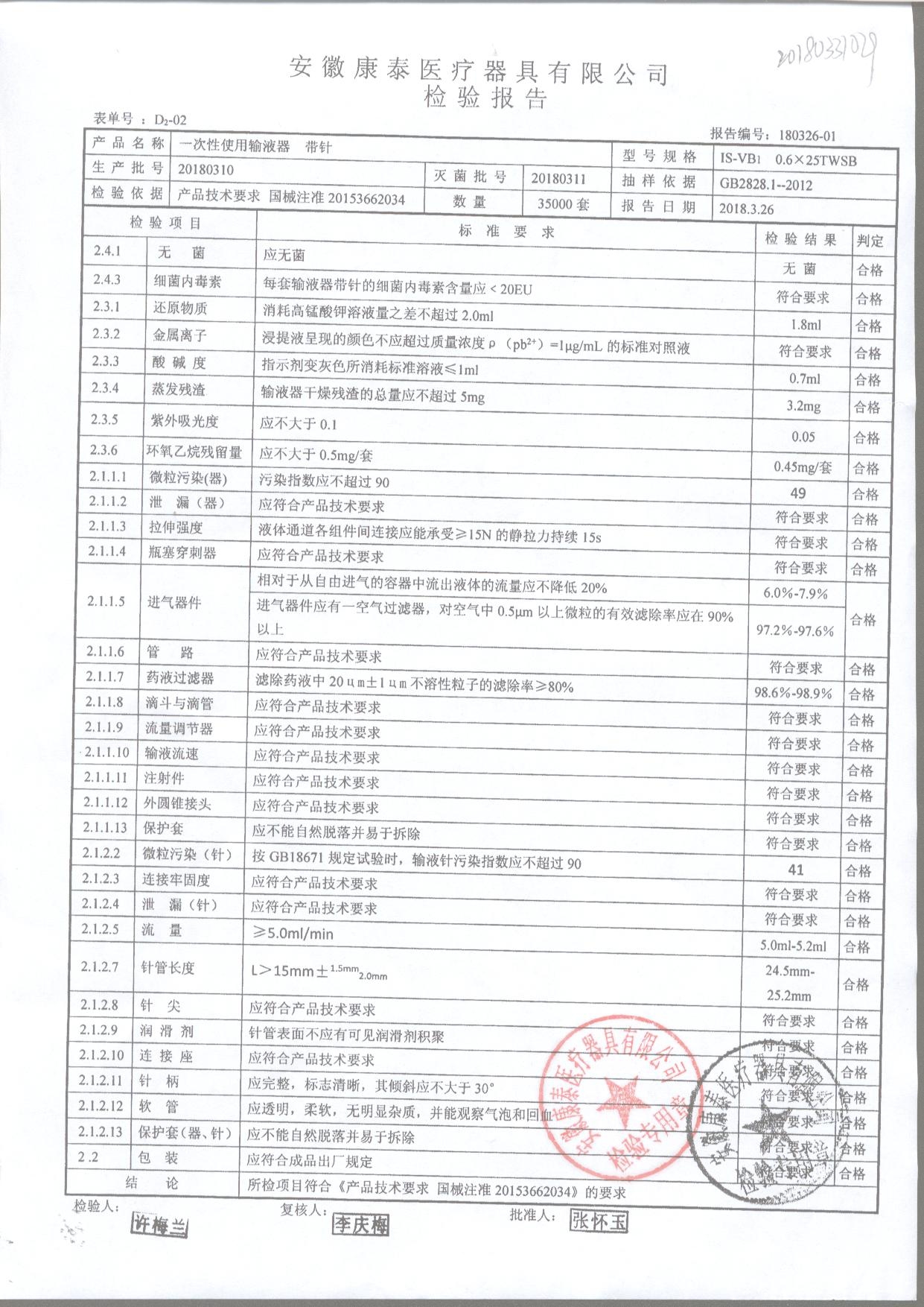 一次性使用輸液器 帶針 0.6*25TWSB 20180310 查看詳情